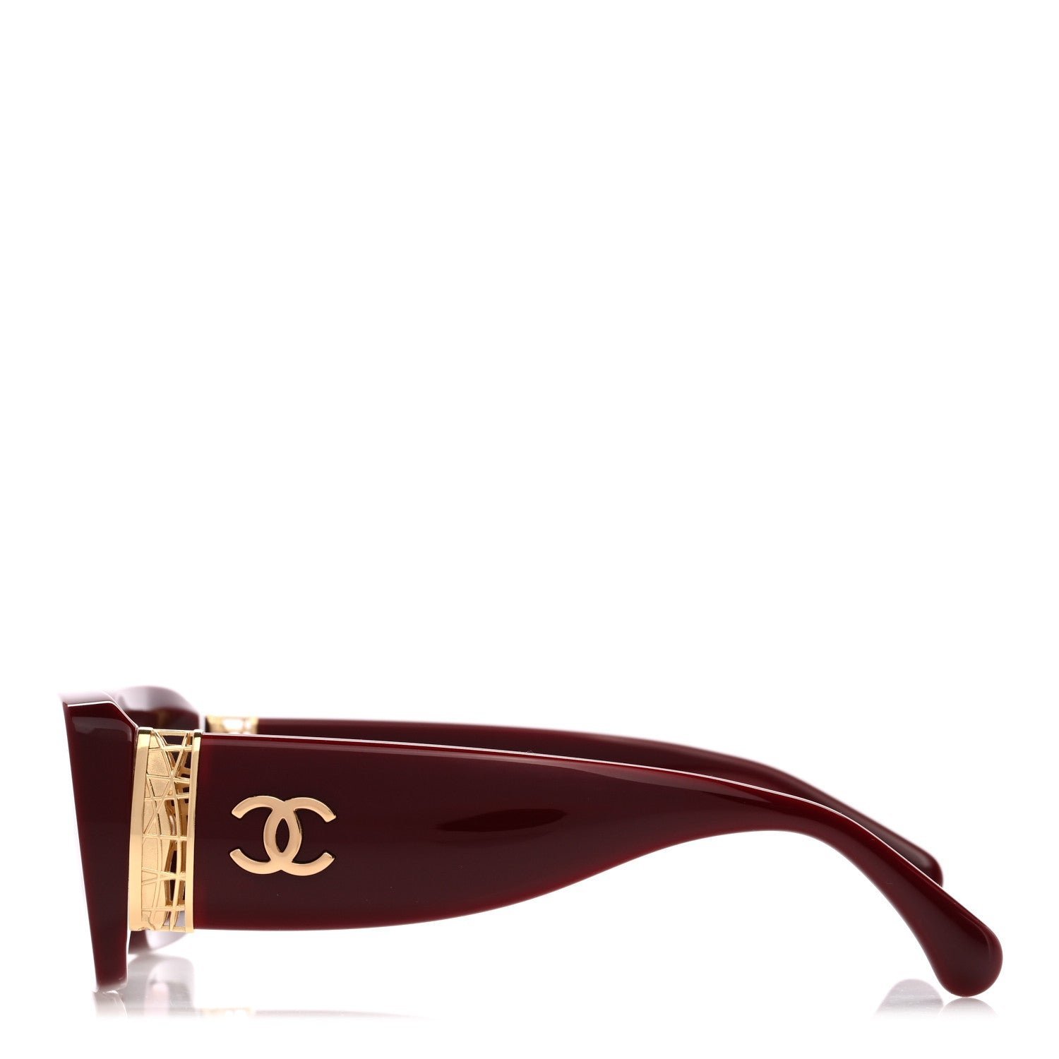 This is an authentic pair of CHANEL Acetate Rectangle Sunglasses 5534 in Red. These stylish sunglasses feature red rectangular frames with black lenses, gold accents at the sides of the frame, and small gold CCs on each hinge.