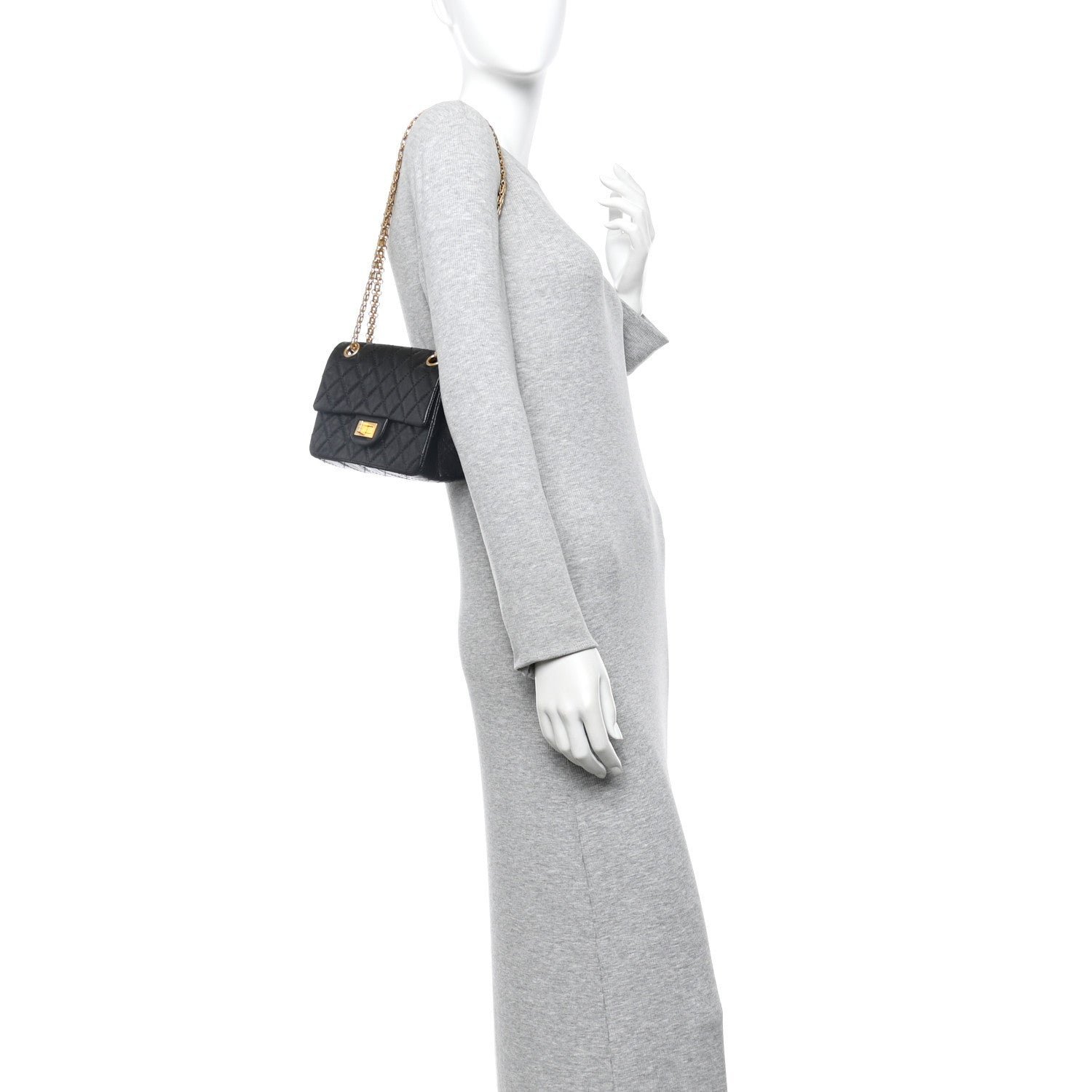 This specific model is crafted from black aged calfskin leather, a material chosen for its distinctive “wrinkled” or distressed finish that authentically replicates the appearance of the original bag carried by Gabrielle Chanel. It features the iconic diamond quilting, a signature House code inspired by the quilted jackets worn by stableboys and jockeys. The signature design element is the “Mademoiselle” turn-lock closure, a rectangular clasp named in reference to Coco Chanel’s status as an unmarried woman.