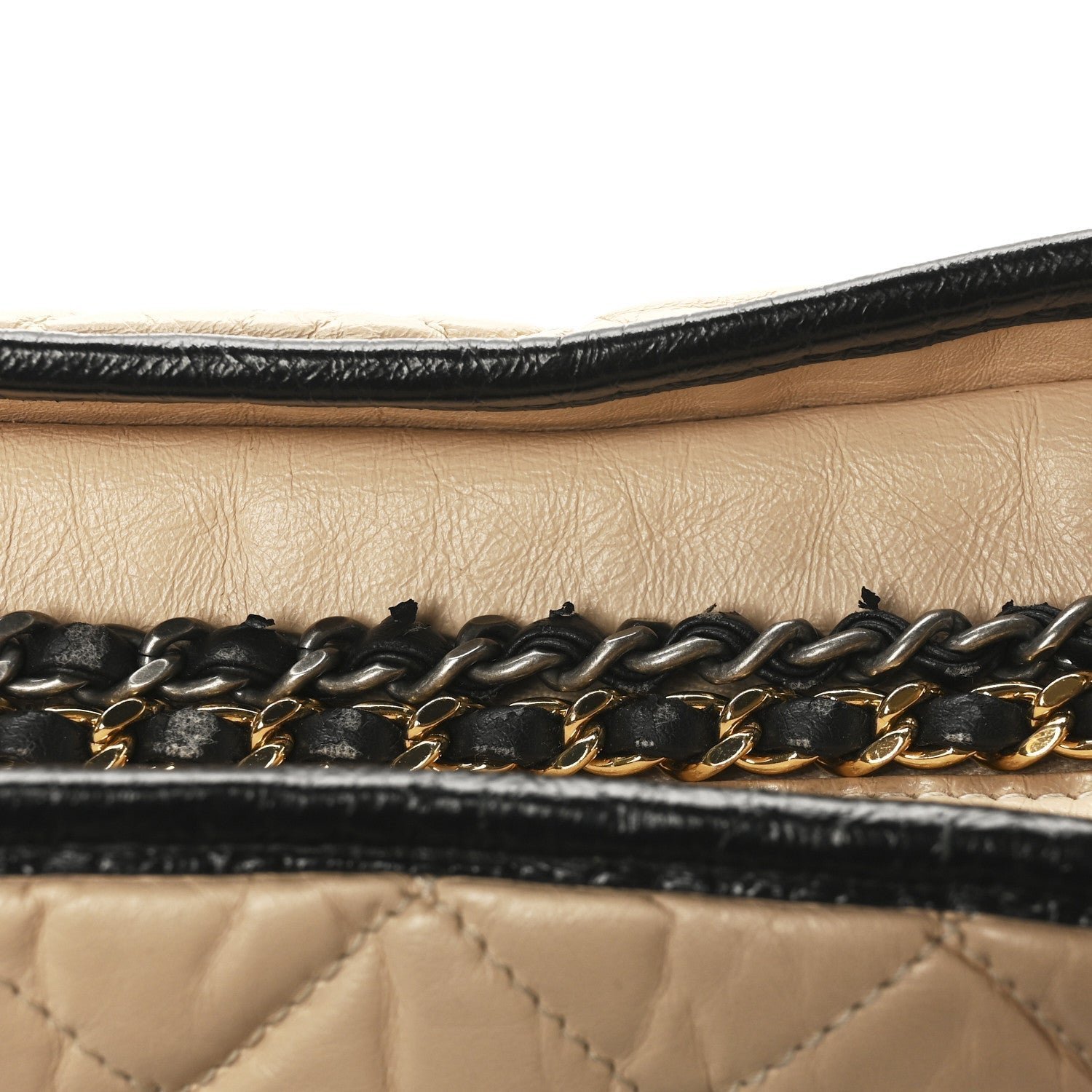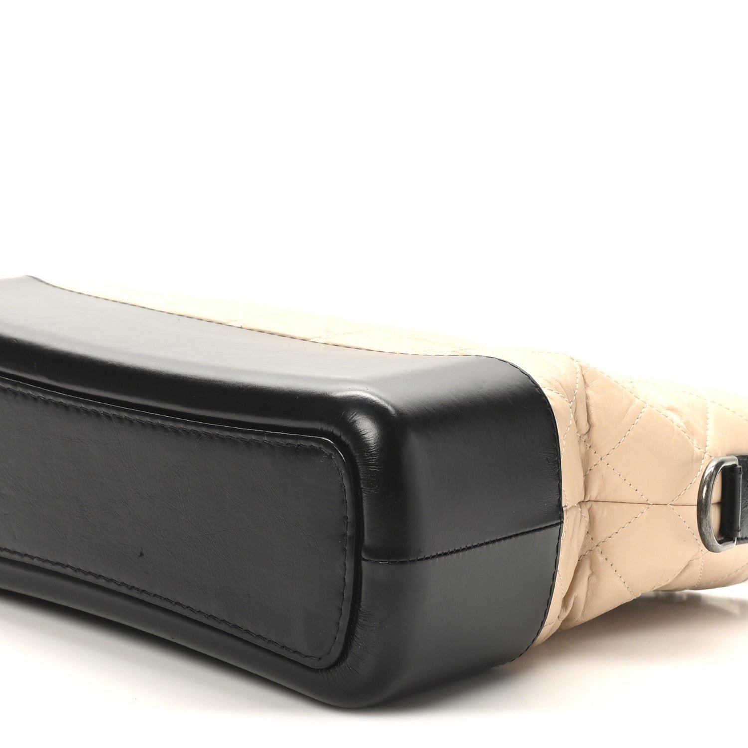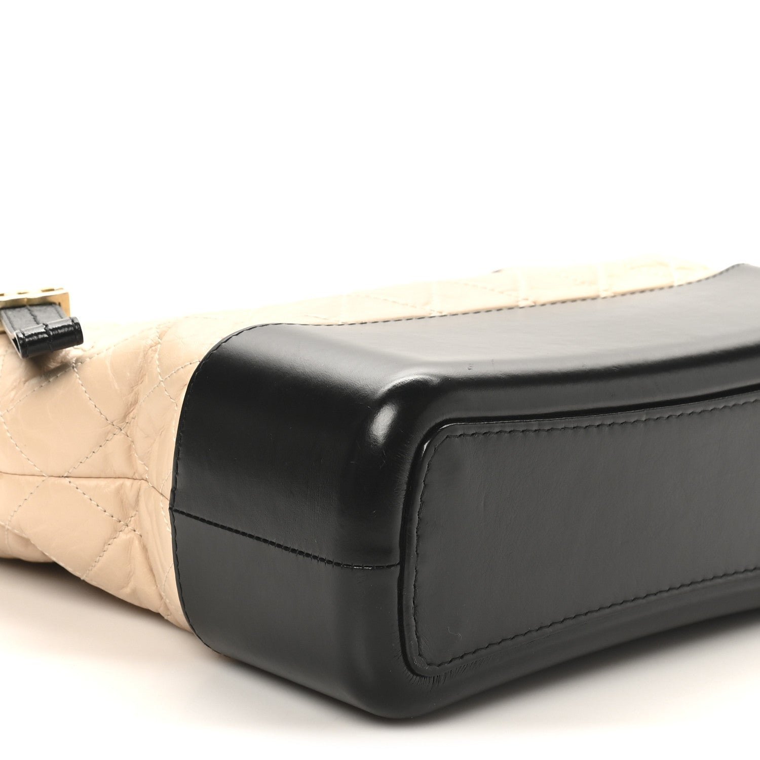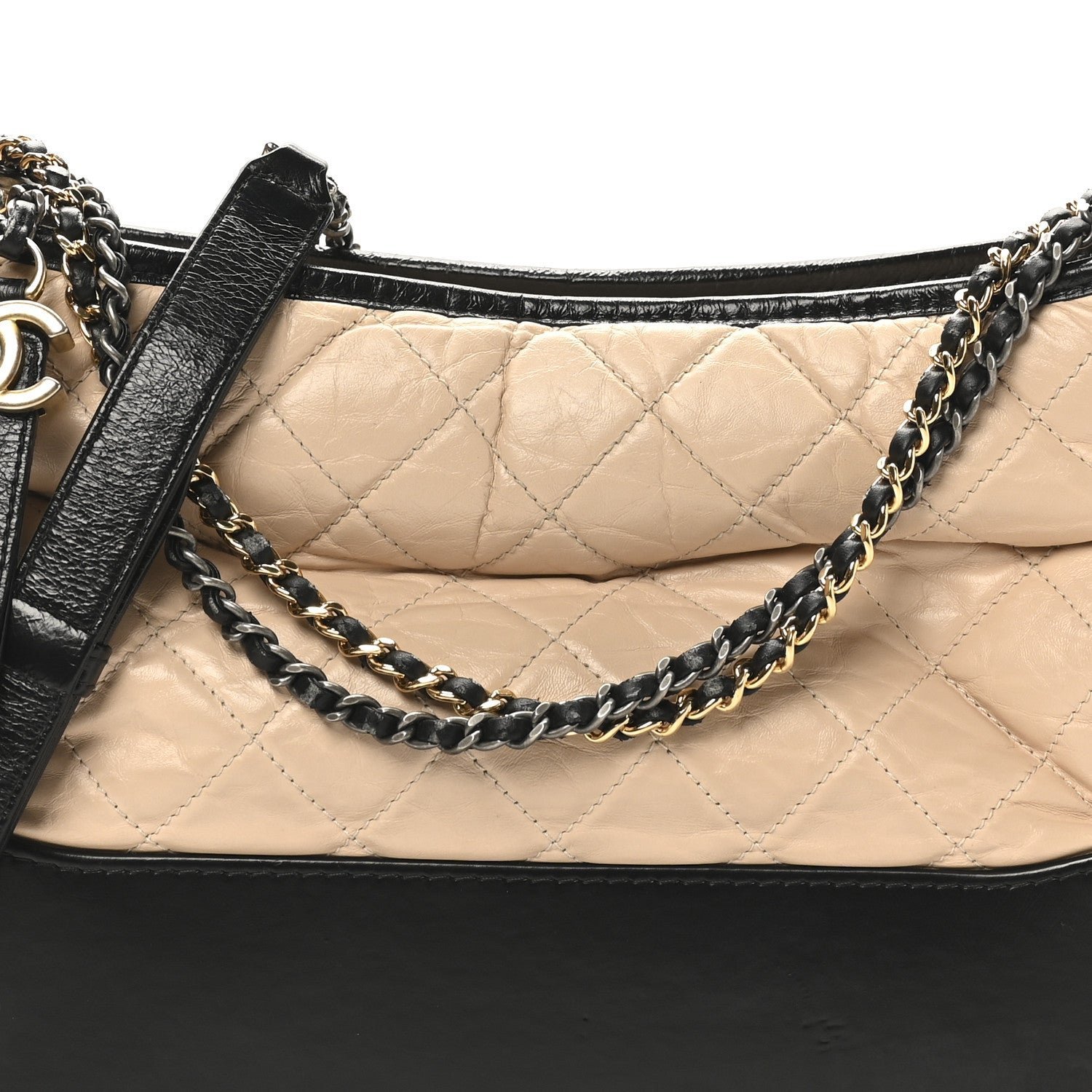 Aged Calfskin Quilted Medium Gabrielle Hobo Beige Black