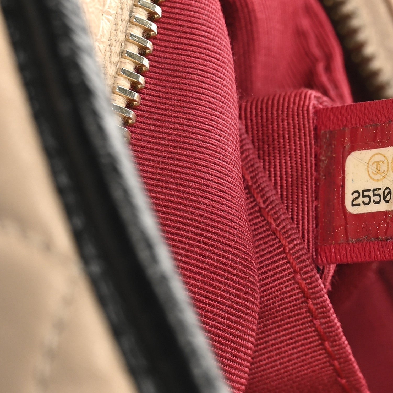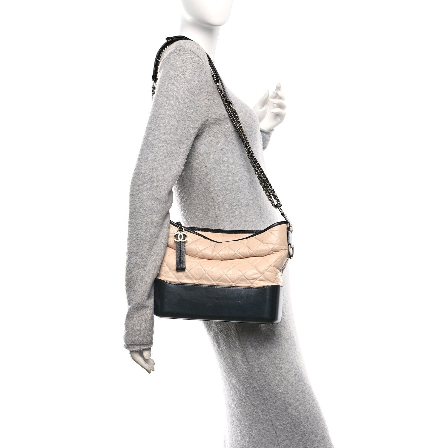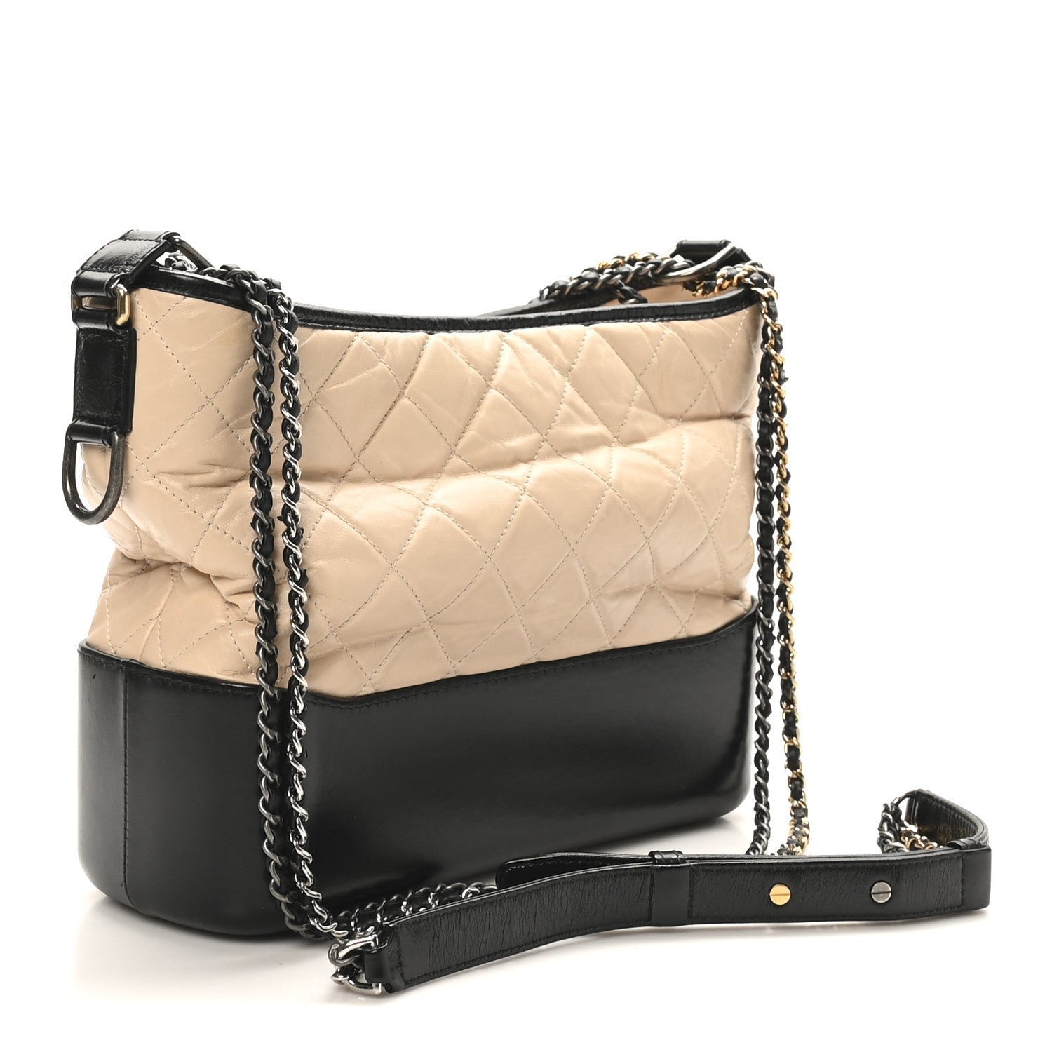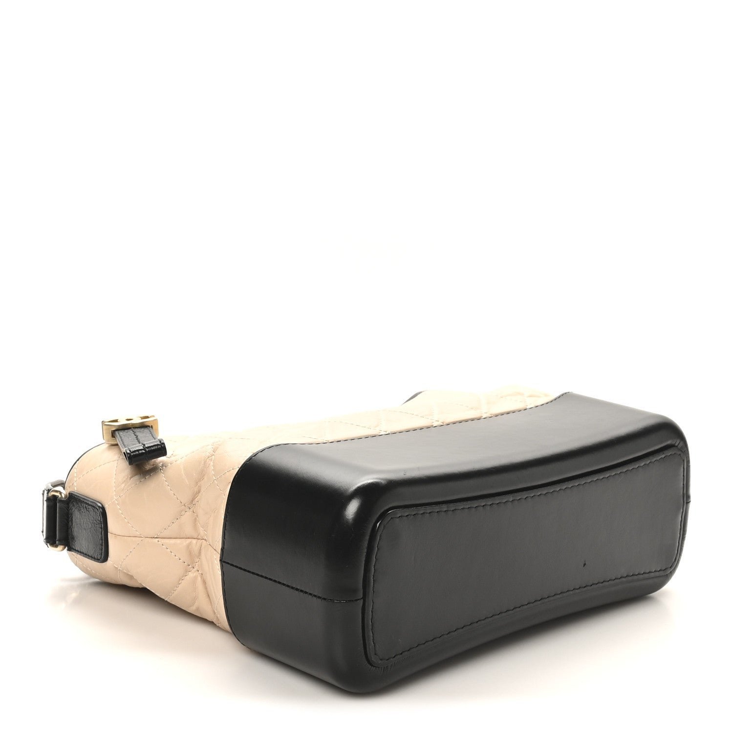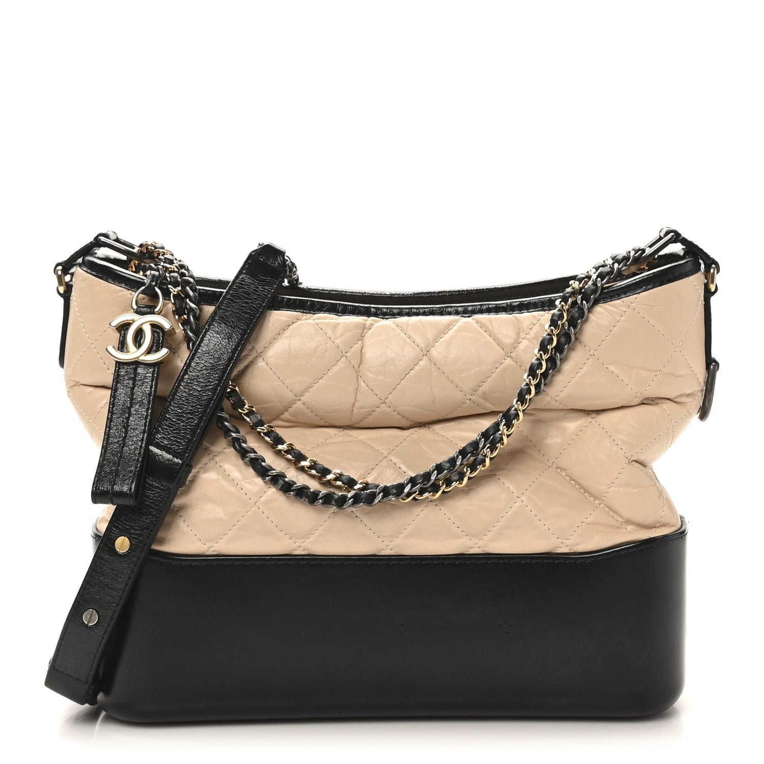 Aged Calfskin Quilted Medium Gabrielle Hobo Beige Black