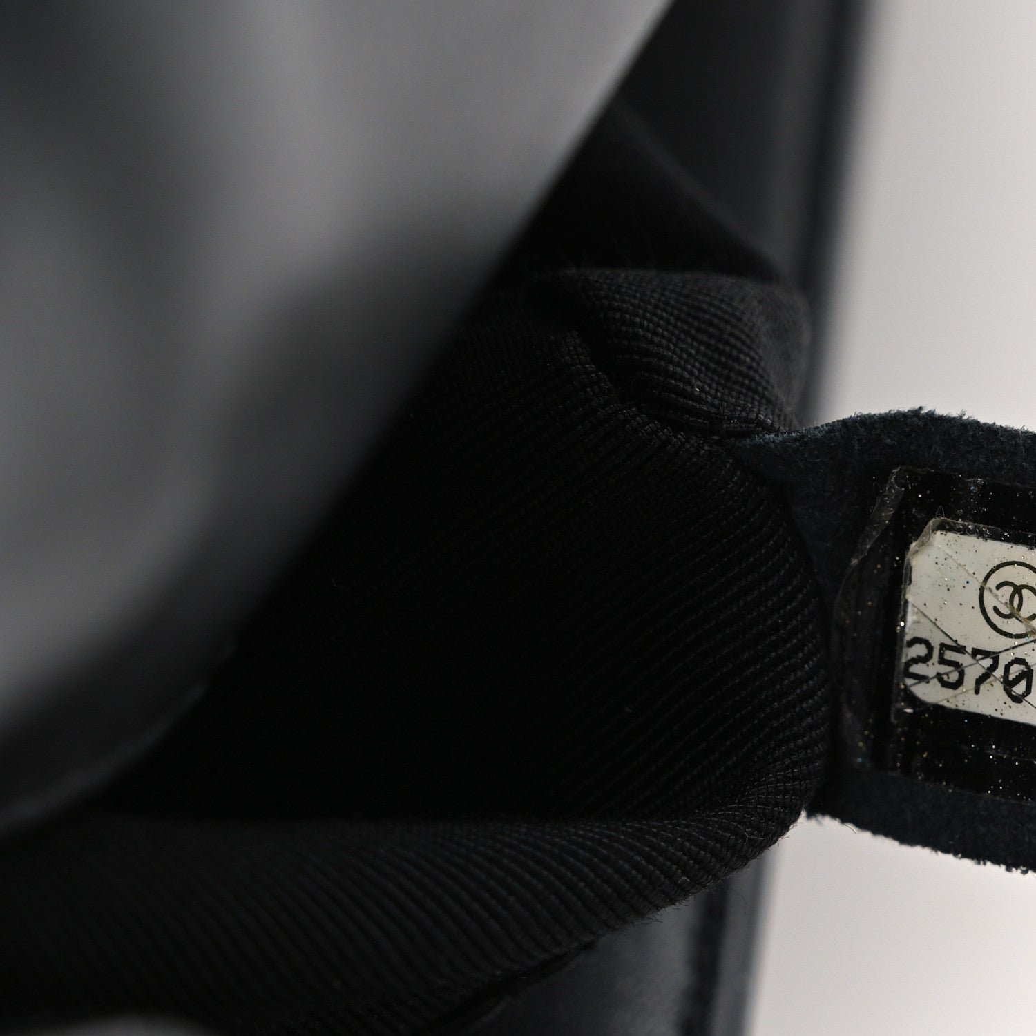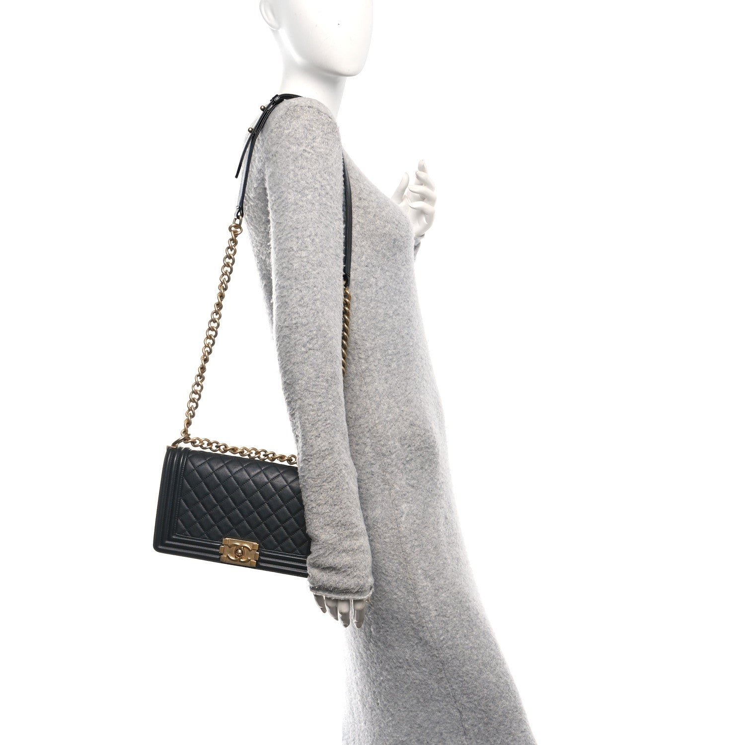 This specific model is crafted from black calfskin leather, featuring the House’s hallmark diamond quilting. Introduced by Karl Lagerfeld, the Boy bag was designed to pay homage to Boy Capel, the love of Gabrielle Chanel’s life, and is defined by its boyish, structured charm. The signature design element is the framed rectangular silhouette and the iconic interlocking CC push-lock closure with a unique “squeeze” mechanism.