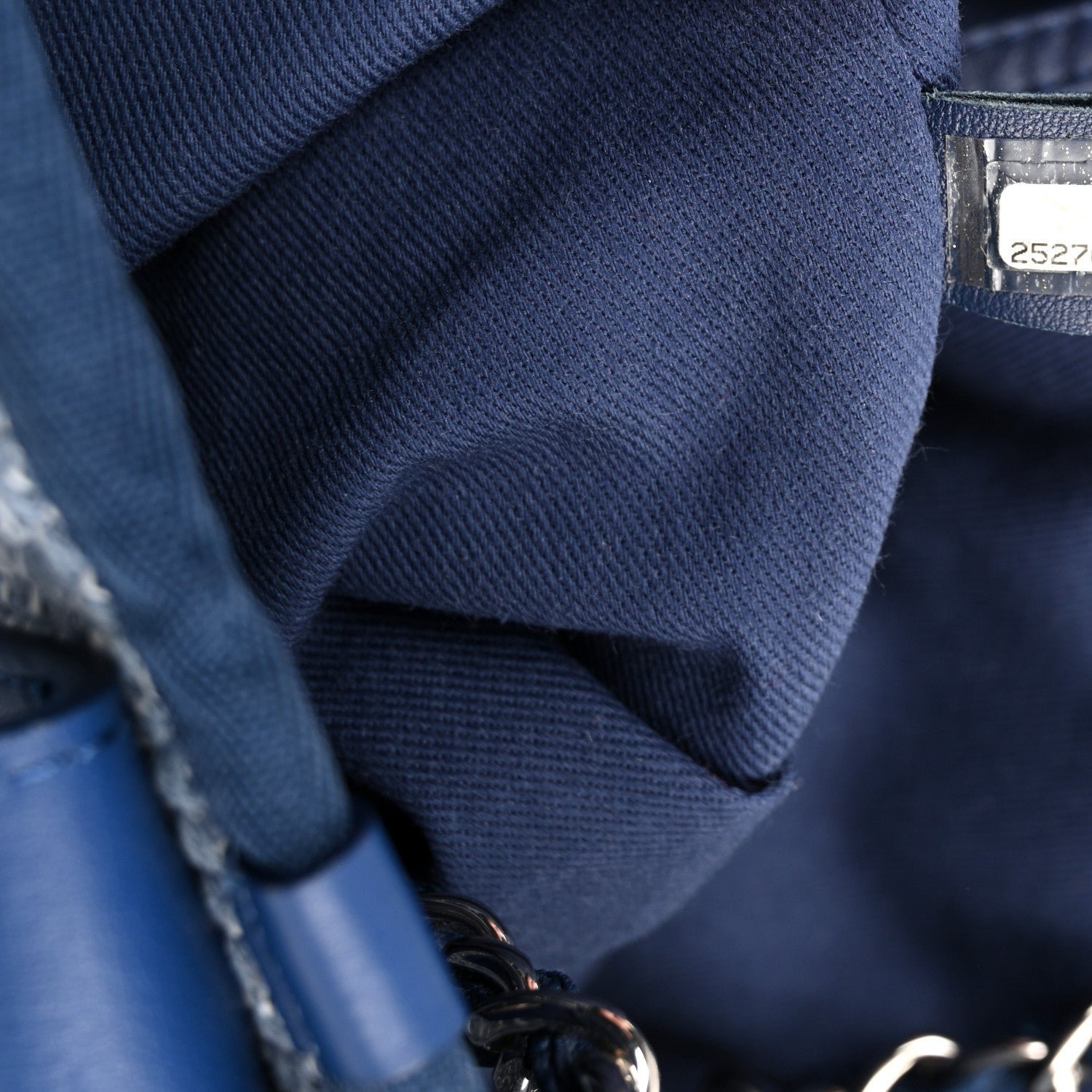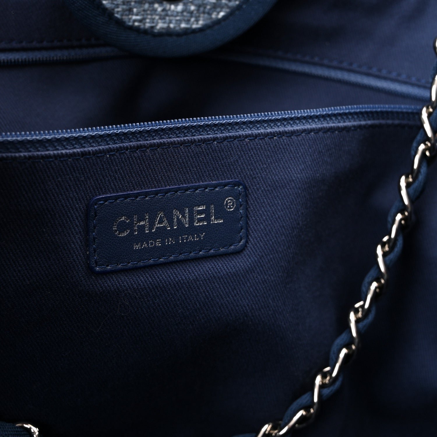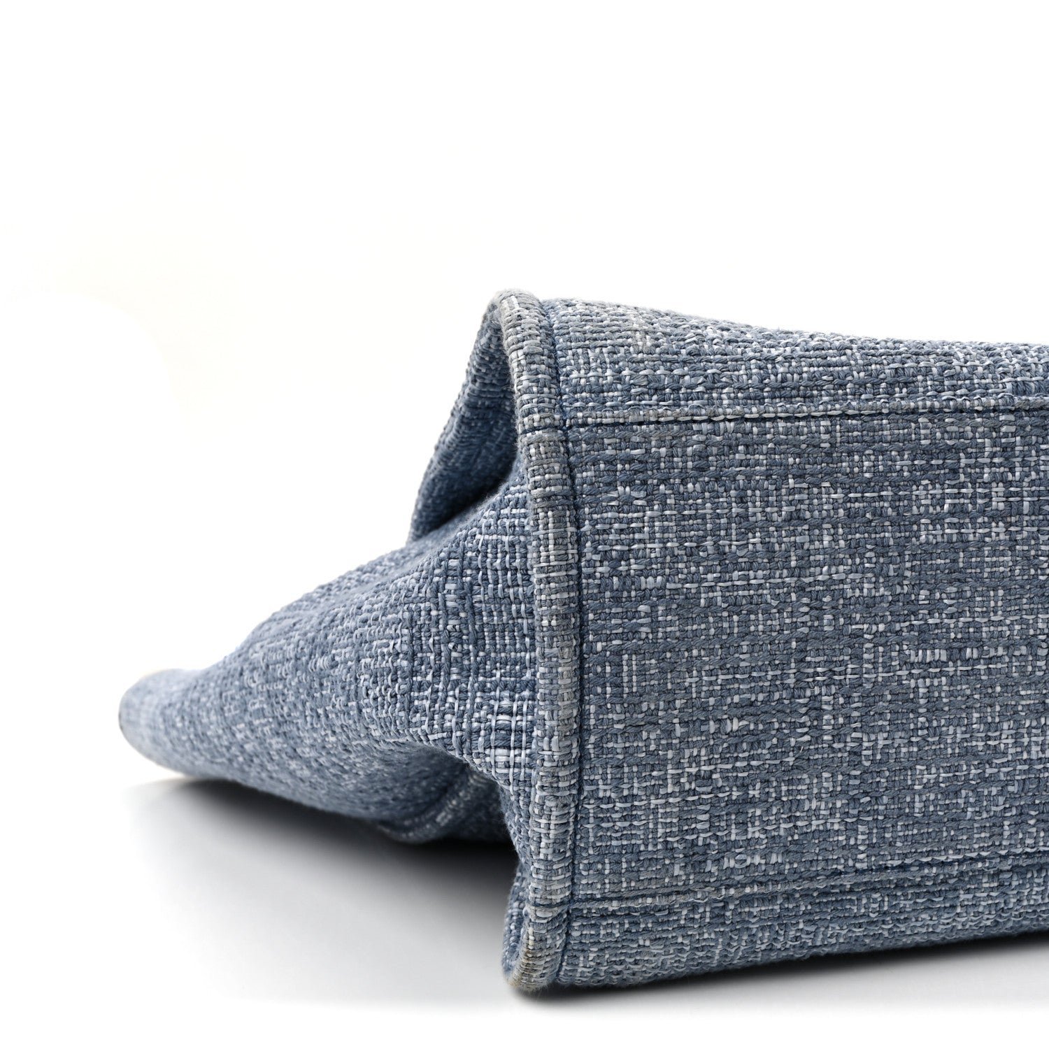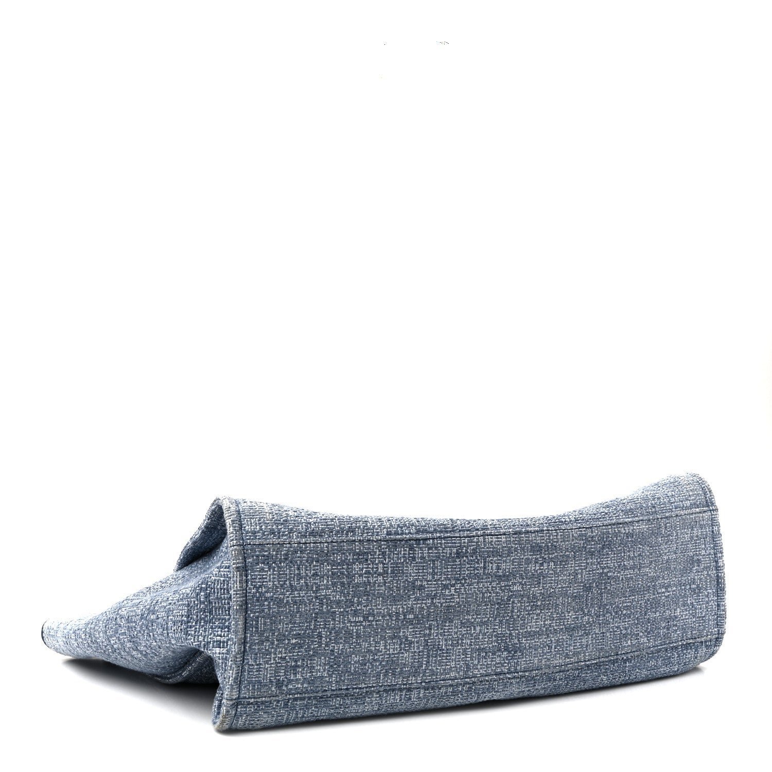 This specific model is crafted from a durable blue woven canvas, featuring the House’s signature “jacquard” style texture that balances a relaxed resort aesthetic with high-fashion structure. Originally introduced in the Spring/Summer 2012 collection, the Deauville line is named after the French seaside resort where Coco Chanel opened her first boutique. The defining design element is the large “CHANEL” branding and the 31 Rue Cambon address printed prominently on the front in a contrasting blue hue.