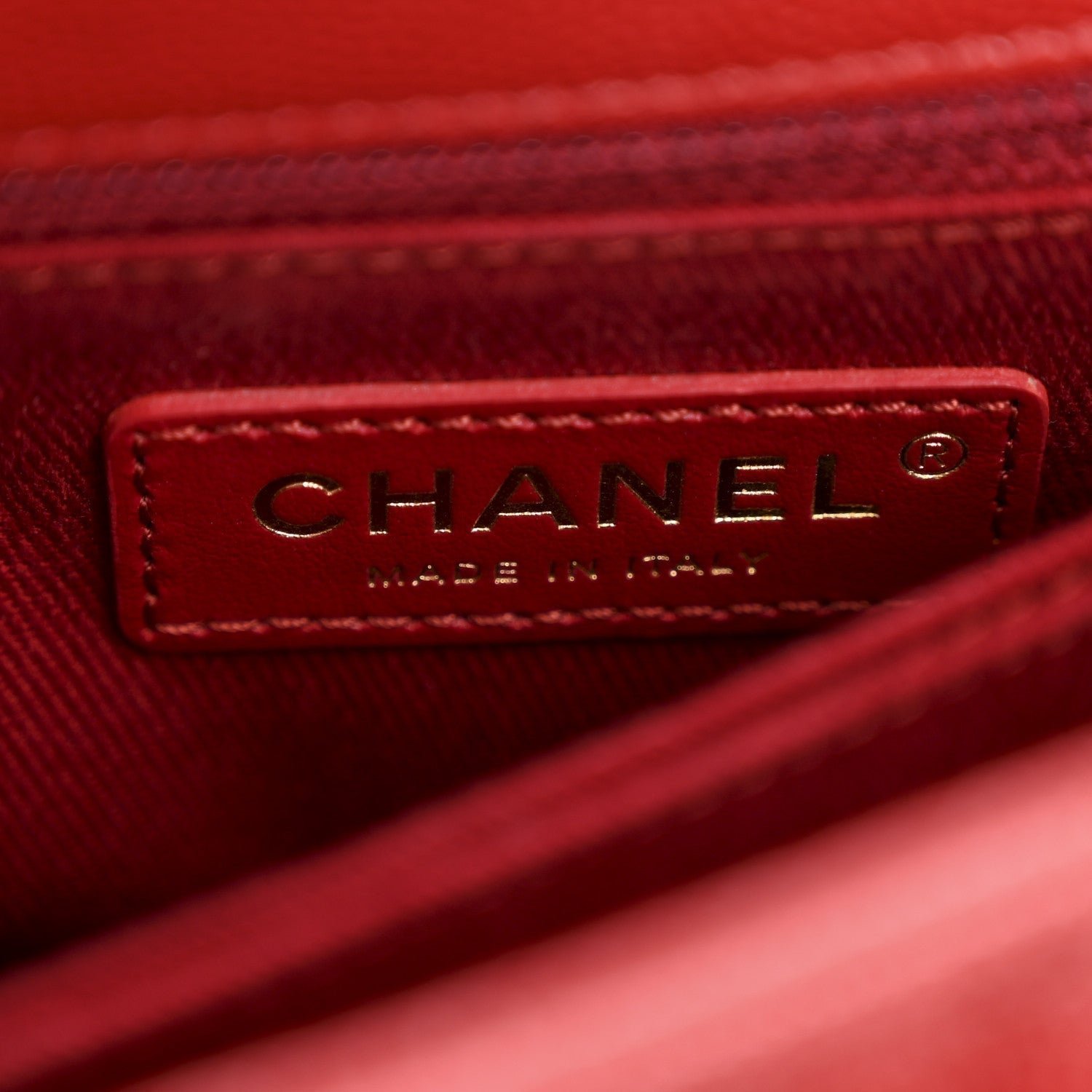 Designed for versatile elegance, the “Mini” size is compact yet functional, featuring a removable interwoven gold-tone chain and leather shoulder strap. This allows the bag to be carried by the top handle for a formal look or worn crossbody for hands-free convenience. The interior is divided into two main compartments by a central zippered pocket, lined in tonal fabric or leather, providing excellent organization for such a petite silhouette. This model is particularly sought after for its refined, “lady-like” aesthetic and its blend of classic Chanel elements with modern versatility.