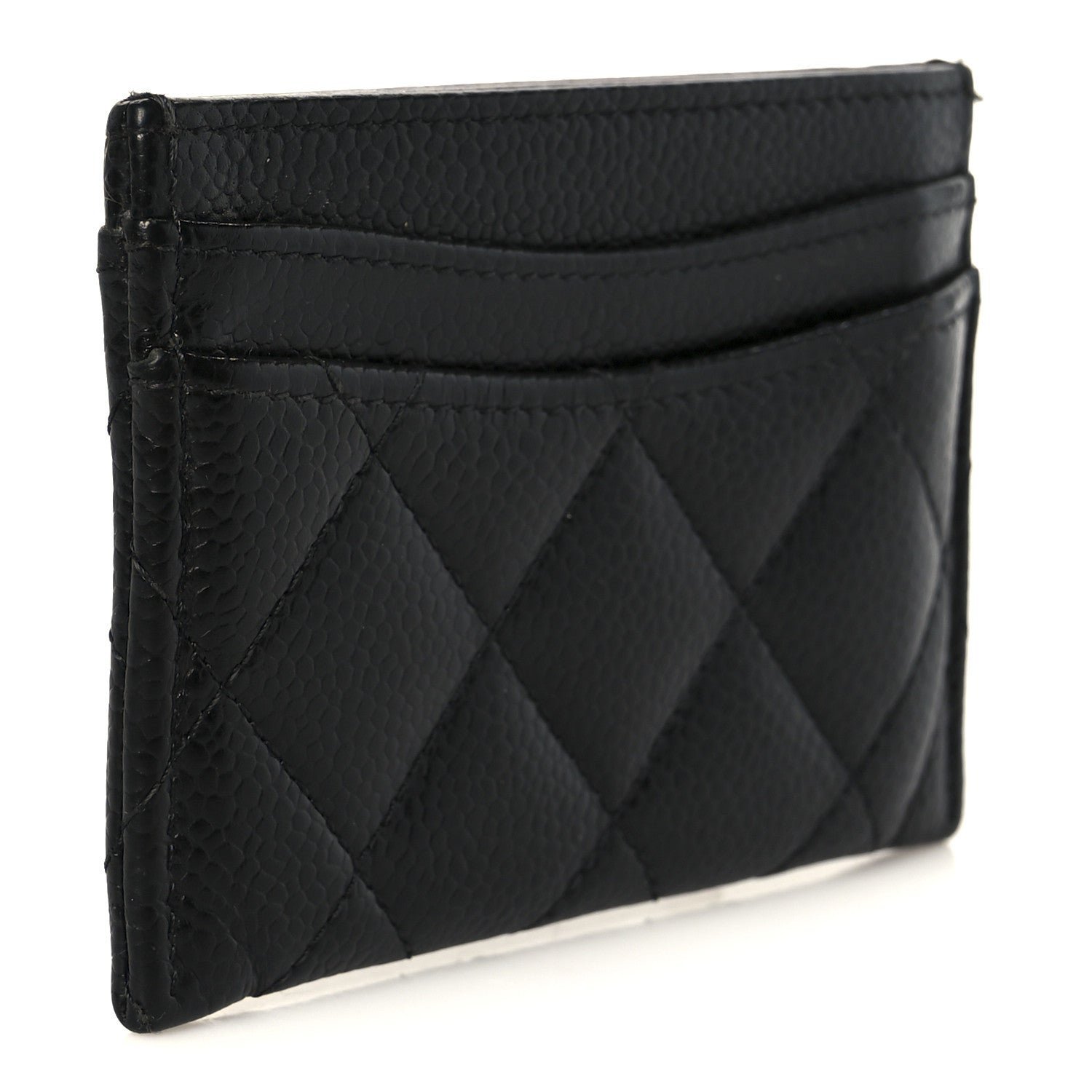 This specific model is crafted from black caviar leather, a signature material prized for its pebbled texture and extraordinary resistance to scratches, making it ideal for an item handled multiple times a day. As a cornerstone of Chanel’s permanent collection, it features the iconic diamond quilting and a petite interlocking CC logo.