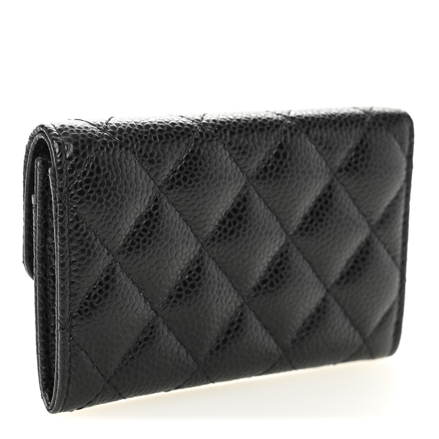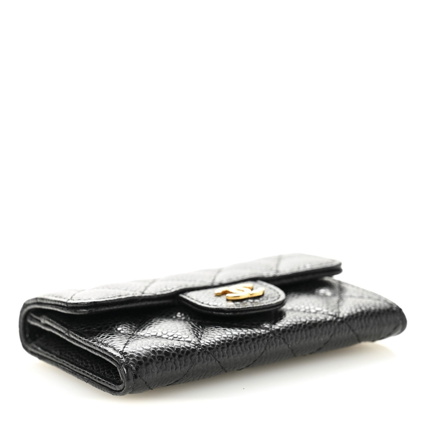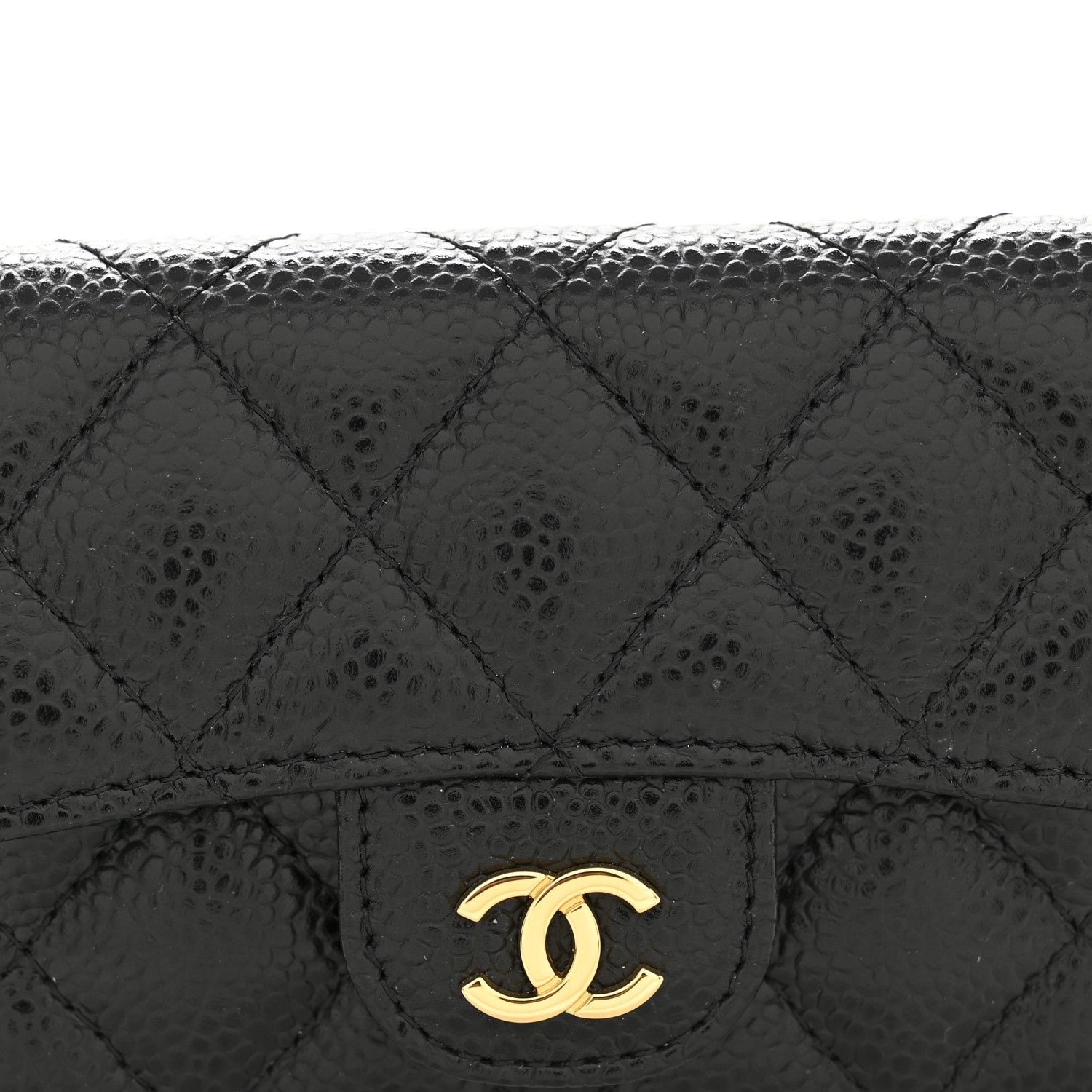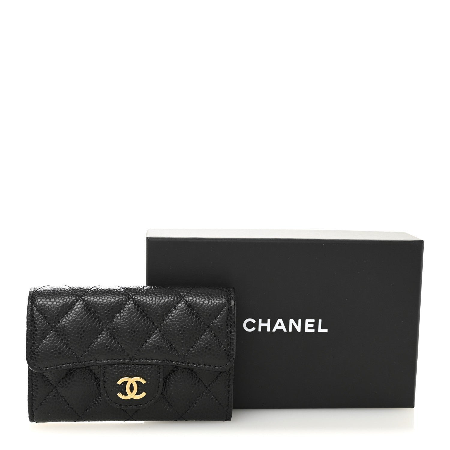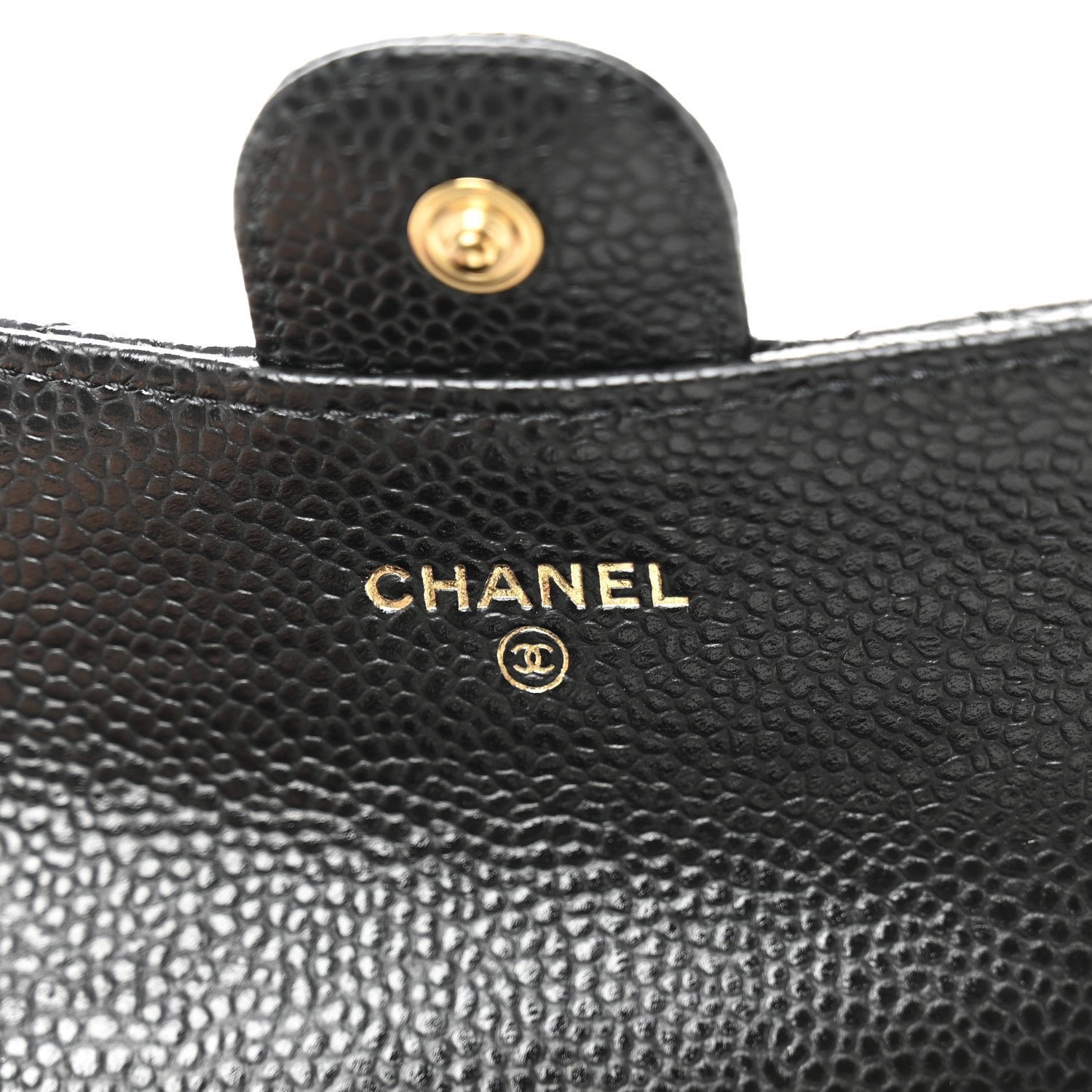 Hardware and Branding: The front flap is adorned with a petite silver-tone or gold-tone interlocking CC logo, which serves as a subtle yet elegant mark of luxury. The piece is secured with a snap button closure hidden beneath the front flap.