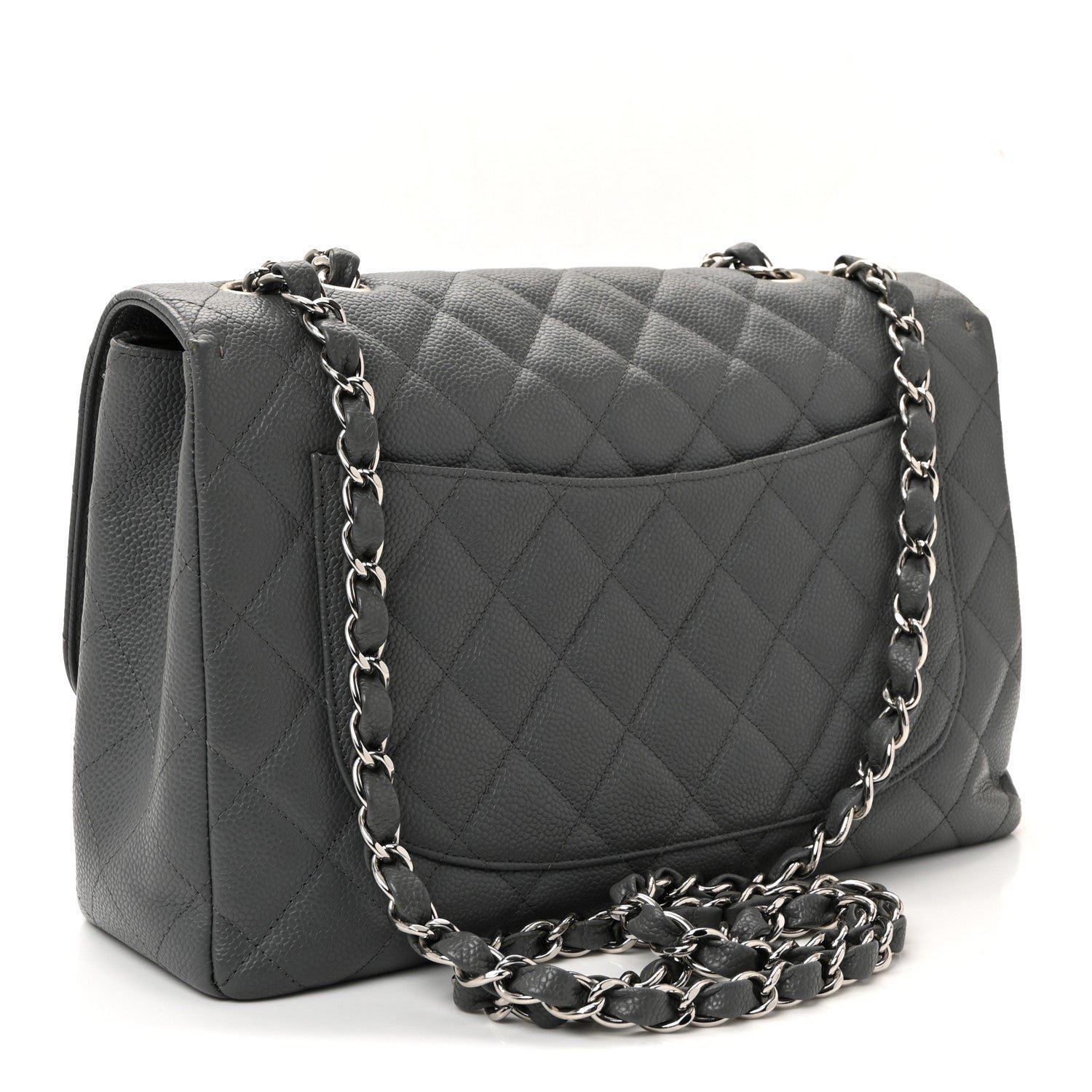 Design & Material: This stylish shoulder bag is crafted from luxuriously textured, padded diamond-quilted caviar leather in grey. Caviar (grained calfskin) is prized for its pebbled finish and high resistance to scratches.