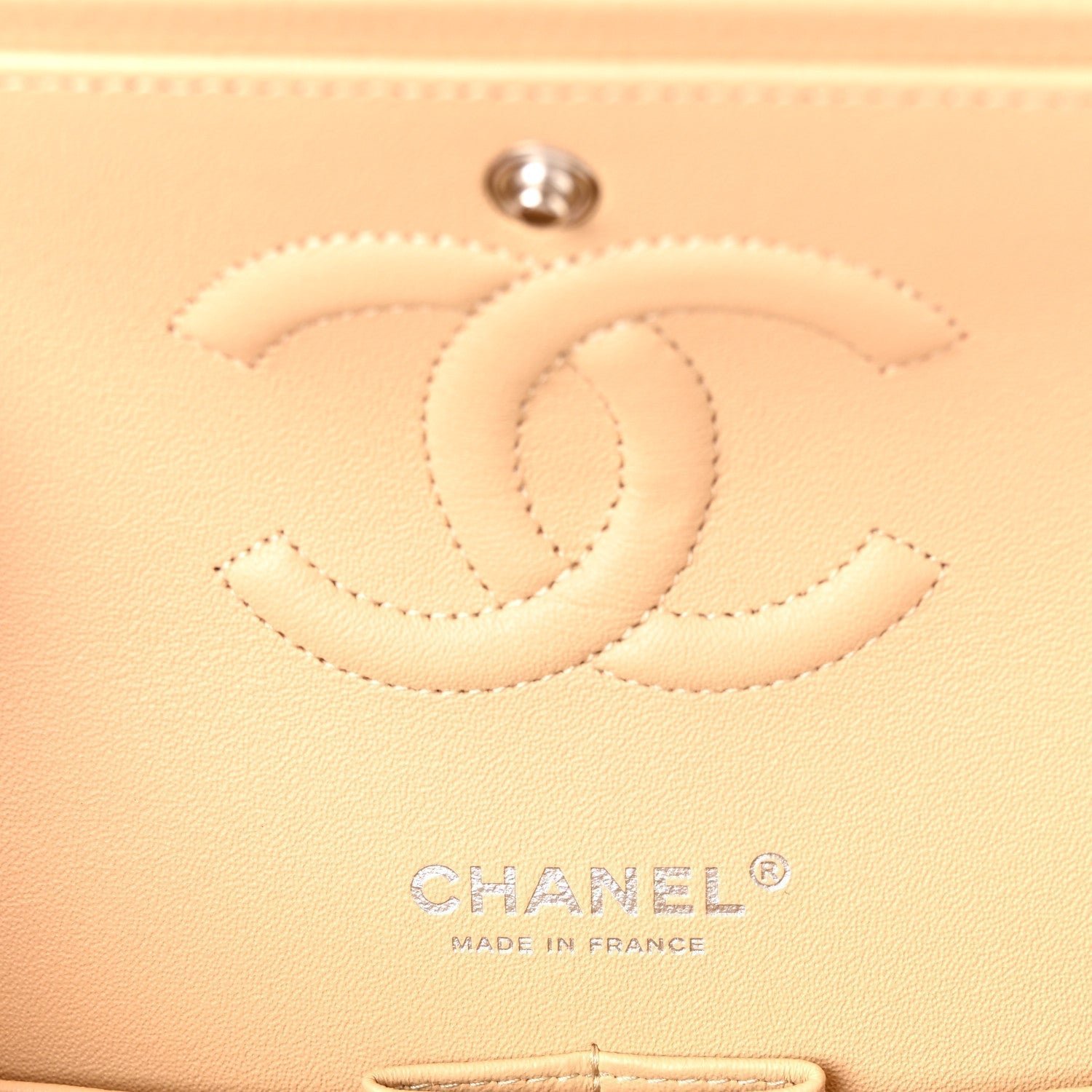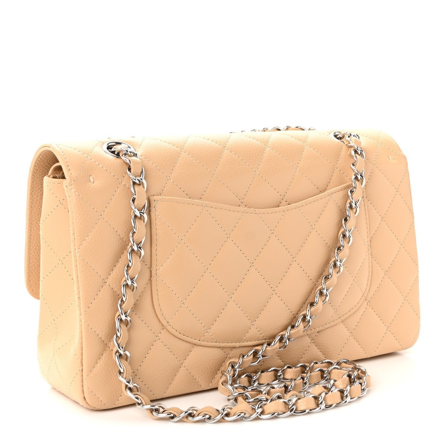 Color & Material: Crafted from signature beige clair caviar leather (grained calfskin). Beige Clair is one of Chanel’s most famous neutral shades, often described as a soft, creamy beige with subtle blush or pink undertones.