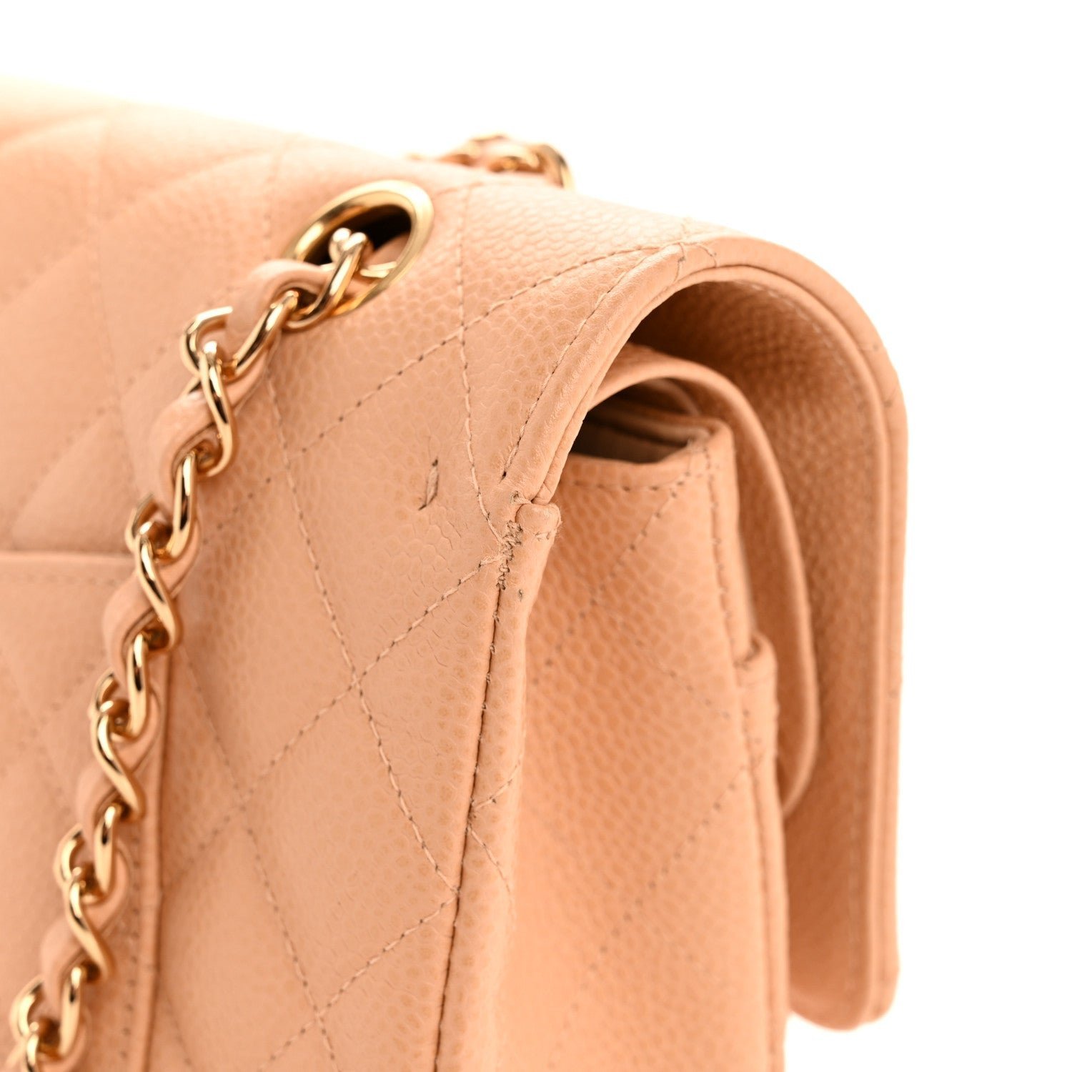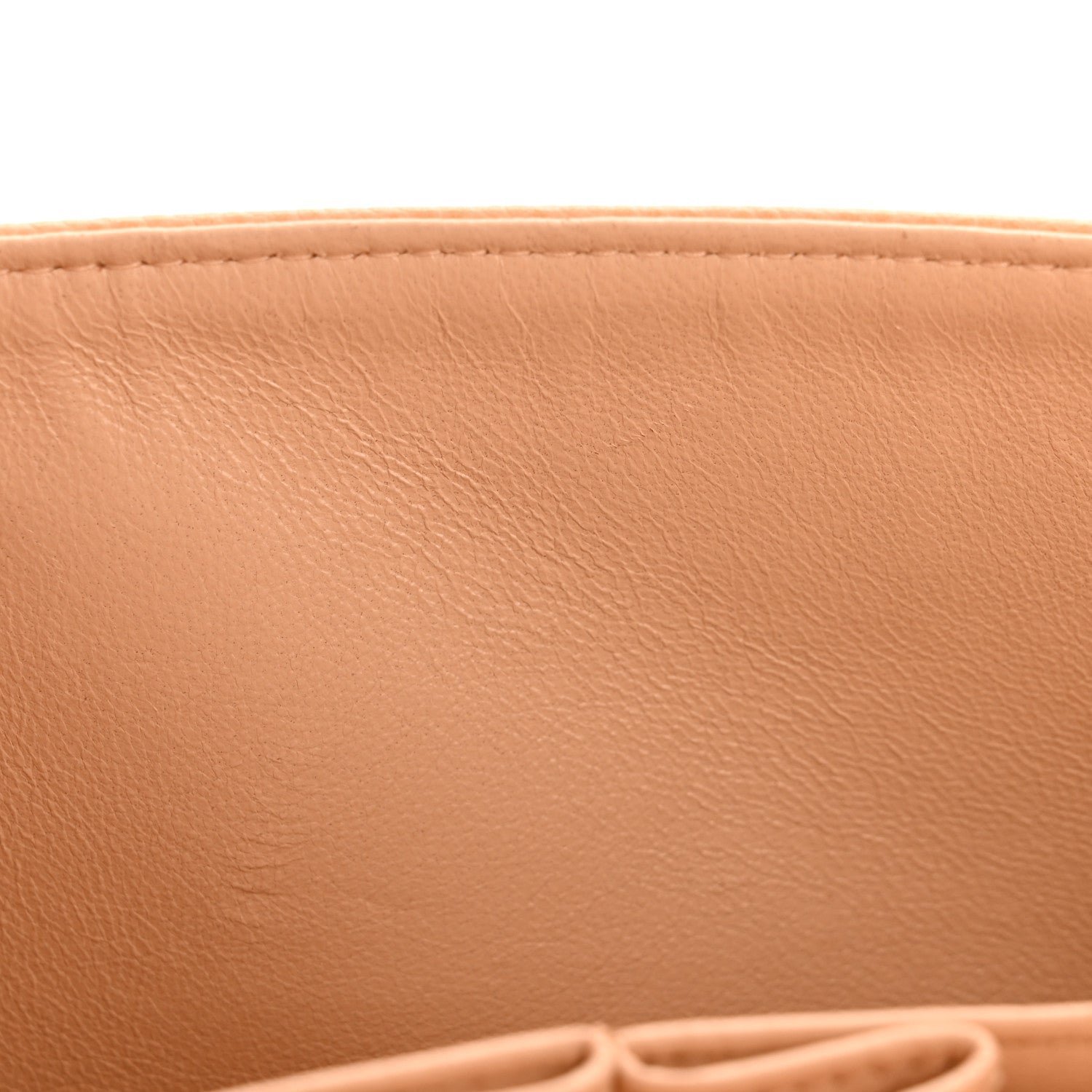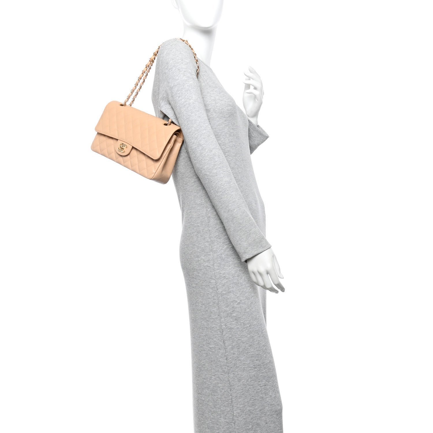 Hardware: Features polished gold-tone metal accents, including the iconic interlocking CC turn-lock closure. Genuine Chanel logos typically have a warm gold tone, and the right “C” always overlaps the left “C” at the top.