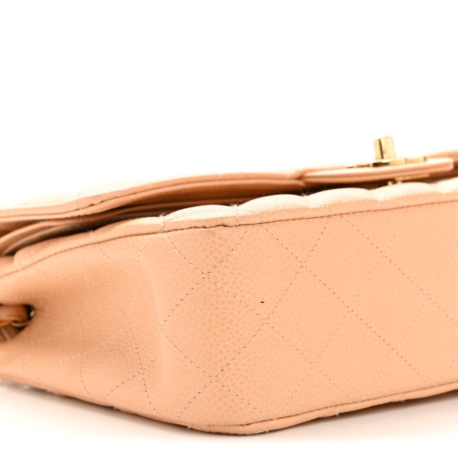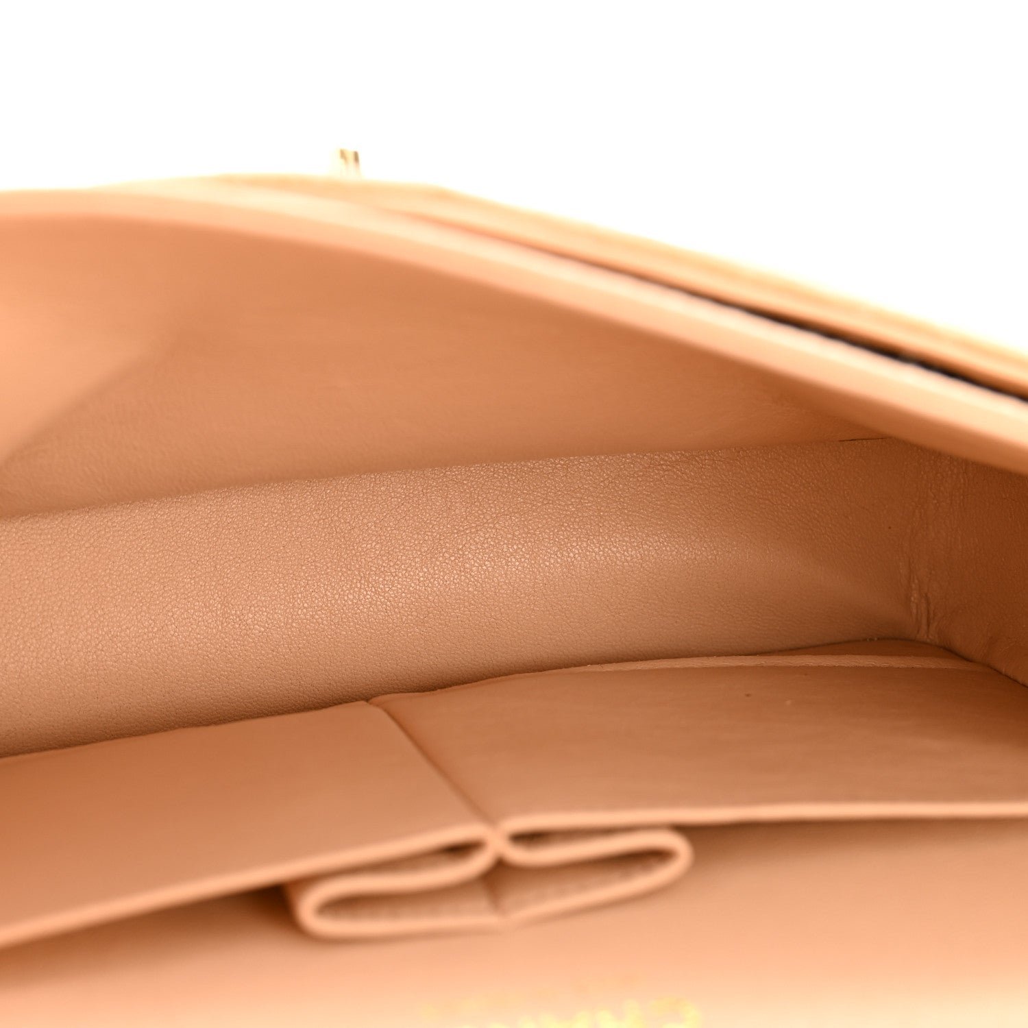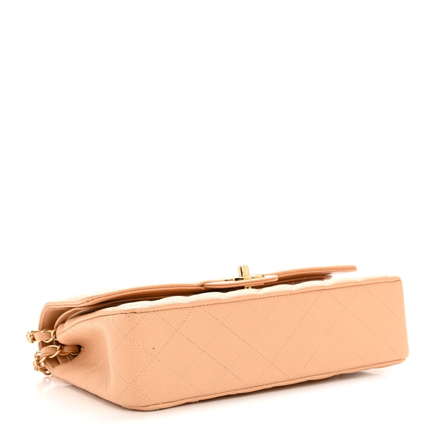 Hardware: Features polished gold-tone metal accents, including the iconic interlocking CC turn-lock closure. Genuine Chanel logos typically have a warm gold tone, and the right “C” always overlaps the left “C” at the top.