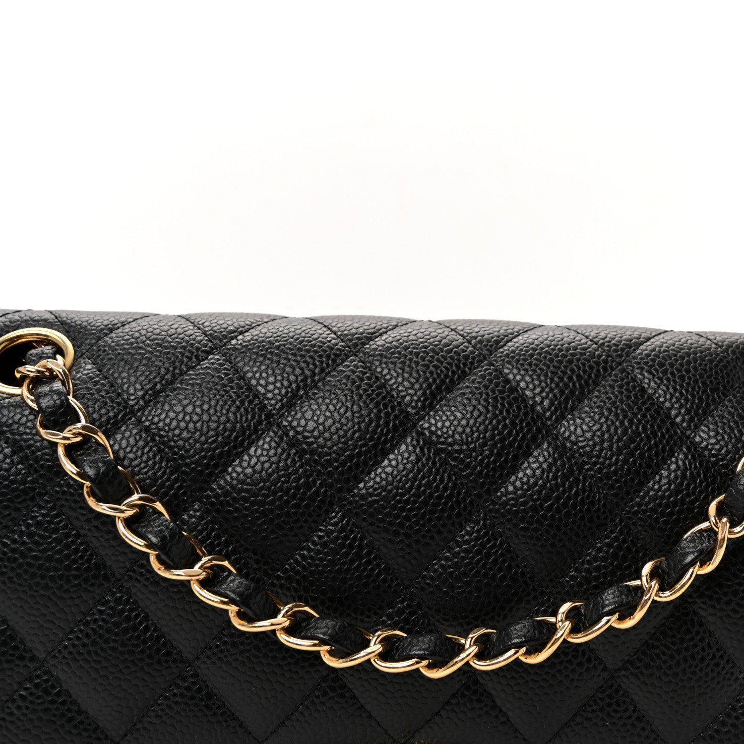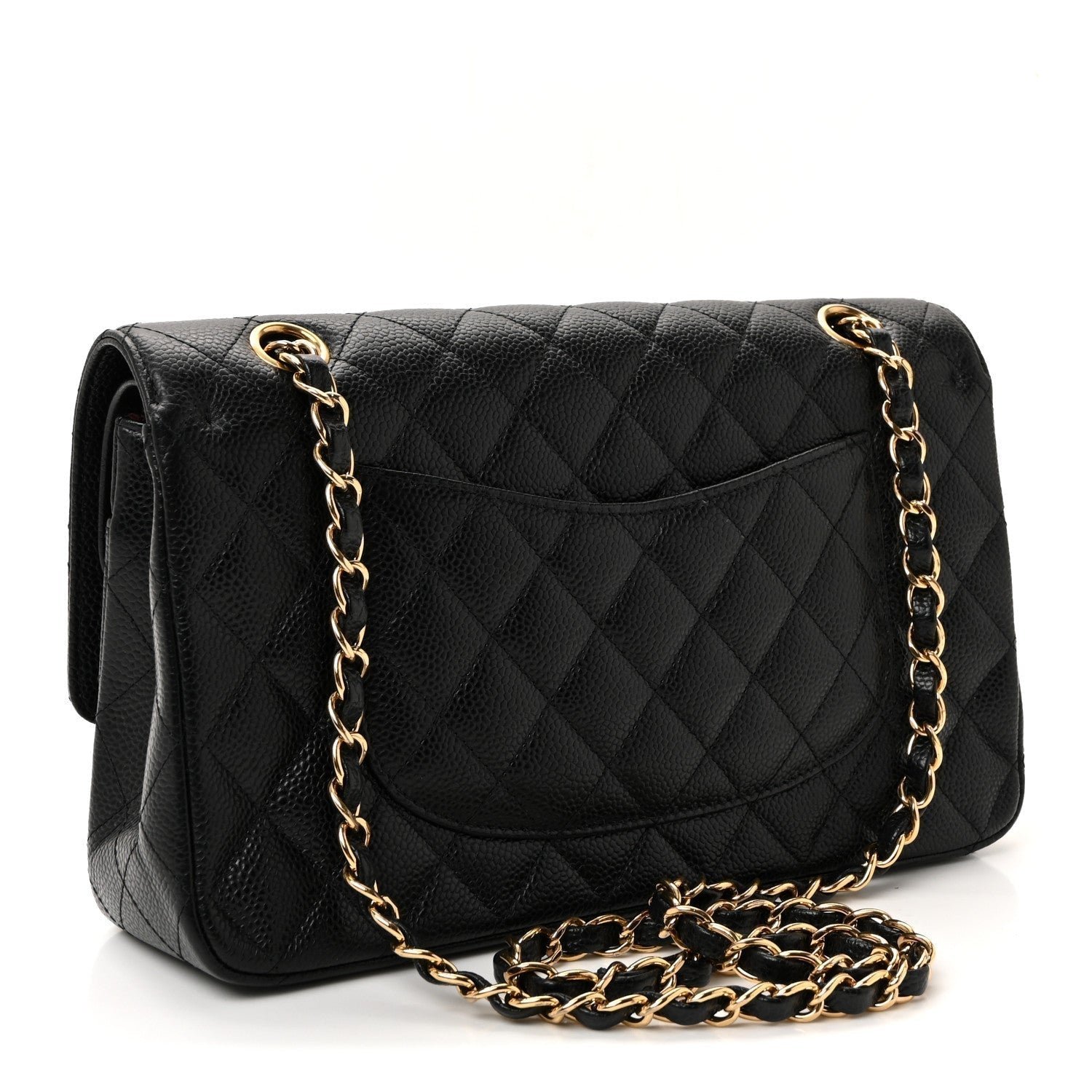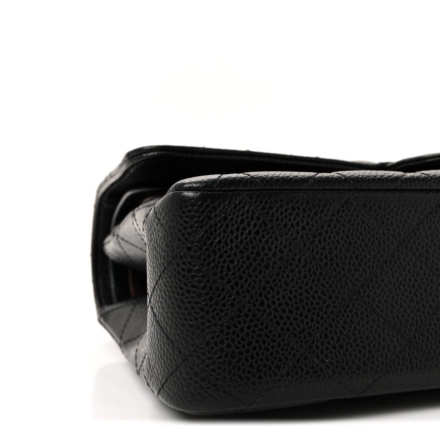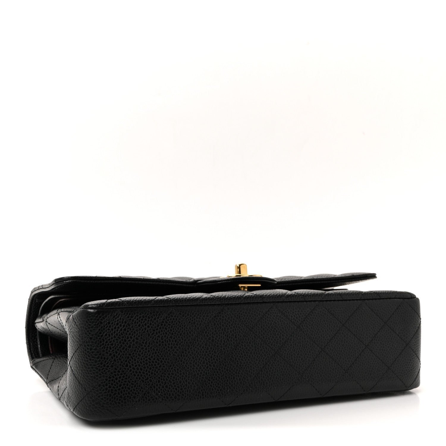 Material and Texture: The exterior is meticulously crafted from signature black caviar leather (grained calfskin), known for its pebbled texture and scratch-resistant finish. It features the legendary diamond-quilted stitching that characterizes the brand’s classic line.