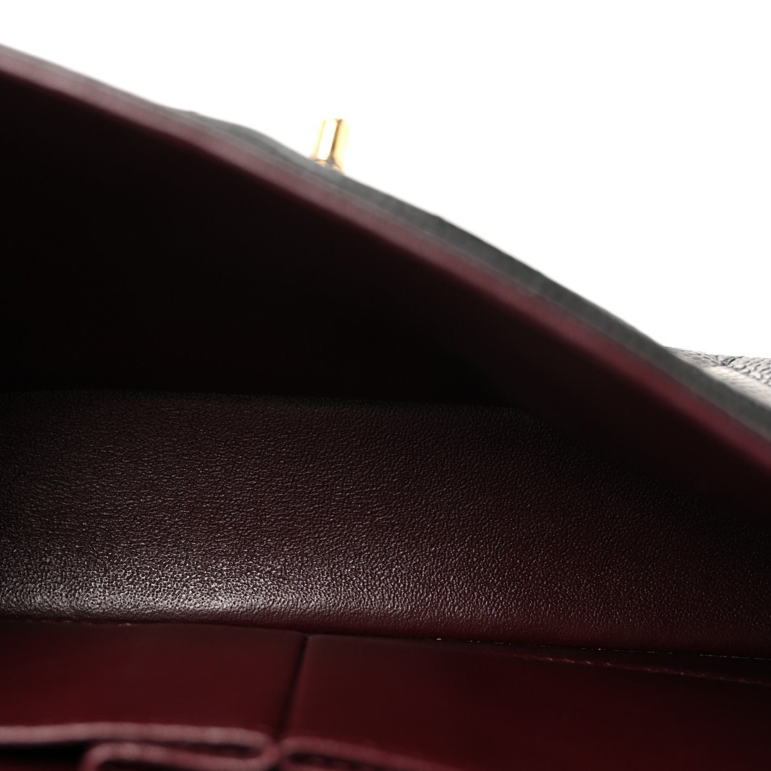 Double Flap Configuration: The “Double Flap” architecture provides structural integrity and added security. Opening the top flap reveals a secondary internal flap and a burgundy leather lining, a historical tribute to the colors of the orphanage where Coco Chanel was raised.