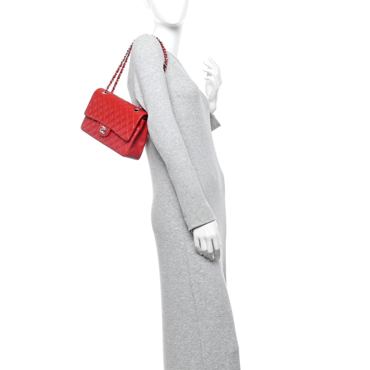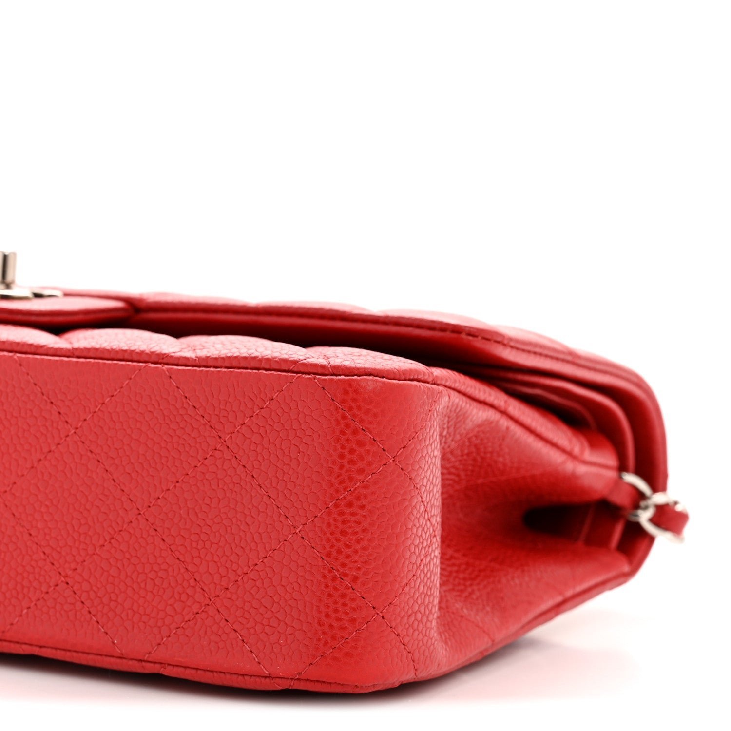 Hardware & Branding: The front is secured by a polished silver-tone metal interlocking CC turn-lock closure.