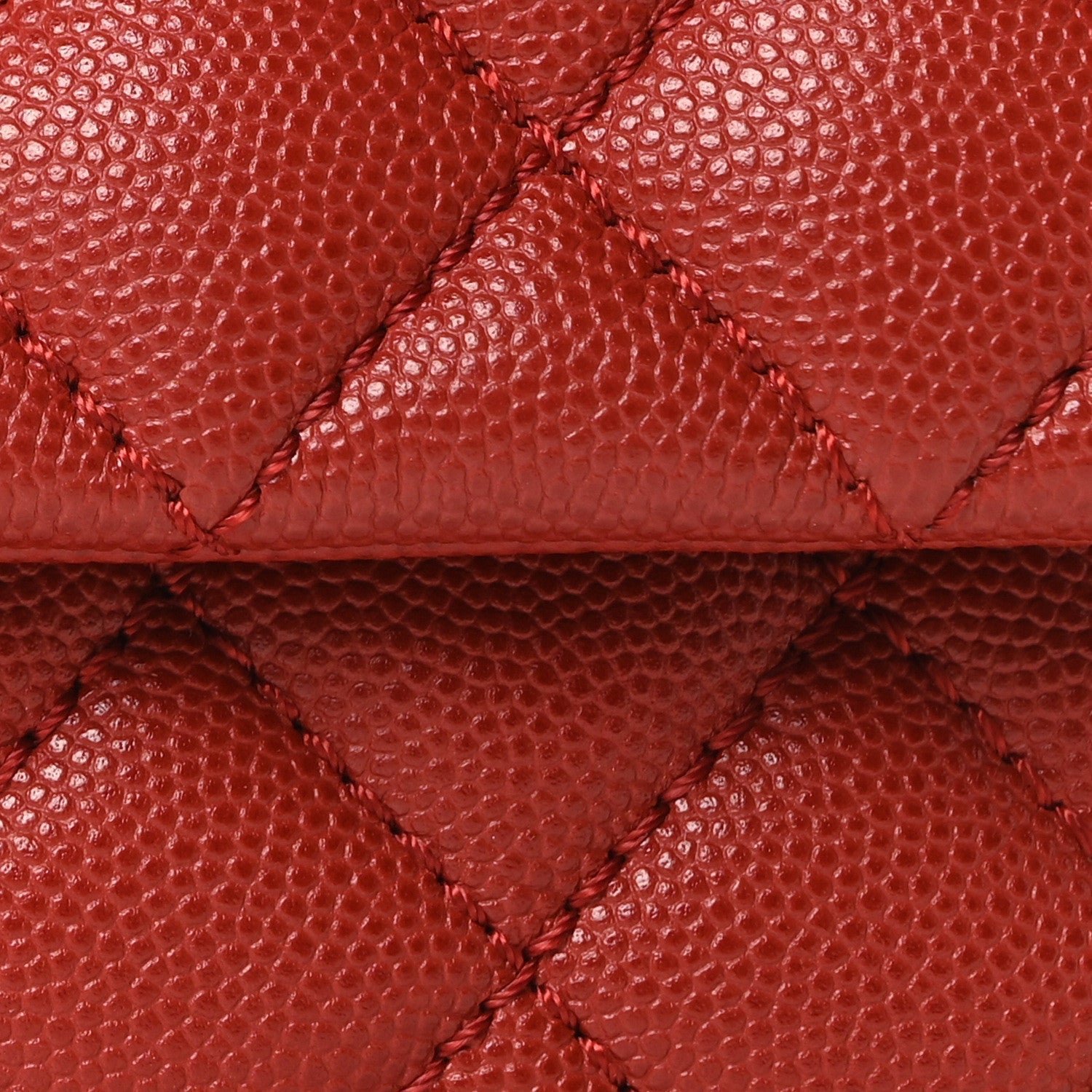 Material: The exterior is crafted from red caviar leather (grained calfskin), which provides a structured feel and high resistance to scratches.
