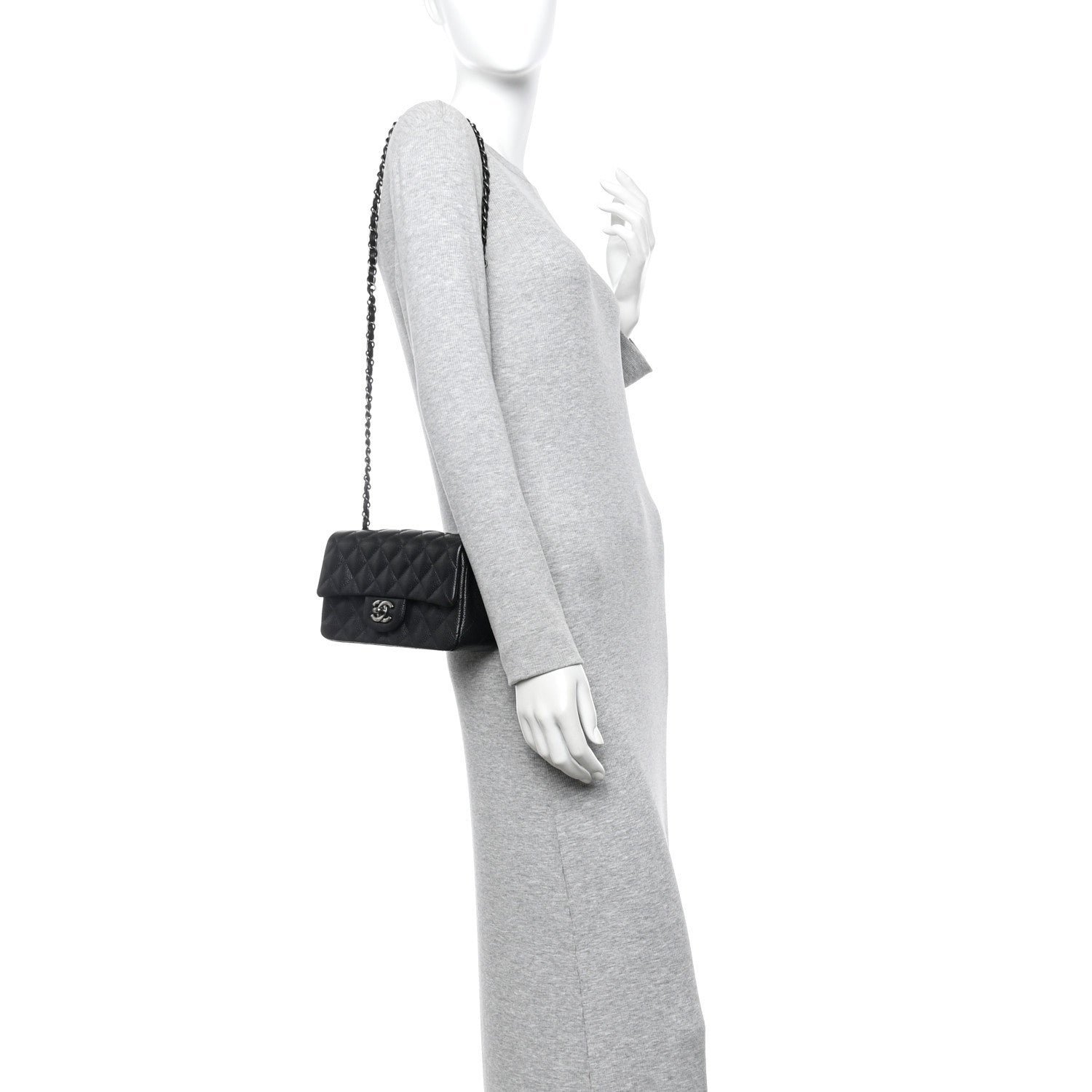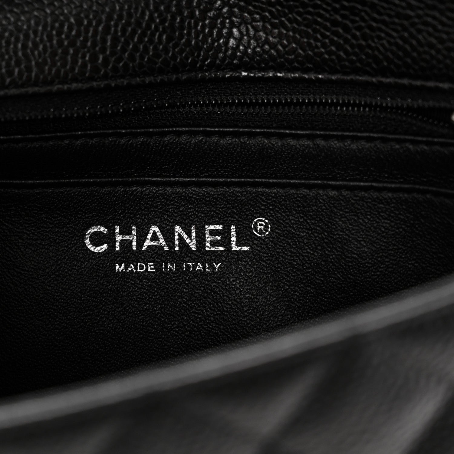 The Chanel Caviar Quilted Mini Rectangular Flap in Black with Silver Hardware is a highly sought-after, “modern classic” within the house’s lineup. While most larger Classic Flaps feature a double-flap design, the Mini Rectangular is distinguished by its single flap architecture, which allows it to hold a similar amount of items to the “Small” Classic Flap despite its more compact exterior.