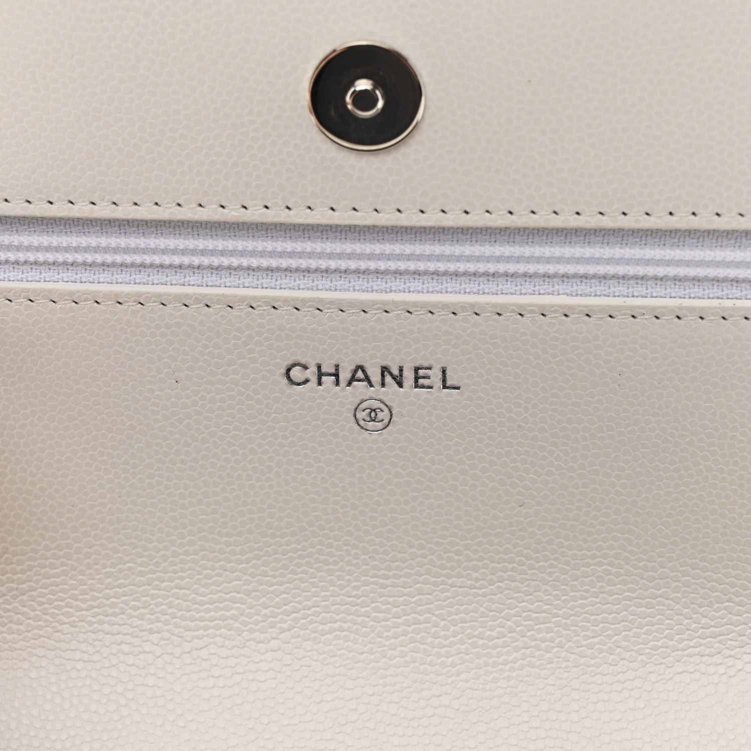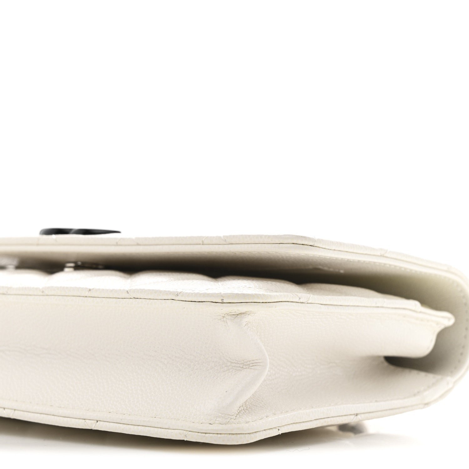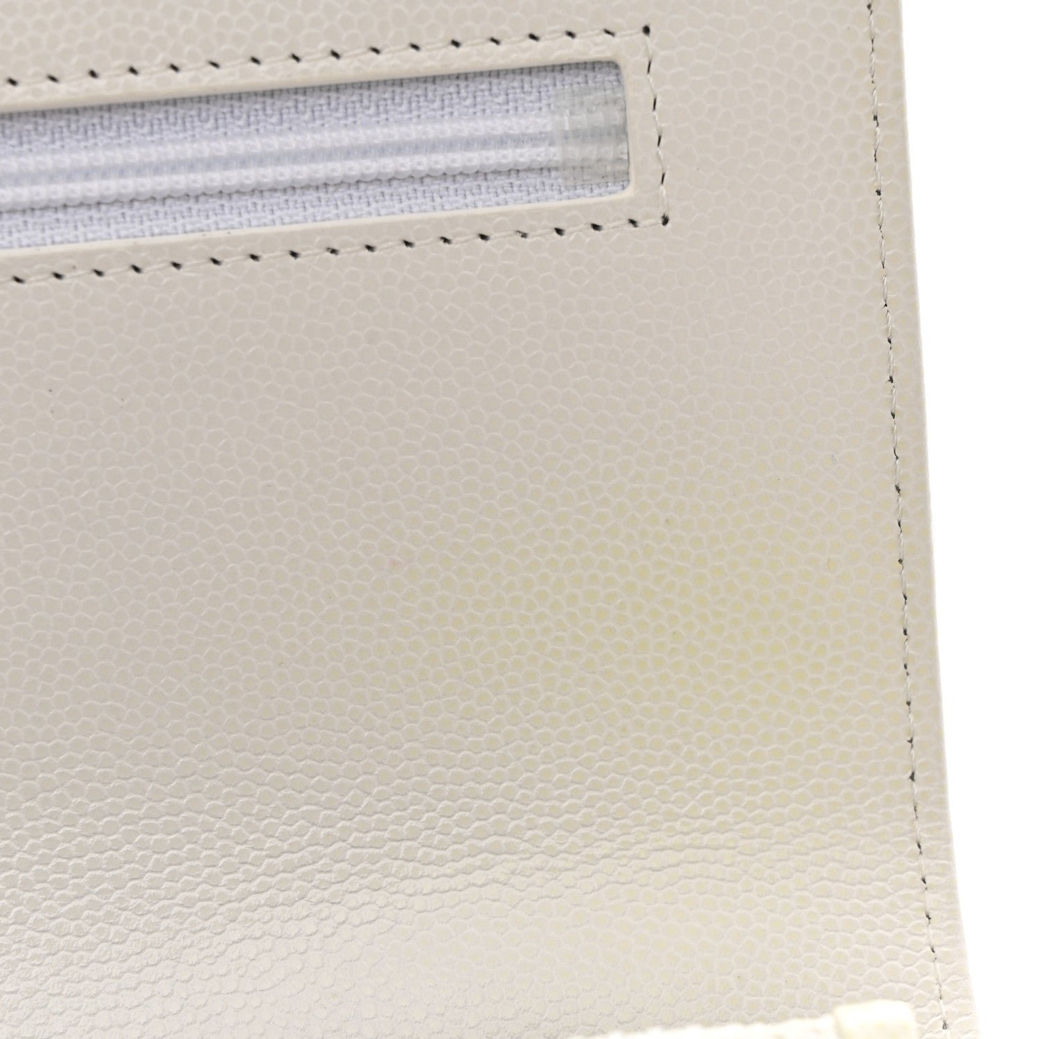 Material: The exterior is crafted from white caviar leather (grained calfskin), a luxuriously textured material highly resistant to scratches and everyday wear.