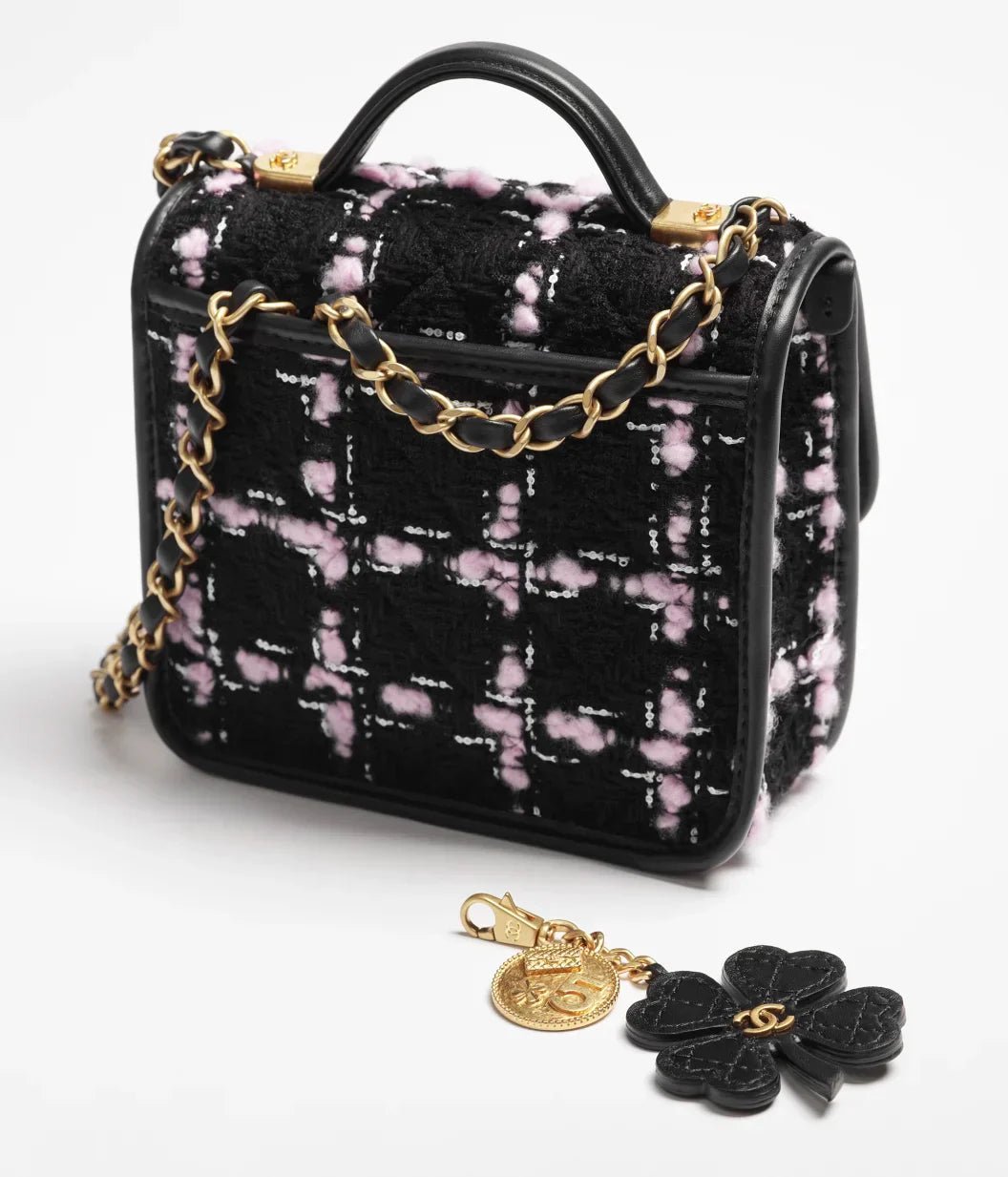 Material: Wool Tweed, Calfskin & Gold-Tone Metal
