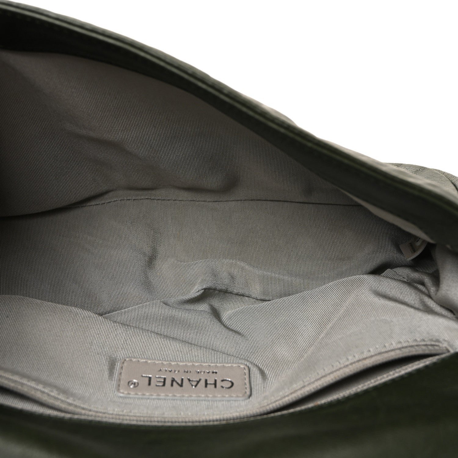 Named after the historic and glamorous waterfront street in Shanghai, this specific model was introduced to commemorate the Paris-Shanghai Métiers d’Art collection. It is crafted from dark khaki calfskin leather, featuring a soft and slouchy texture that distinguishes it from the rigid structure of the Classic Flap. The signature design element is the whip-stitched leather trim along the edges of the flap and the large interlocking CC logo often in a squared pattern prominently displayed on the front.