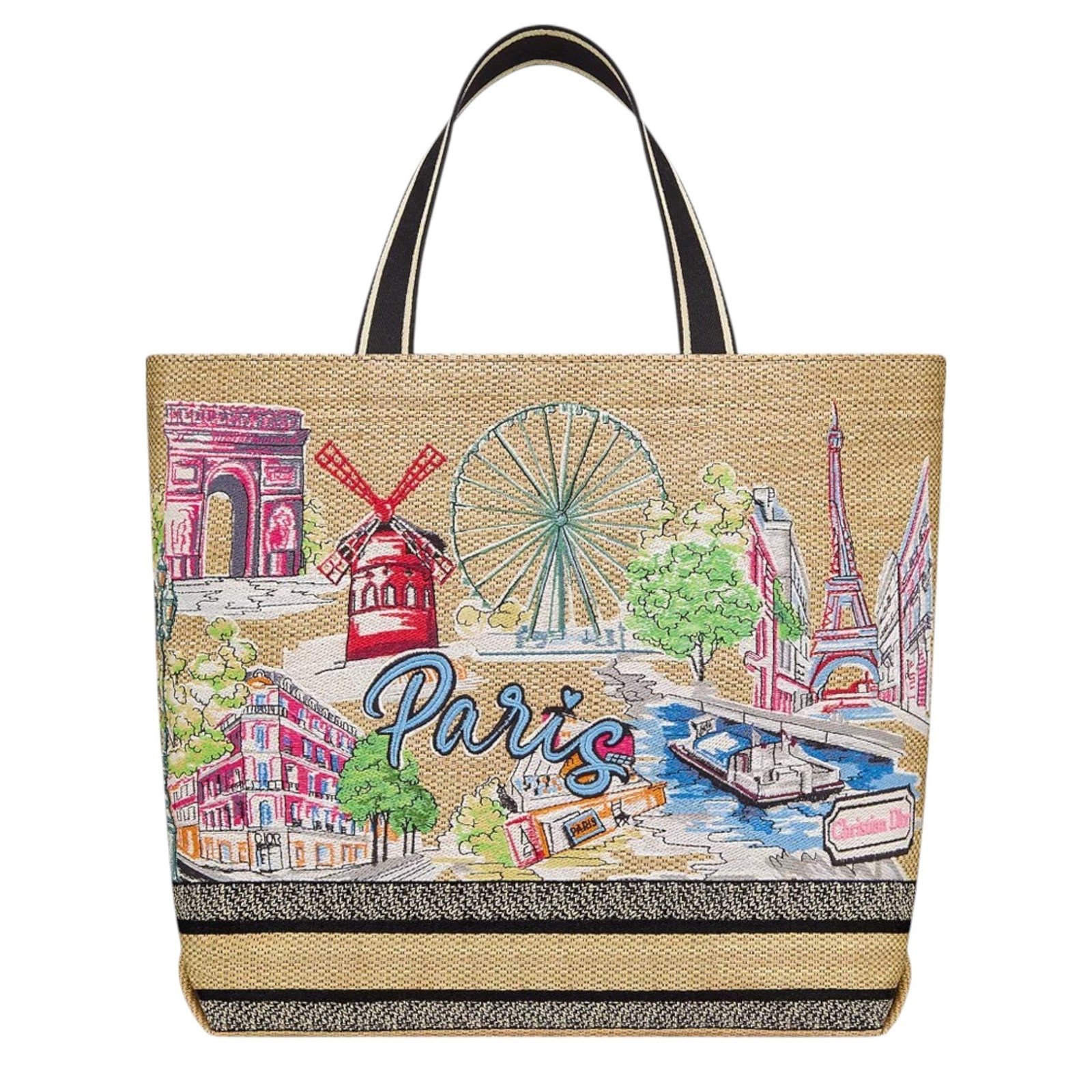 New for Fall 2025 and part of the Dior Souvenir capsule, the Soft Dior Book Tote is a new take on the iconic design by Maria Grazia Chiuri, showcasing a supple construction. Made in natural raffia and embroidered cotton, the bag highlights the multicolor Dior Souvenir motif, capturing a cherished House destination with vibrant colors reflecting its unique character. The front of the creation is adorned with the Christian Dior Paris signature, while the interior reveals a removable zipped pouch. The practical style exemplifies House savoir-faire and may be carried by hand or worn over the shoulder thanks to its adjustable and removable embroidered strap. The large tote will pair perfectly with other Dior Souvenir creations.