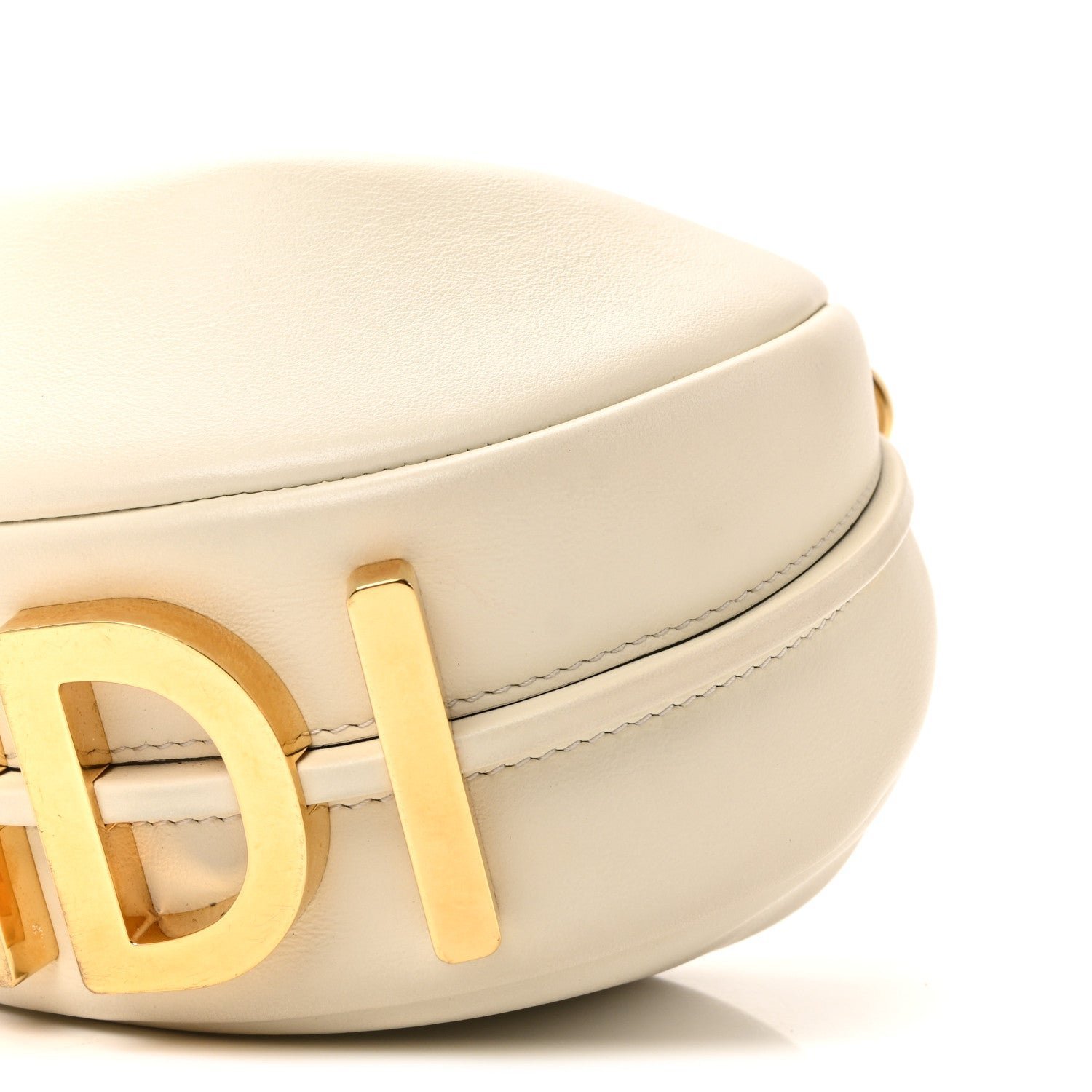 The Mini Fendigraphy is a chic, compact hobo bag defined by its sleek geometric lines and signature bold details. This version is meticulously crafted from White Ice Vitello Grace leather, a refined off-white shade that serves as a versatile neutral.