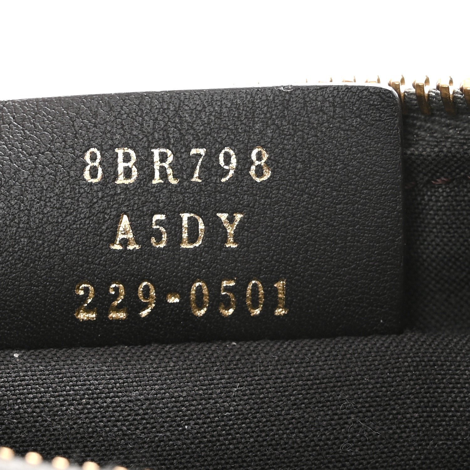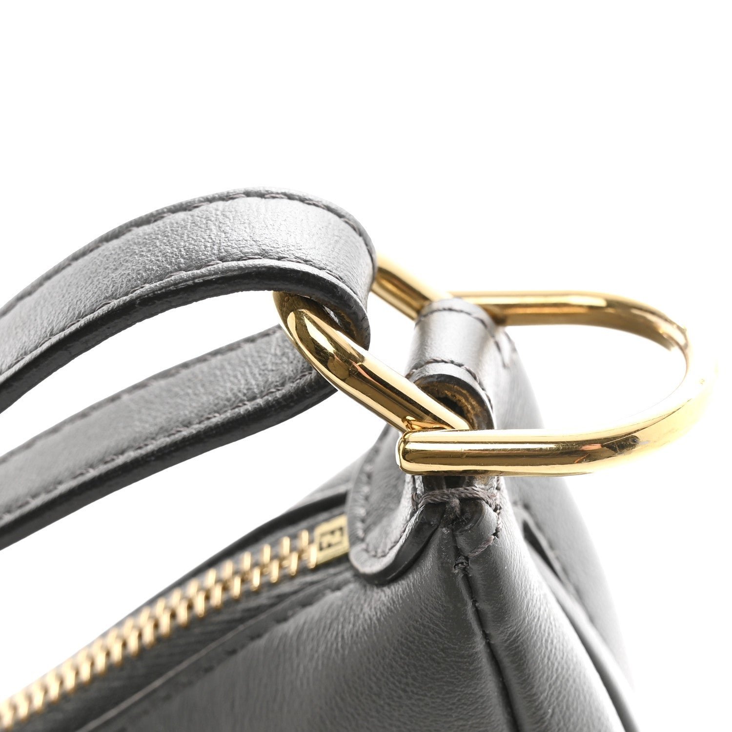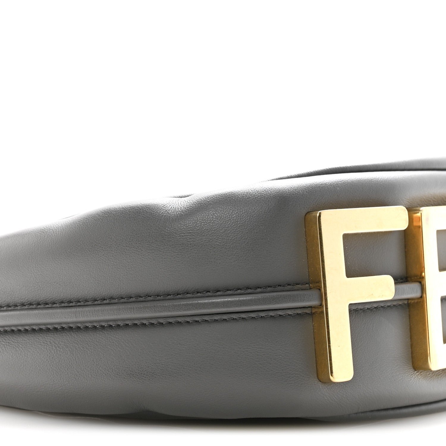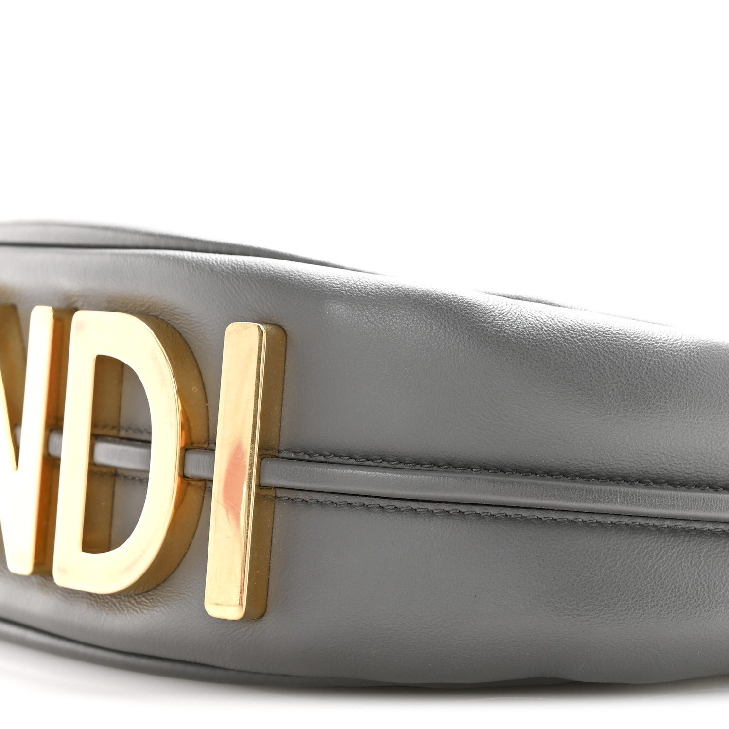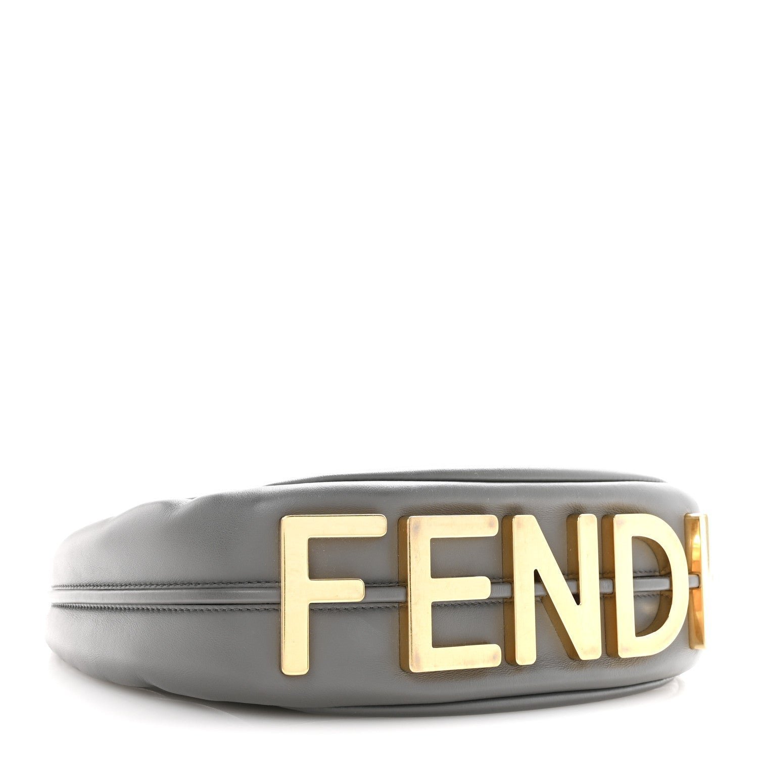 Hardware: Polished gold-finish metalware, including the signature FENDI lettering along the base.