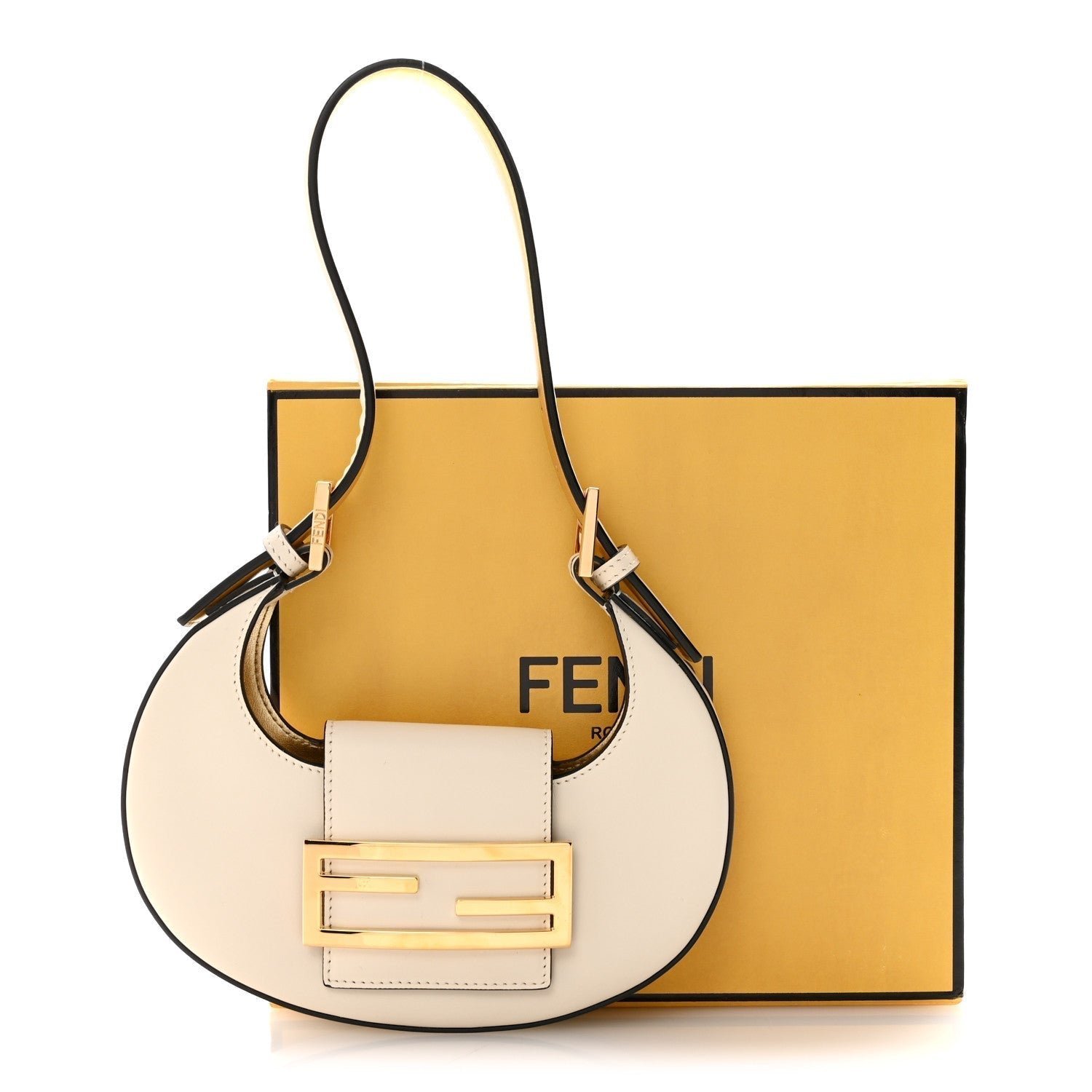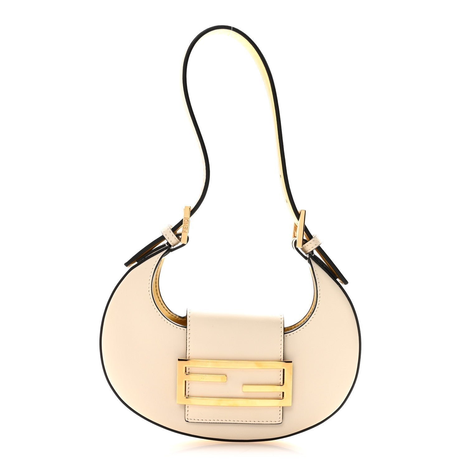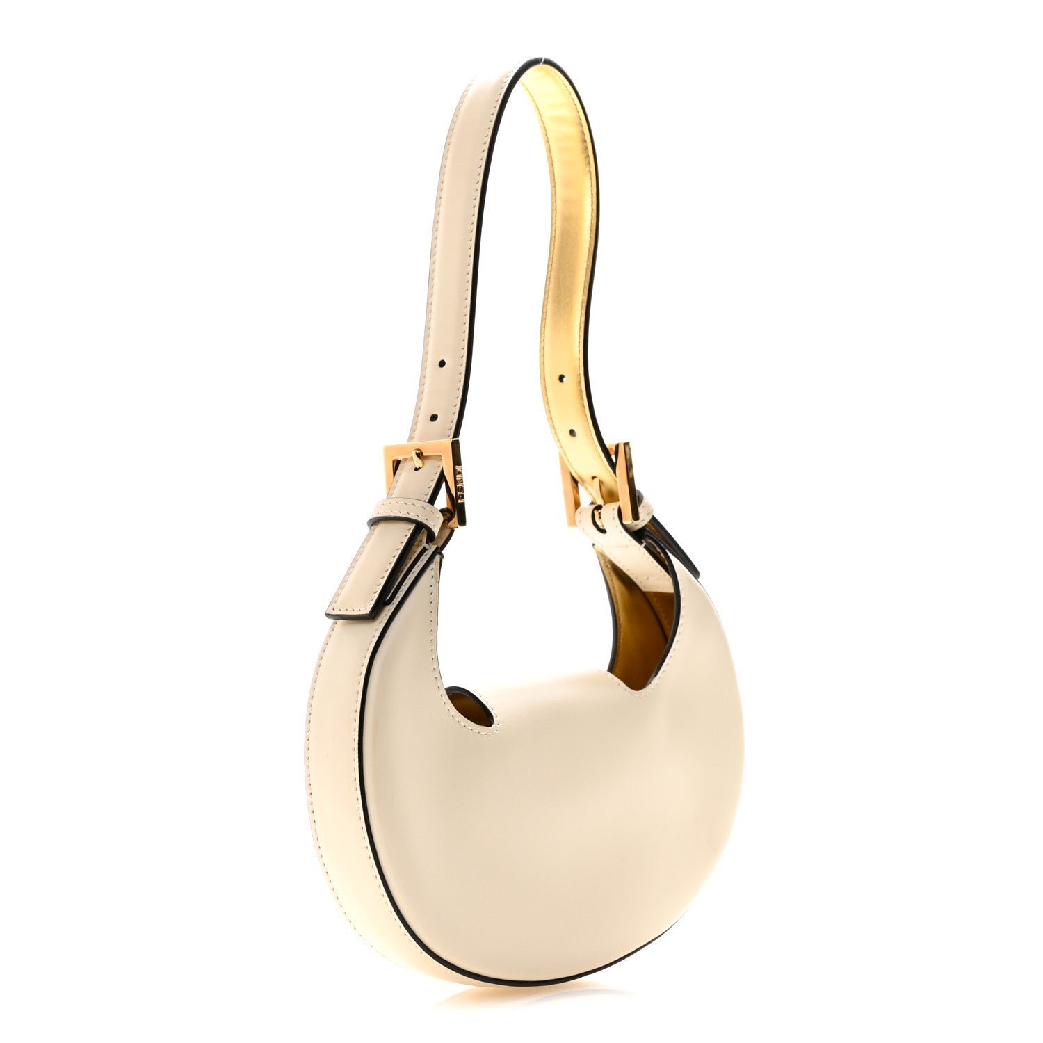 The bag’s defining feature is its top strap with a magnetic snap closure, which is accented by a gold-finish or silver-finish FF logo buckle. It features a single, adjustable flat shoulder strap, allowing it to be carried comfortably as a short shoulder bag or a handheld hobo. The interior is typically lined with tonal fabric or suede, providing a streamlined space for only the most essential items.