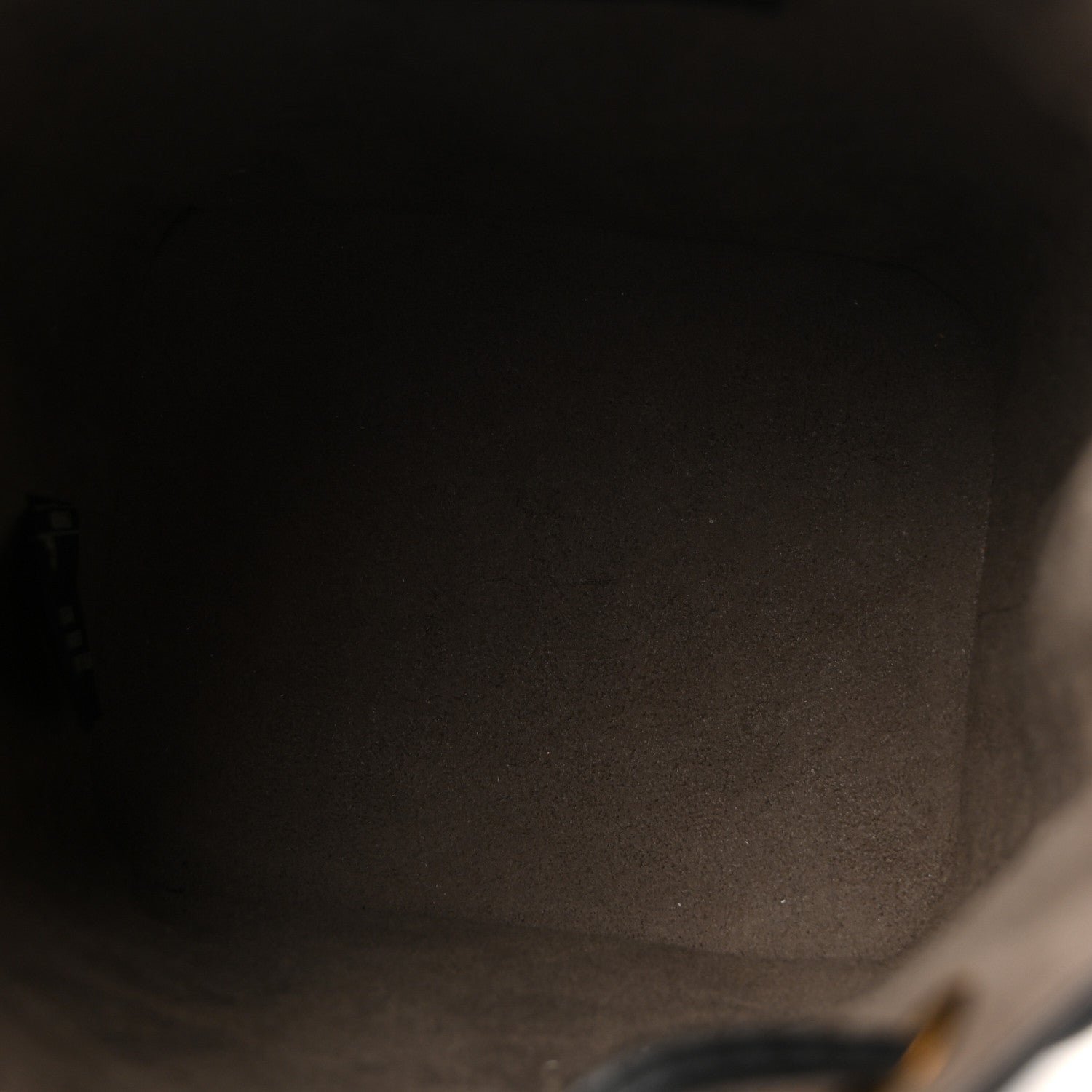 The Mini Mon Tresor is an iconic bucket bag known for its timeless, compact silhouette and functional elegance. This specific iteration is crafted from Vitello Liberty—a supple, premium calfskin leather—featuring the iconic FF 1974 monogram motif. The pattern is meticulously embossed and hand-painted in a striking bi-color Maya brown and black palette, giving it a three-dimensional, textured appearance.