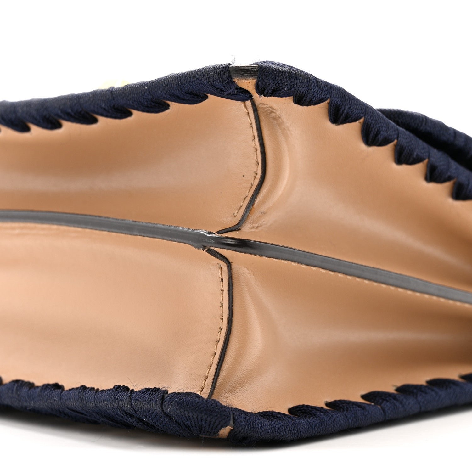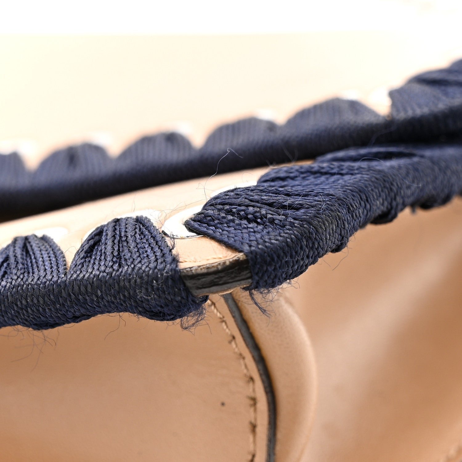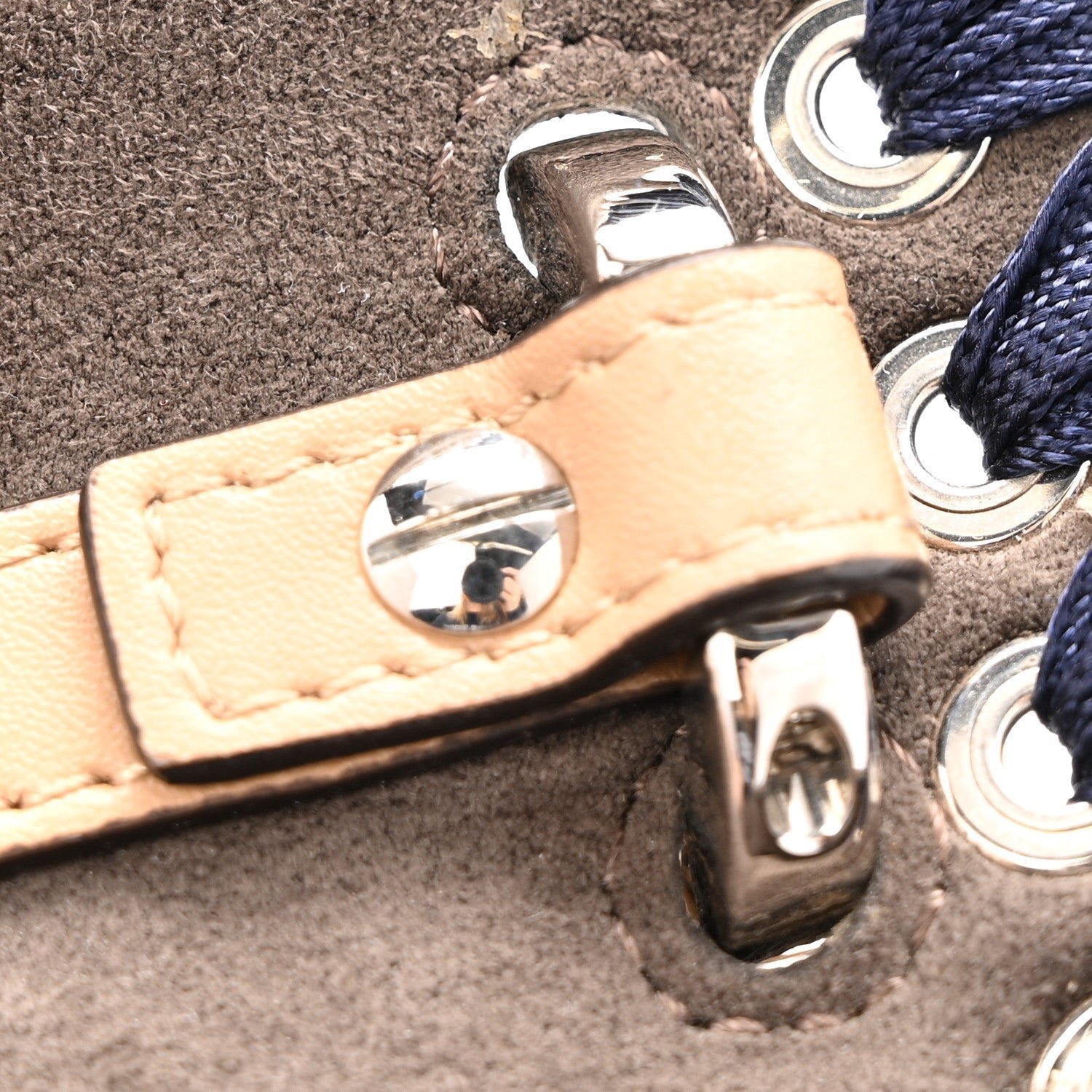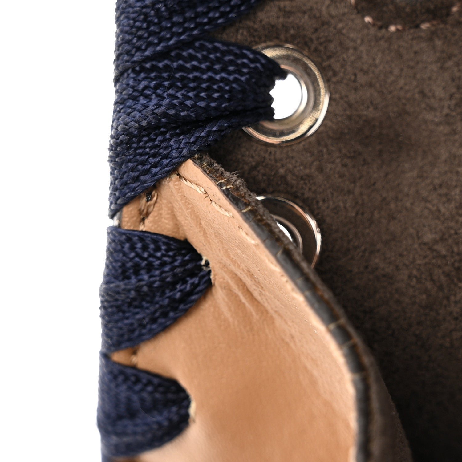 Material: Glossy Vitello Liberty Lucido calfskin leather with navy ribbon lace-up detailing.