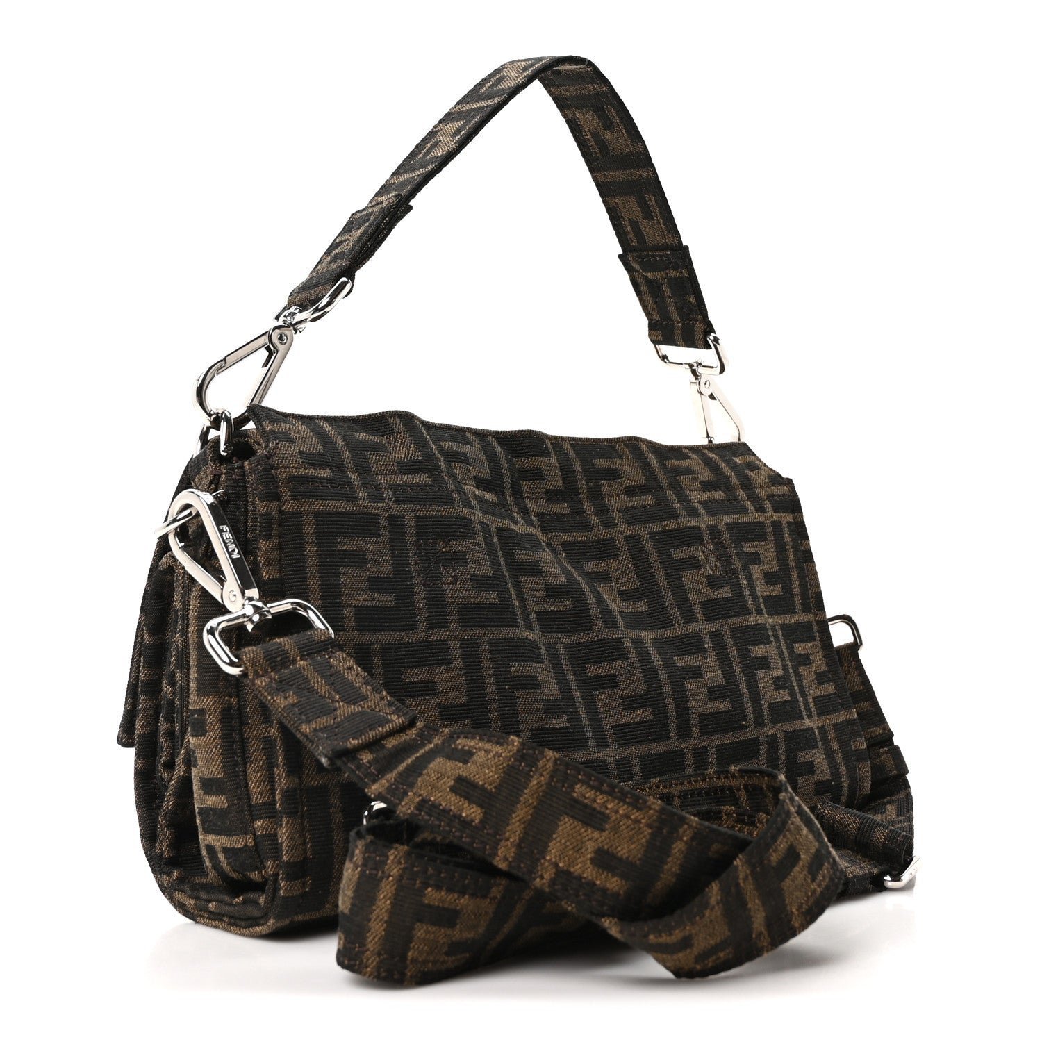 Hardware: Polished silver-finish (Palladium-tone) metalware, including the signature FF magnetic clasp.
