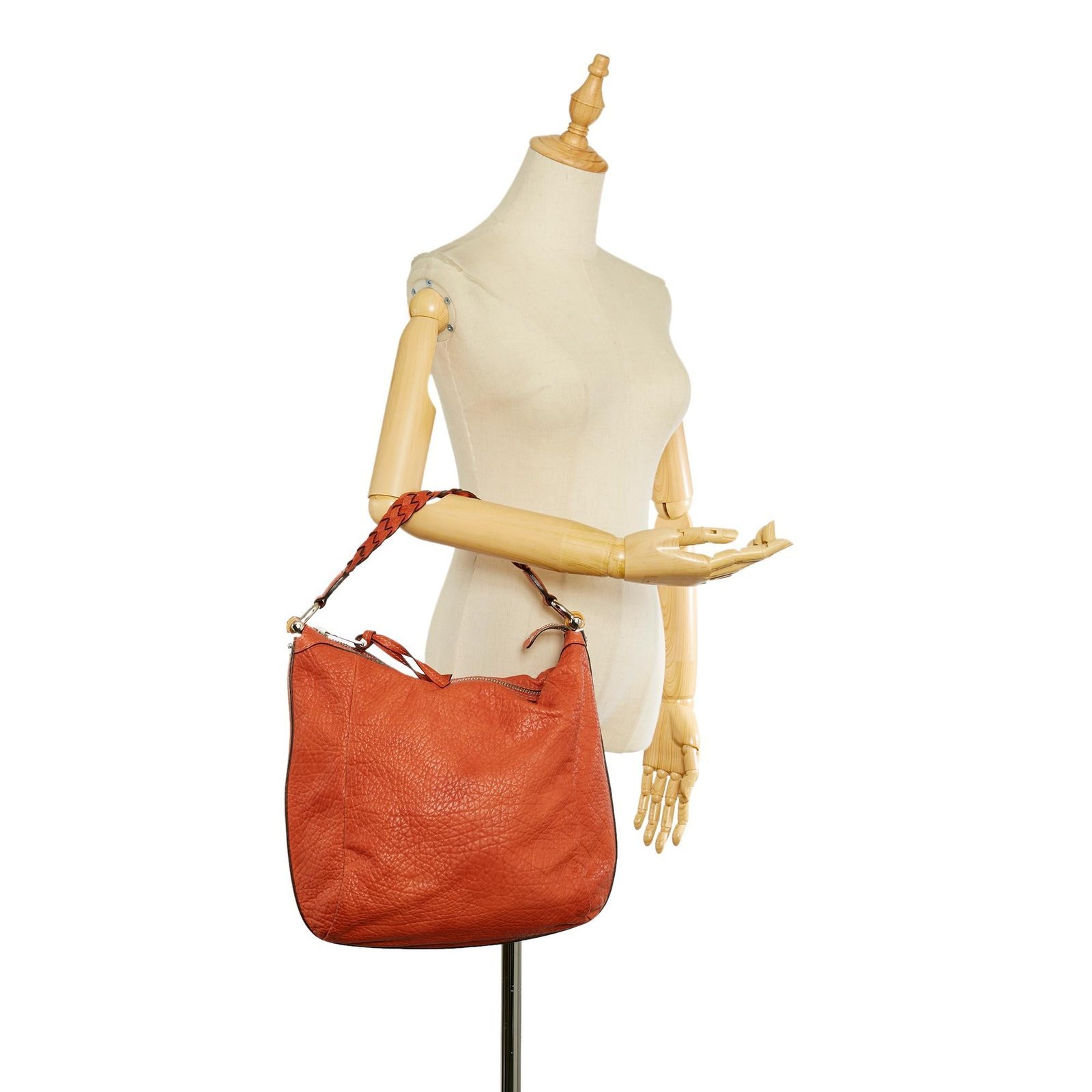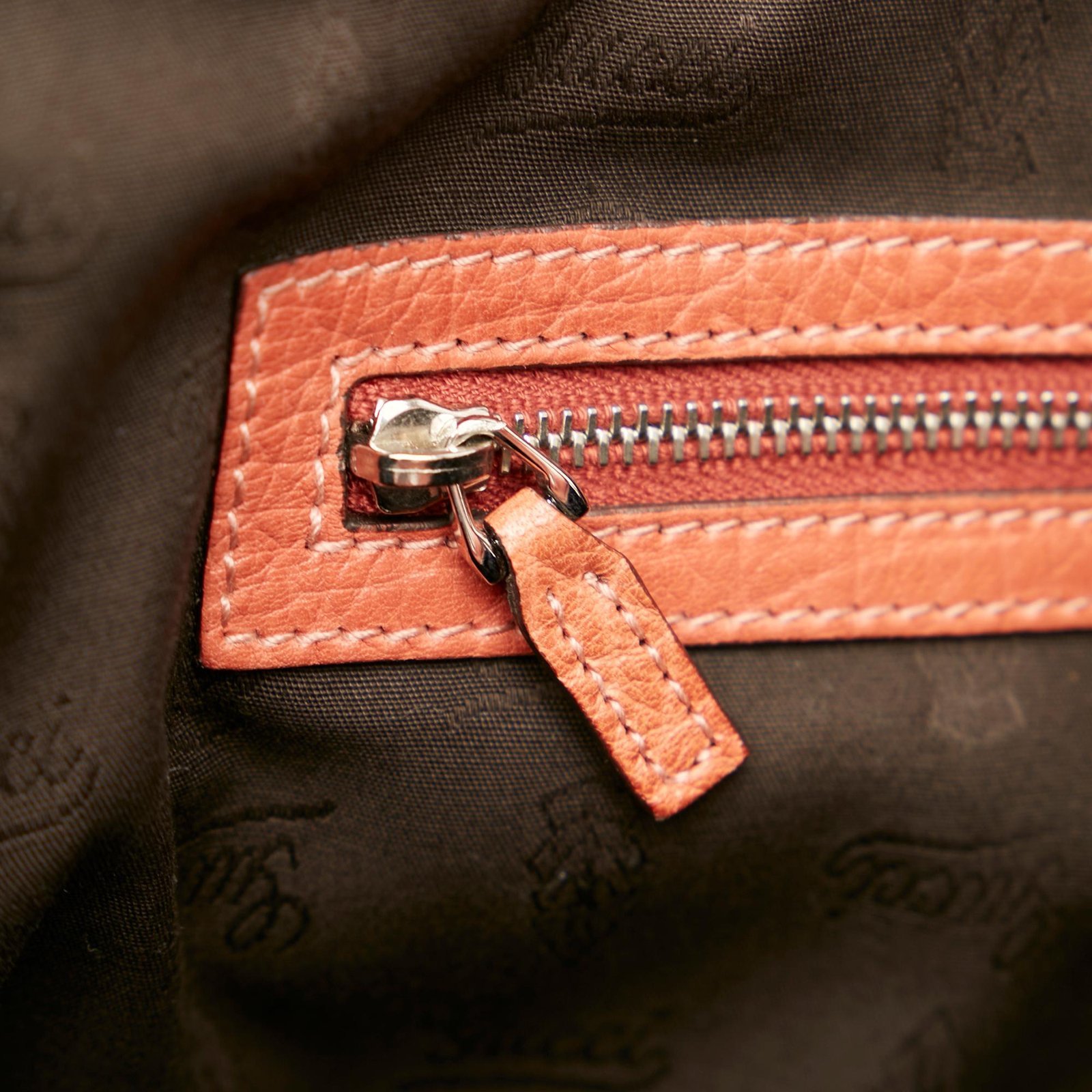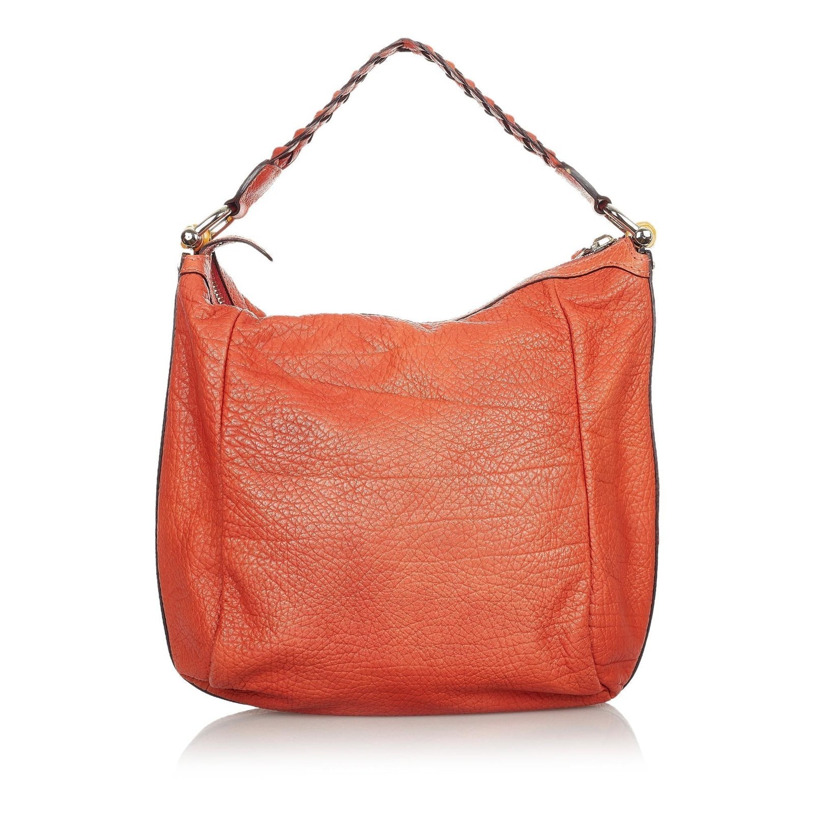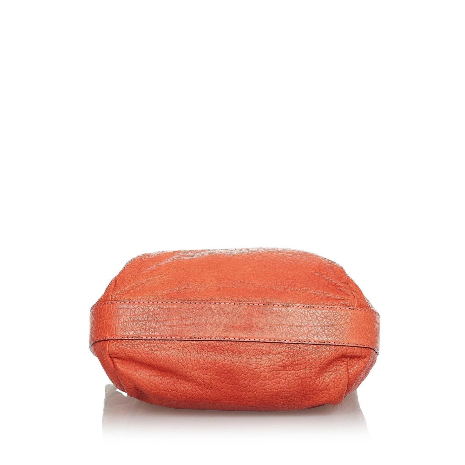 • Orange leather and pony-style calfskin exterior with bamboo bar handle