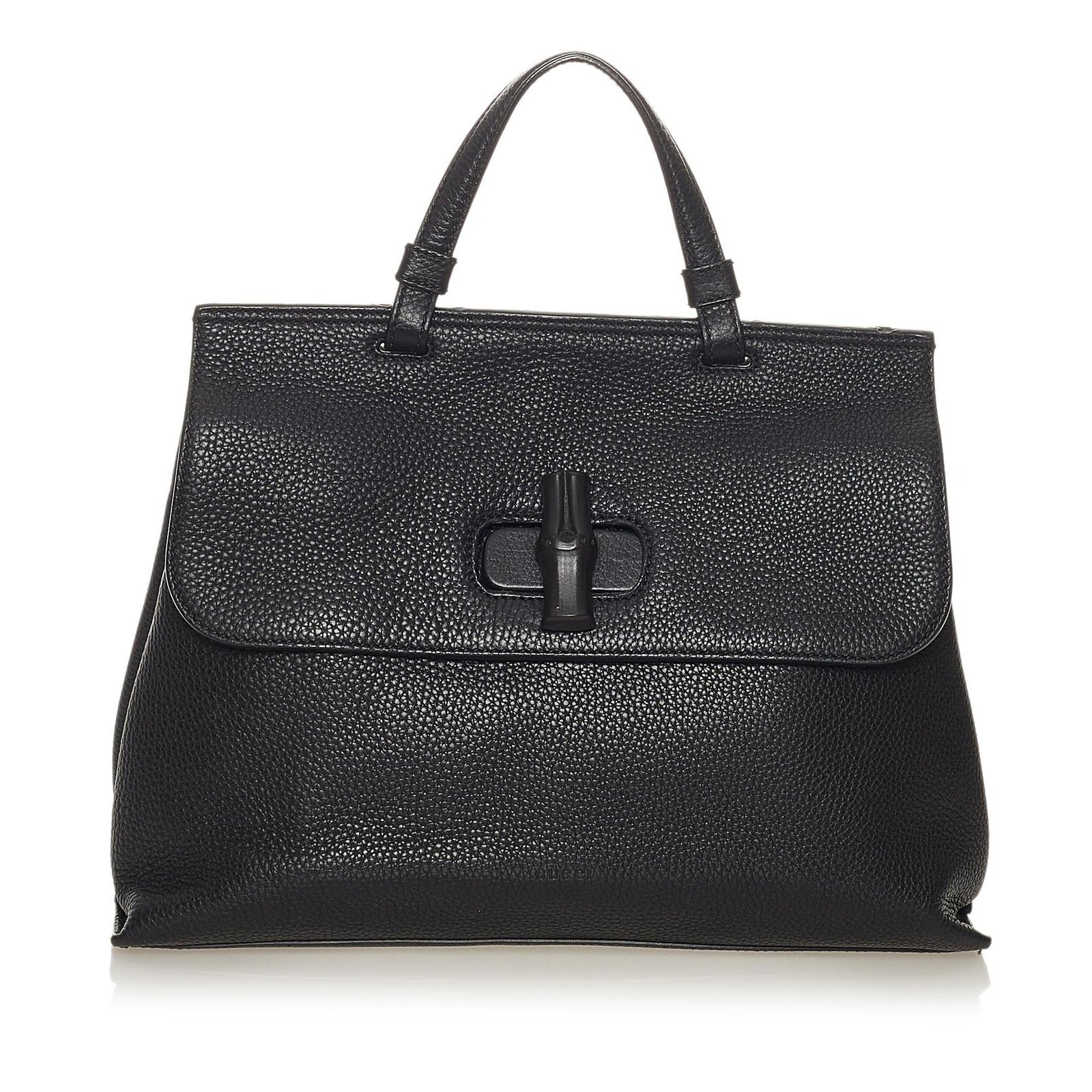 • Black leather exterior with signature bamboo accents