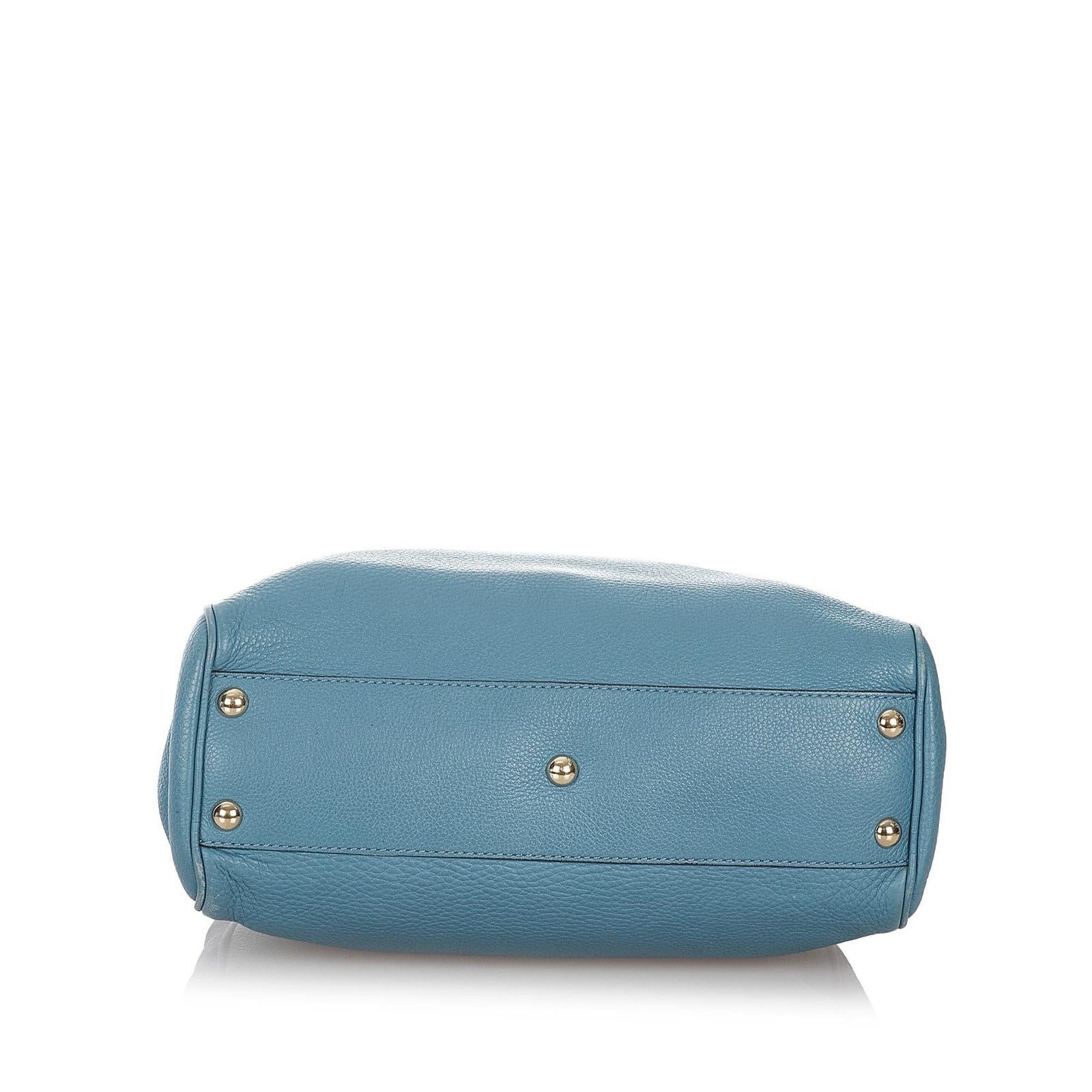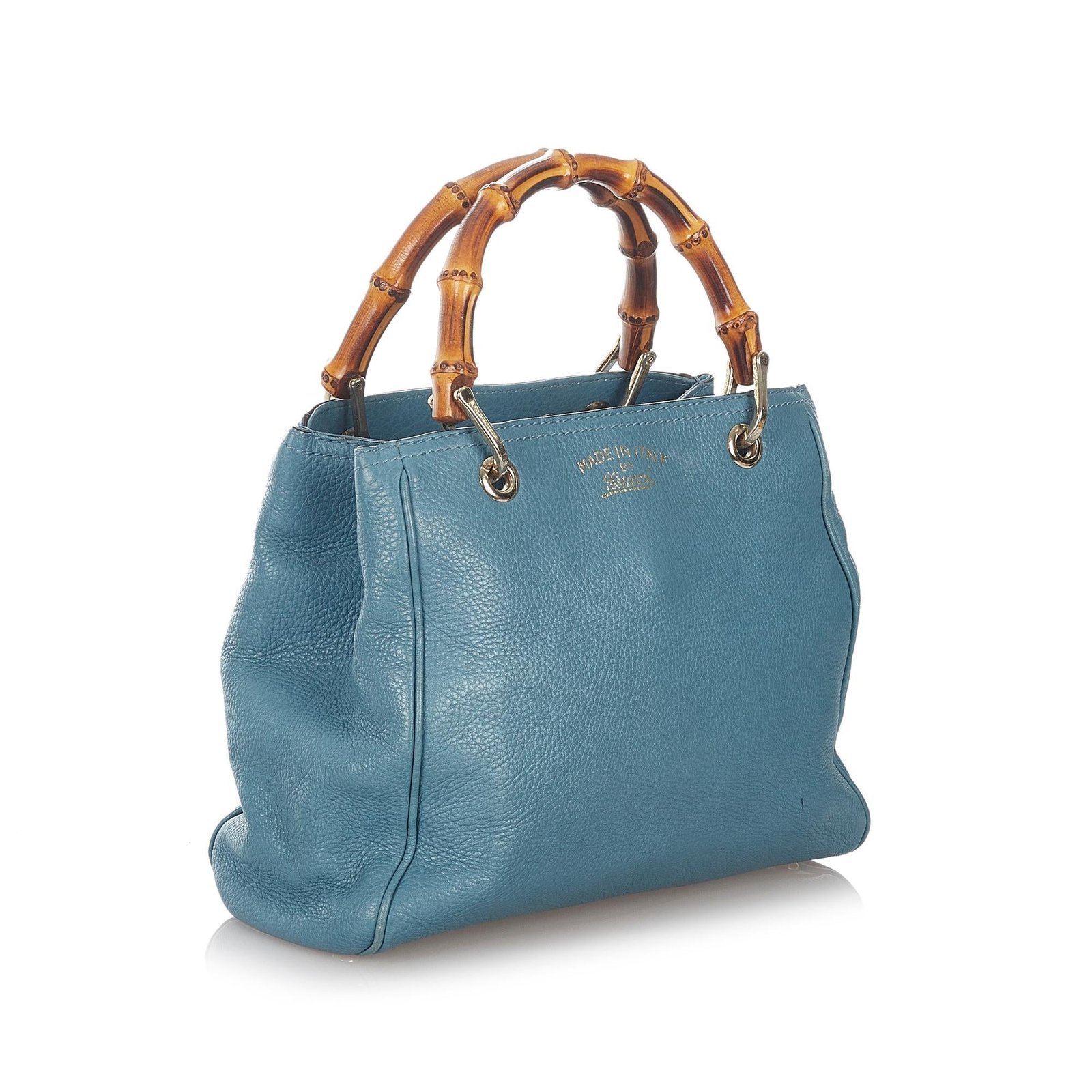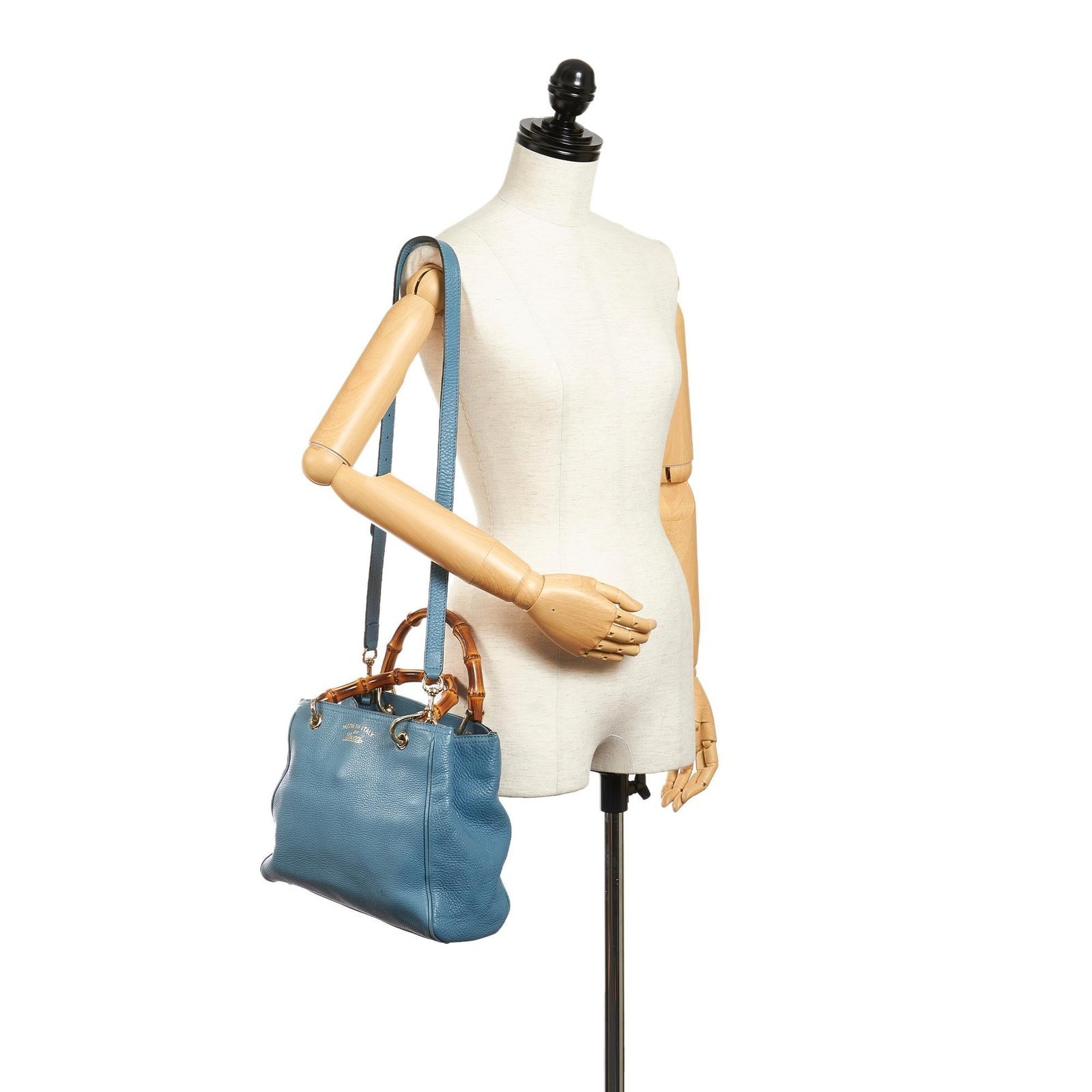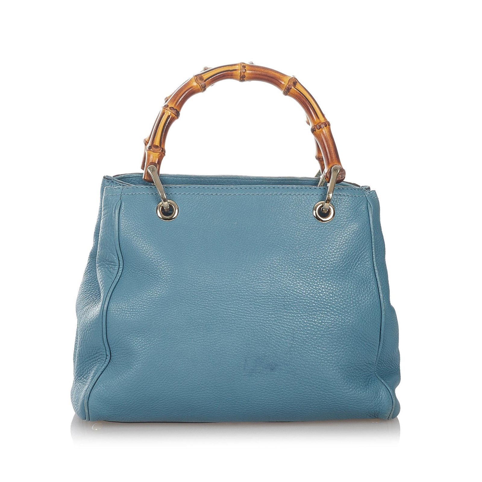 The Gucci Bamboo Shopper Leather Satchel is a chic and versatile accessory that blends classic Gucci craftsmanship with modern practicality. Crafted from a combination of smooth leather and pony-style calfskin, this satchel features the signature bamboo handles and a striking blue color, creating a bold and elegant statement.