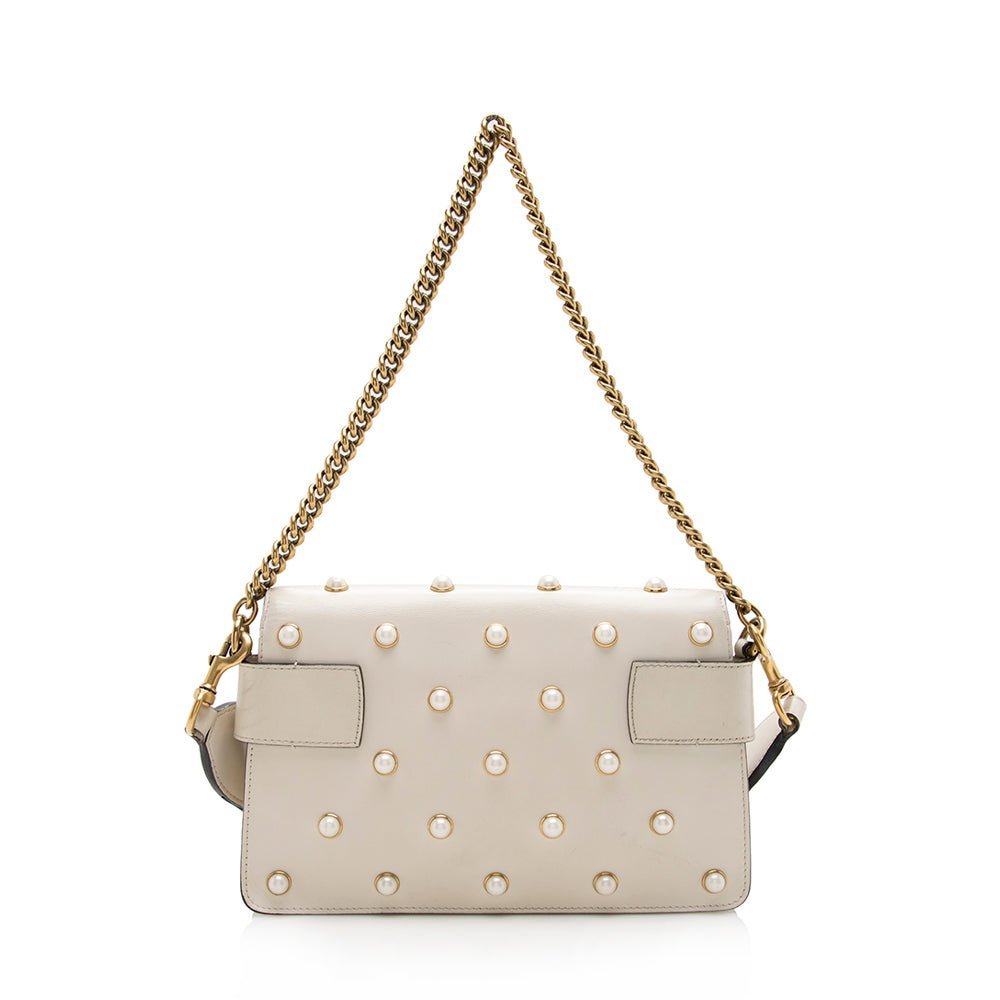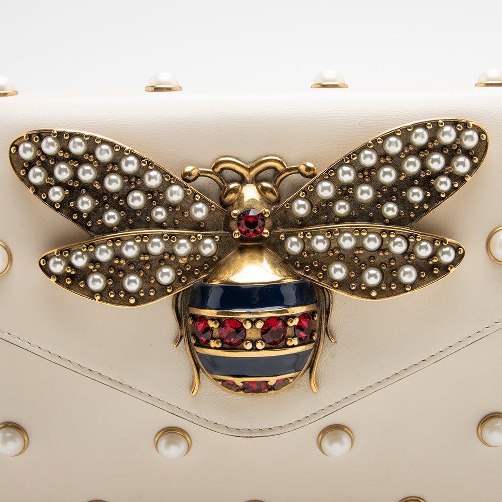 Gucci Calfskin Pearl Bee Broadway Mini Shoulder Bag