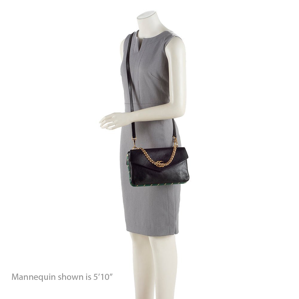 Available in black and green, the Thiara Double Shoulder Bag is a vibrant, luxurious addition to any wardrobe.
