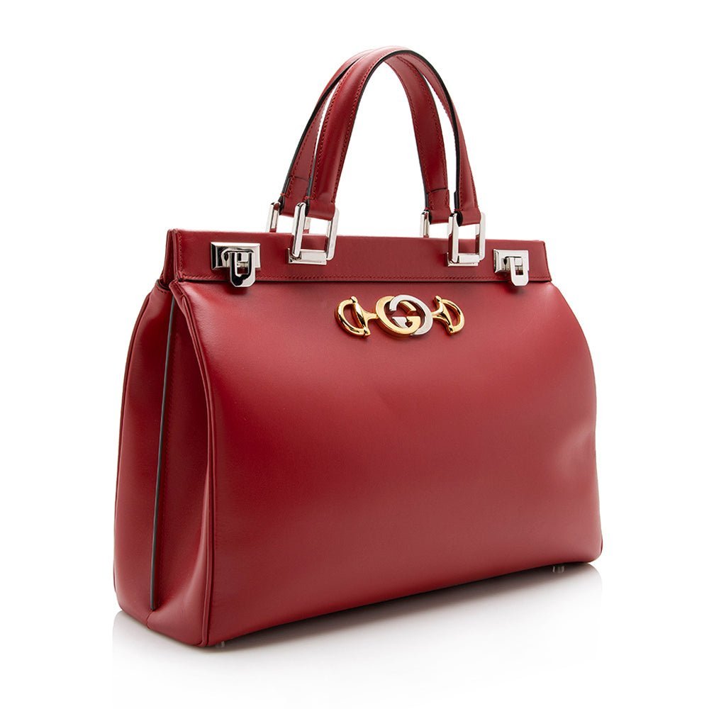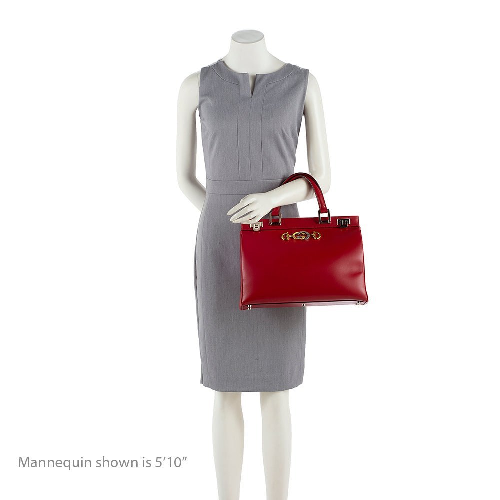 The Gucci Calfskin Zumi Medium Tote is a chic and sophisticated bag that perfectly blends contemporary style with classic elegance. Crafted from smooth red calfskin leather, this tote exudes luxury while remaining versatile enough for everyday use. Its structured silhouette ensures a polished look, while the spacious interior provides ample room for your essentials.
