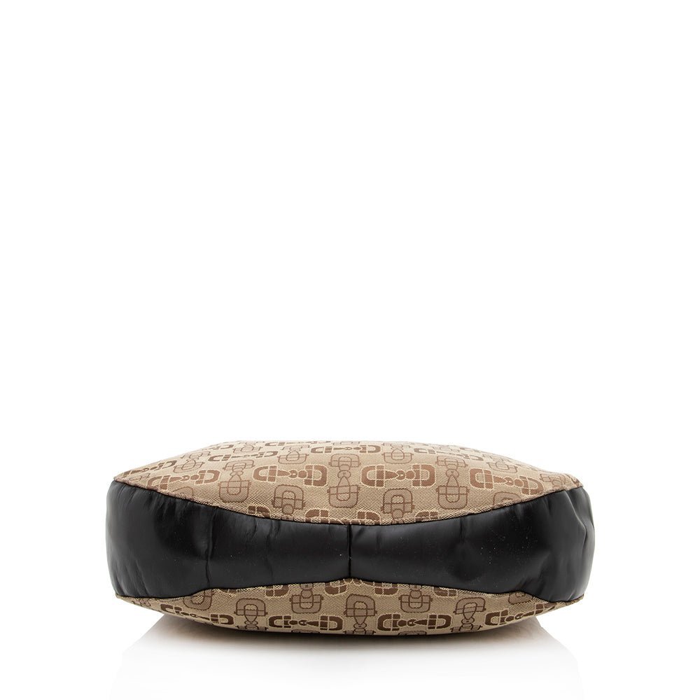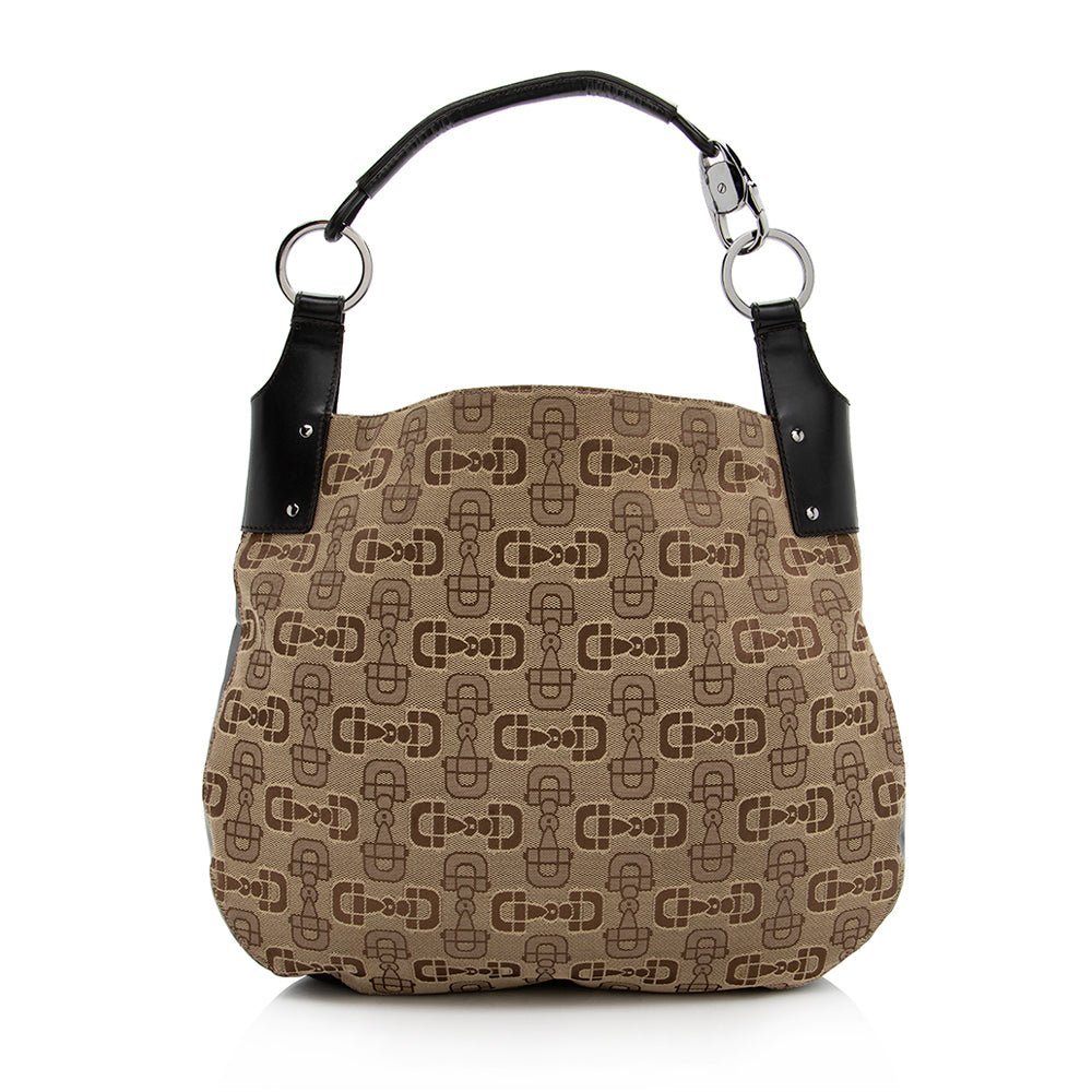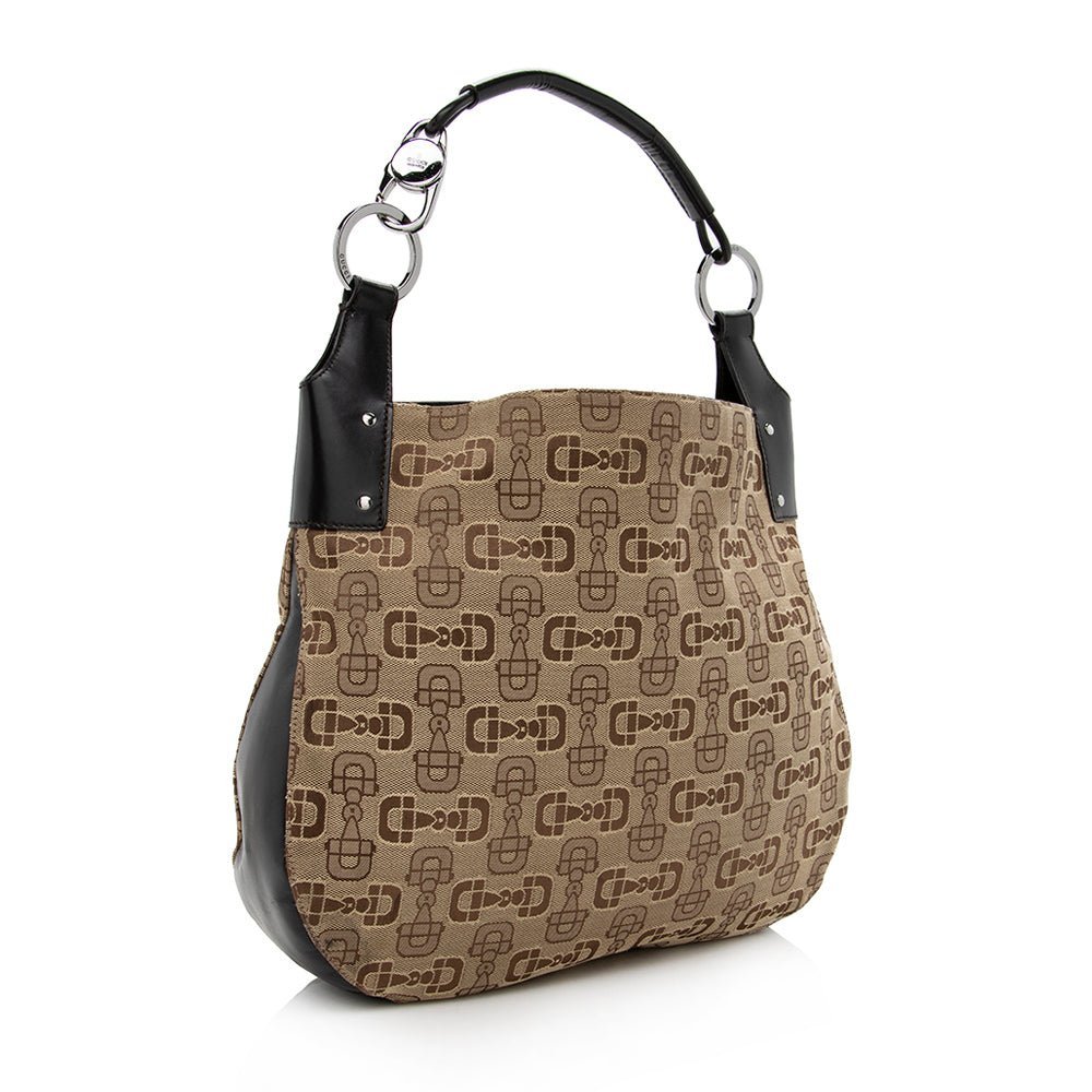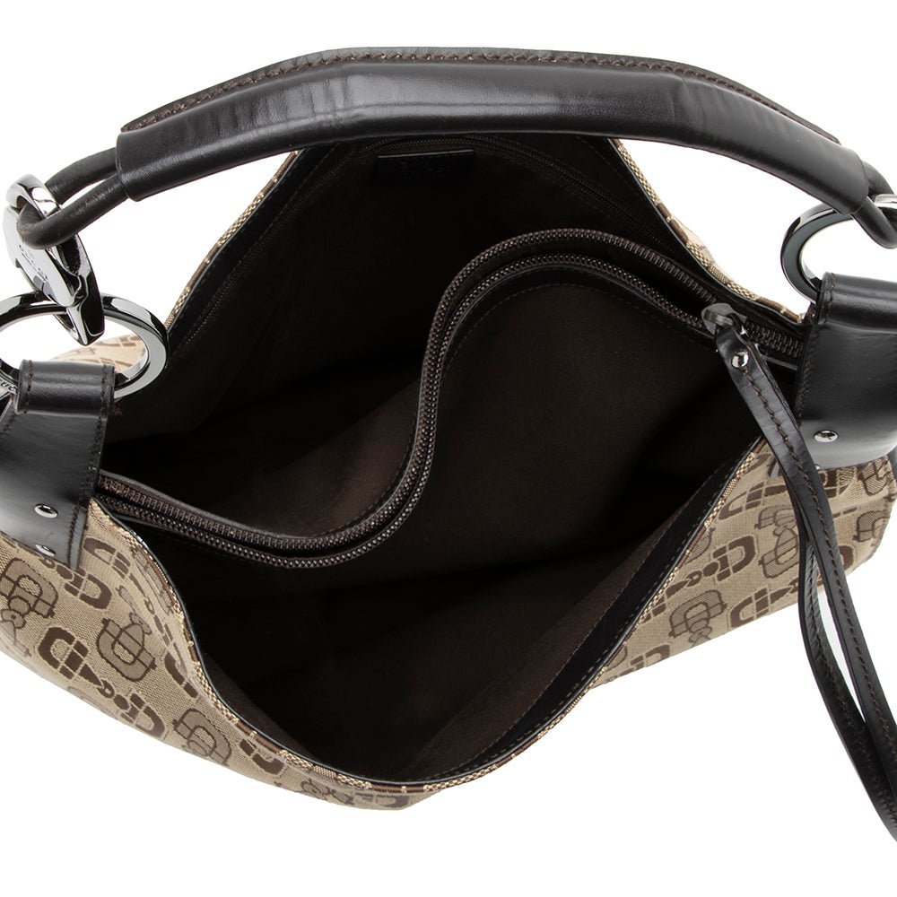The Gucci Horsebit Hobo Bag is a sophisticated and versatile accessory, expertly crafted from beige canvas with rich brown leather trim. Inspired by Gucci’s iconic Horsebit motif, this hobo bag combines timeless elegance with everyday practicality, making it a perfect addition to any wardrobe.