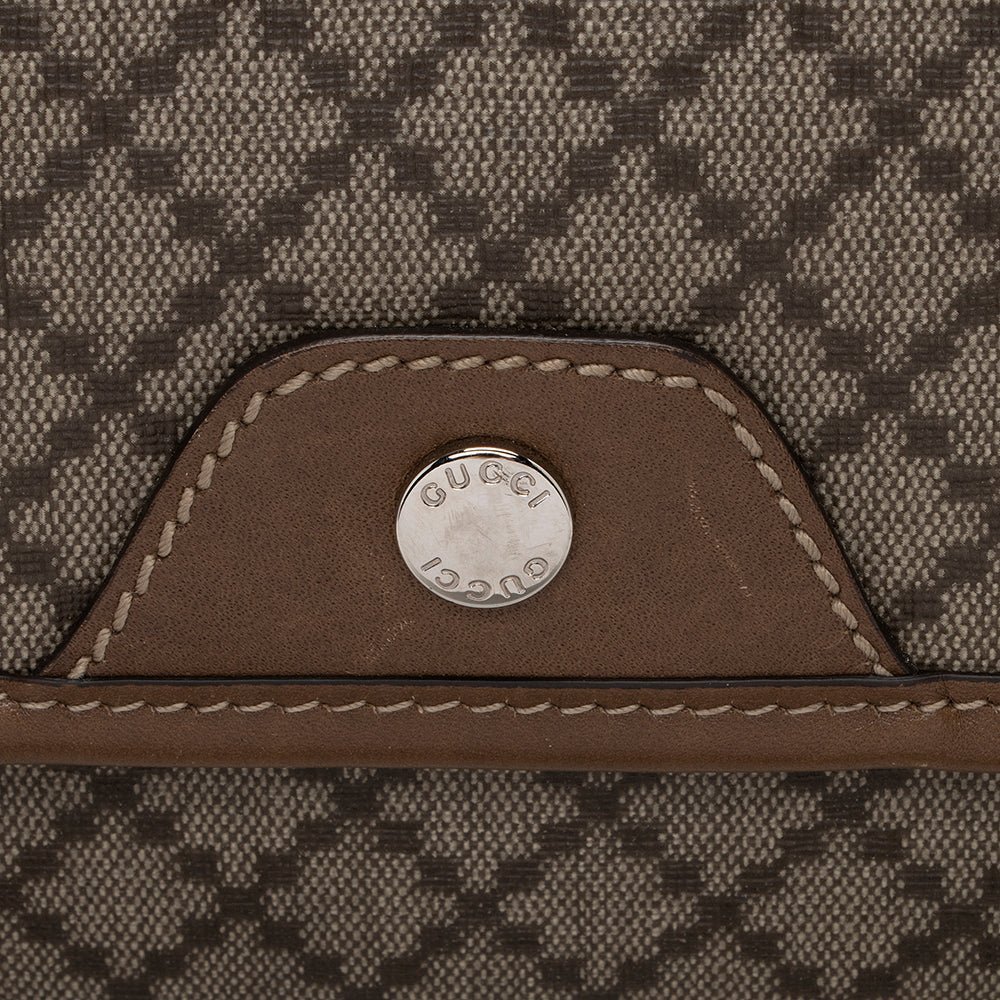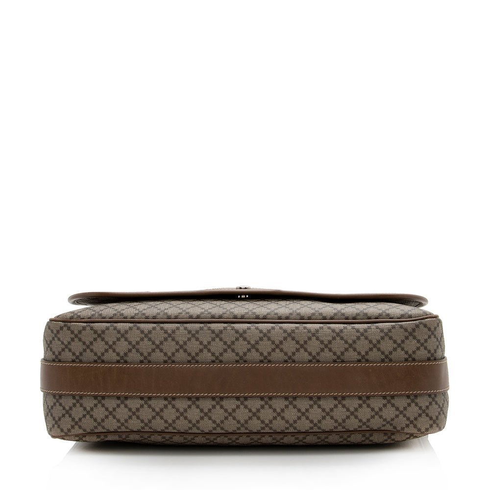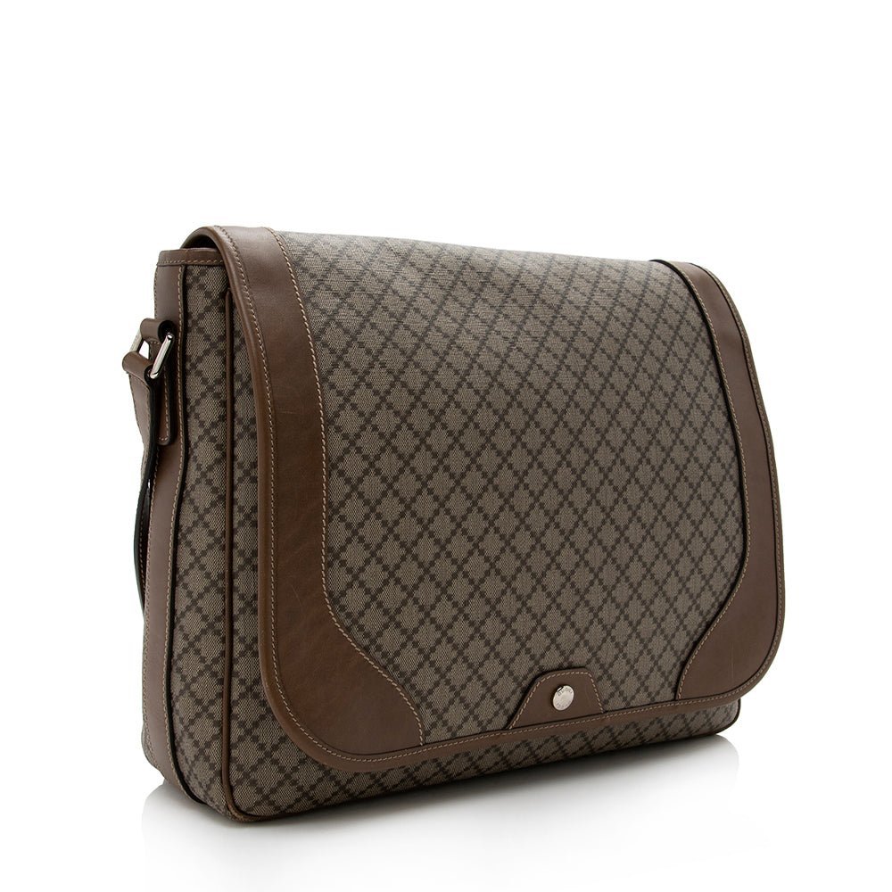 The Gucci Diamante Canvas Large Messenger Bag is a stylish and functional accessory, ideal for carrying work or school essentials in designer style. Crafted from brown Diamante coated canvas, this messenger bag features a structured silhouette with a top flap and adjustable shoulder strap for comfortable crossbody wear. Polished hardware completes the luxurious look.