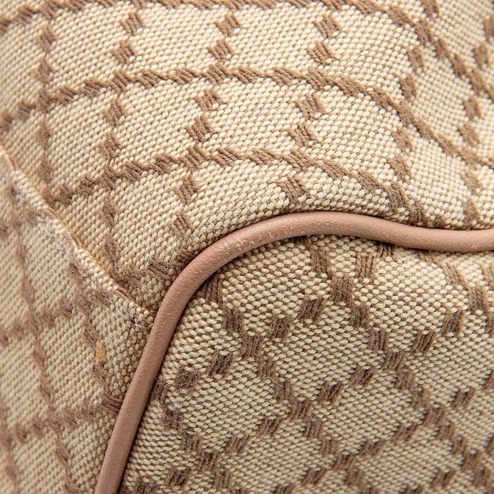 - Beige GG printed canvas exterior with metallic leather trim