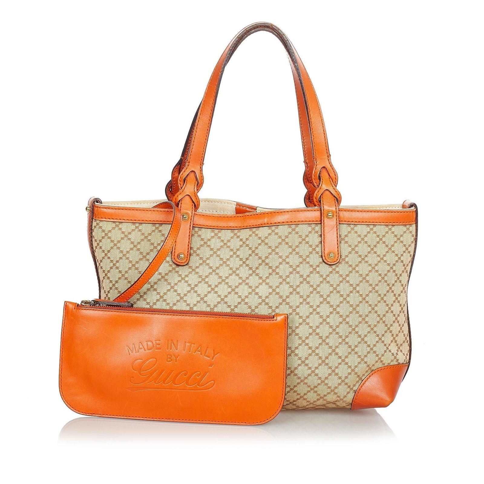 The interior is lined with canvas and includes zip and slip pockets for organized storage. Ideal for casual outings, work, or daily use, the Diamante Craft Canvas Tote Bag combines timeless Gucci elegance with everyday practicality.