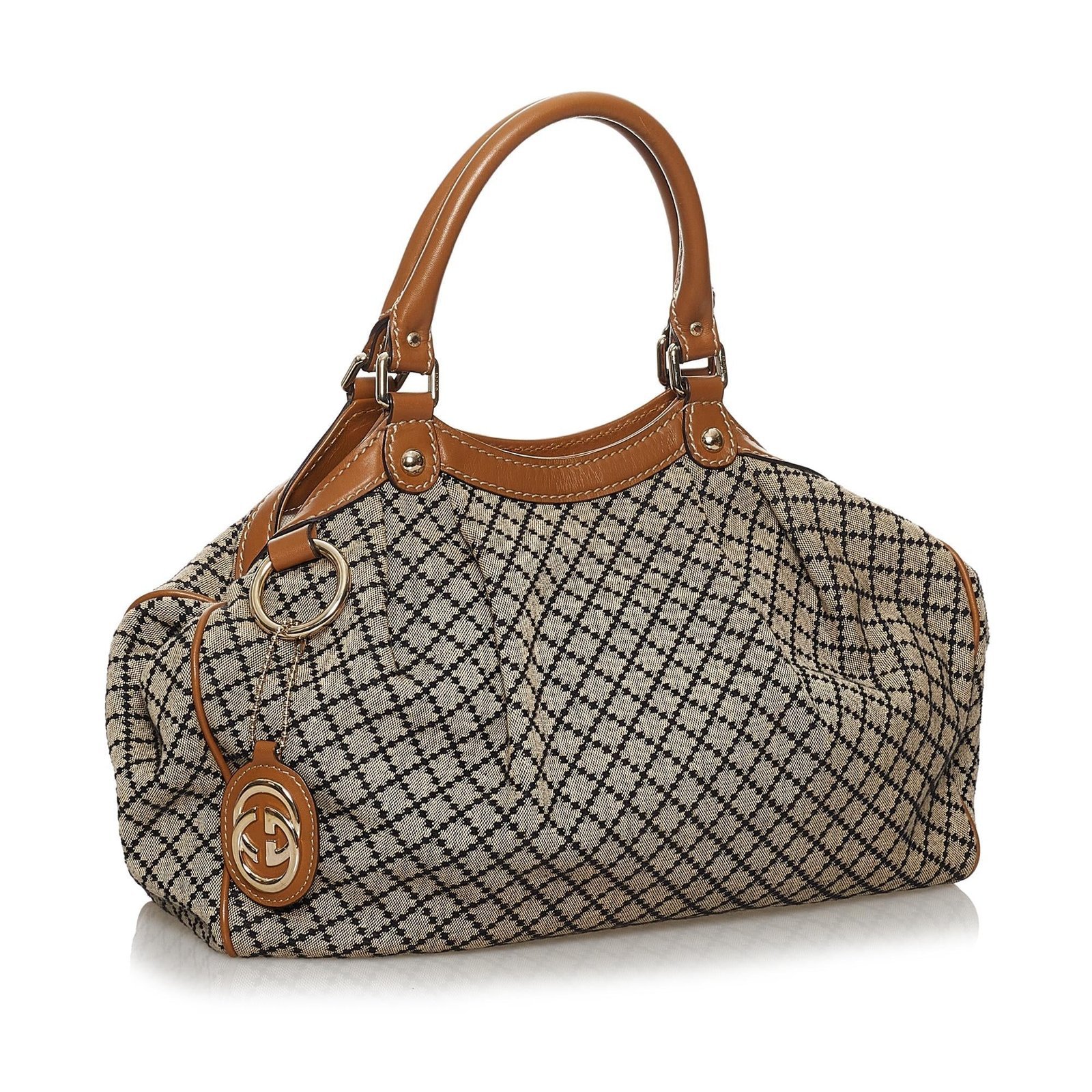 The Gucci Diamante Sukey tote bag reflects the House’s signature aesthetic through its iconic GG Diamante canvas and refined craftsmanship. The exterior is detailed with smooth leather trim that enhances the structured silhouette while maintaining an elegant and versatile profile. Designed to balance sophistication with functionality, the tote features a generously sized interior that allows for effortless organization of daily essentials.