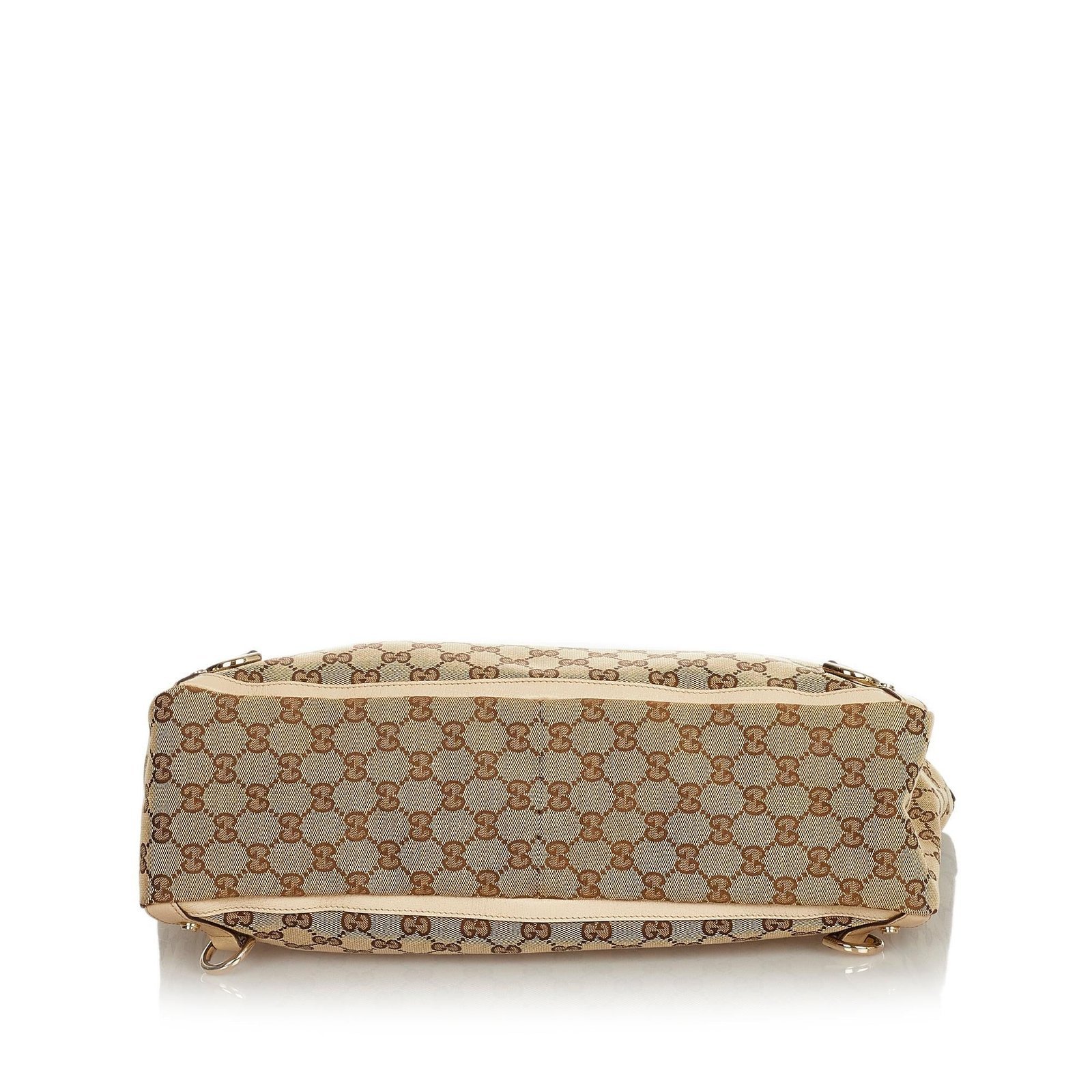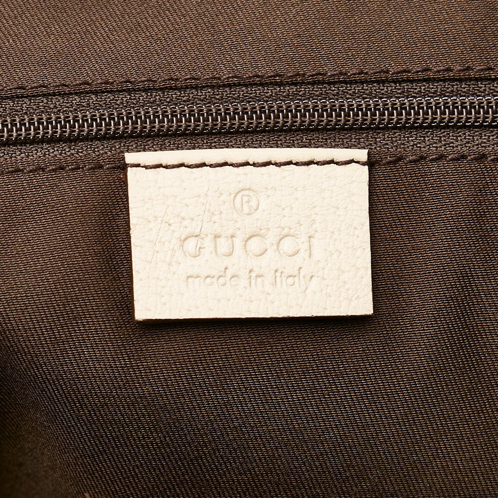• Brown GG Canvas exterior with white stripe accents and leather trim
