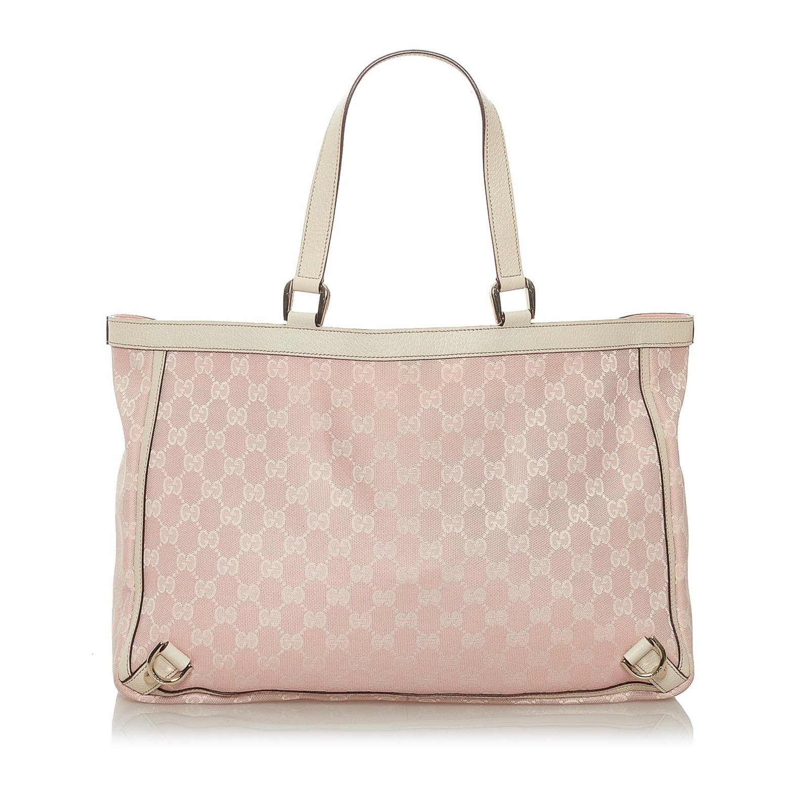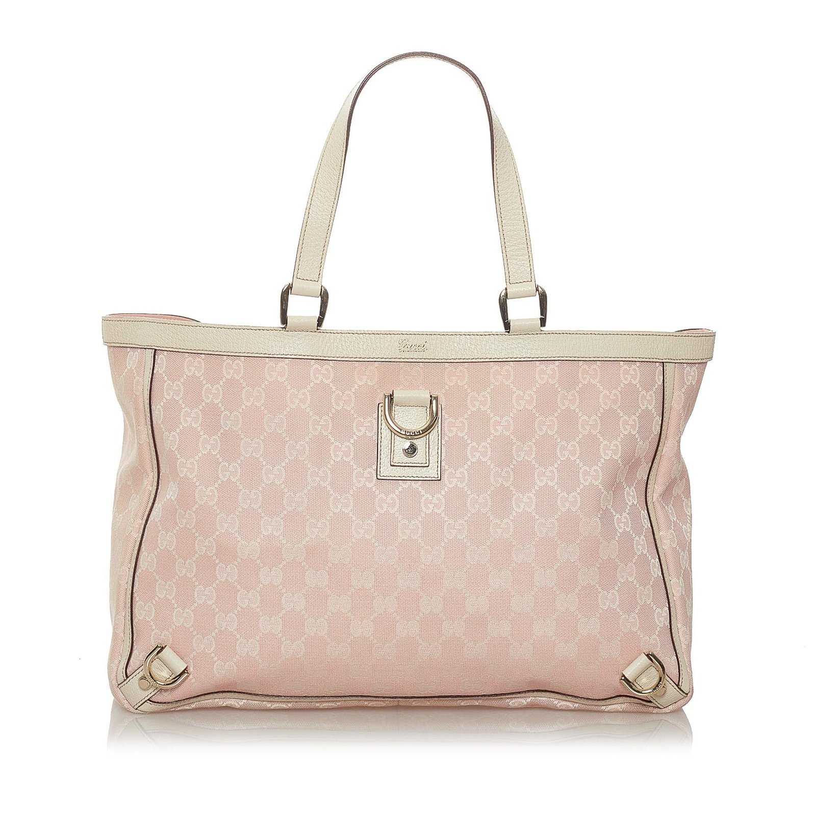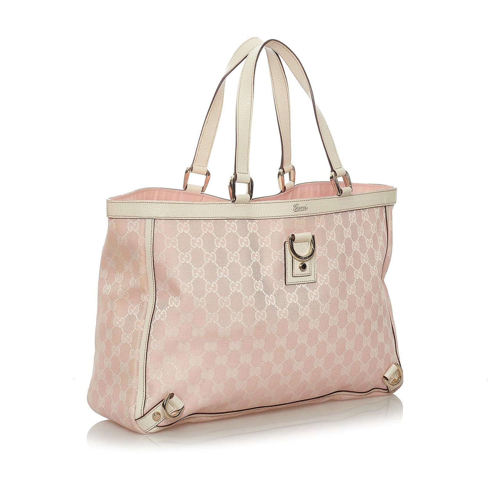 The Gucci GG Canvas Abbey D-Ring Tote Bag in pink GG canvas is a chic and spacious accessory that combines the House’s iconic canvas with refined leather trim and champagne-tone hardware. Featuring a structured silhouette, this tote offers a polished look while providing practical storage for daily essentials. The top magnetic closure ensures secure access, and the comfortable shoulder straps allow effortless carry.