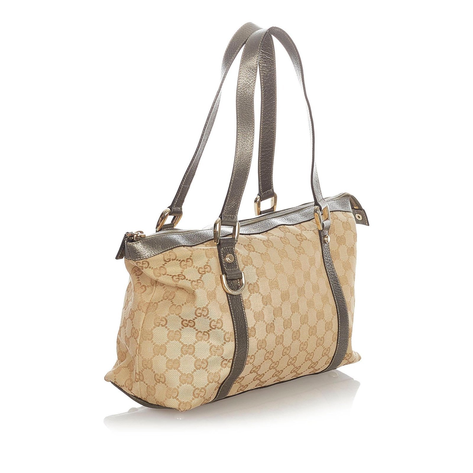 Presented in a classic palette of brown, beige, and dark brown, the Abbey Tote embodies Gucci’s heritage aesthetic with understated luxury. Its spacious interior allows for effortless organization of daily essentials, while the sturdy handles ensure comfortable carry. Finished with refined hardware details, this tote bag showcases Gucci’s commitment to quality, functionality, and enduring style.