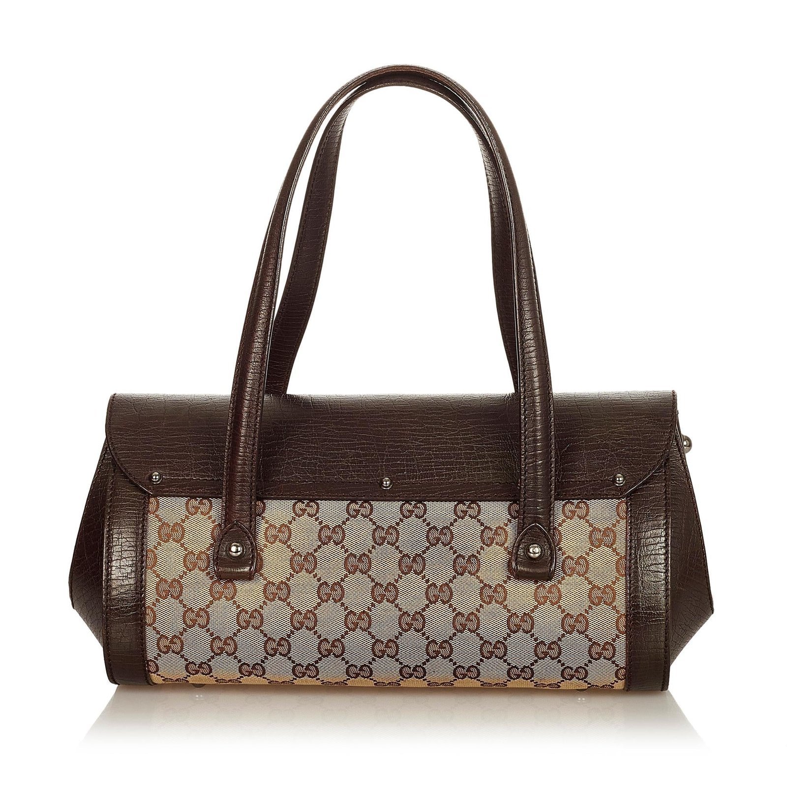 The Gucci GG Canvas Bamboo Bullet Shoulder Bag is a versatile accessory that perfectly balances timeless design with everyday functionality. Crafted from GG canvas with leather and natural bamboo accents, this bag features a compact silhouette with a structured handle, ideal for both casual and refined looks.
