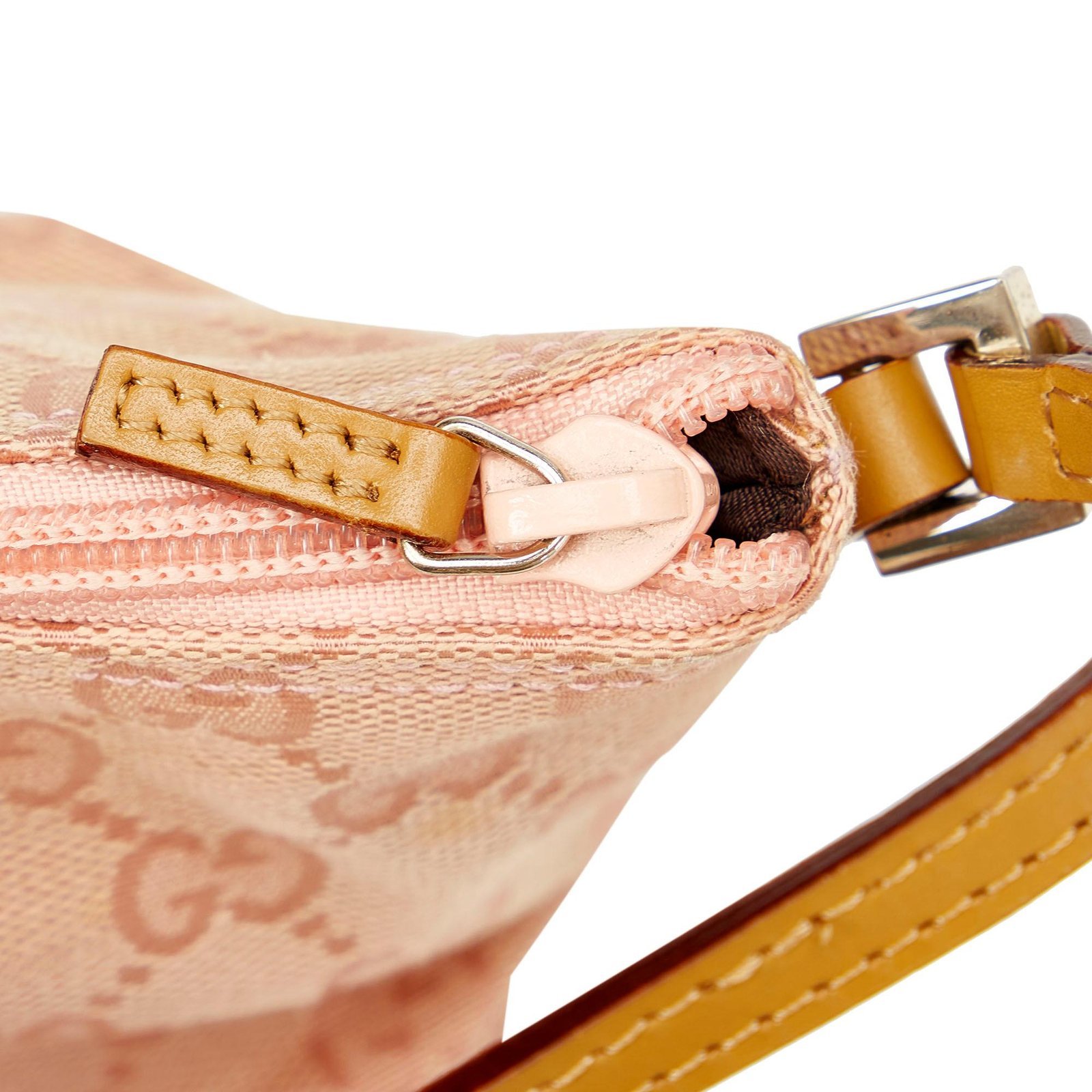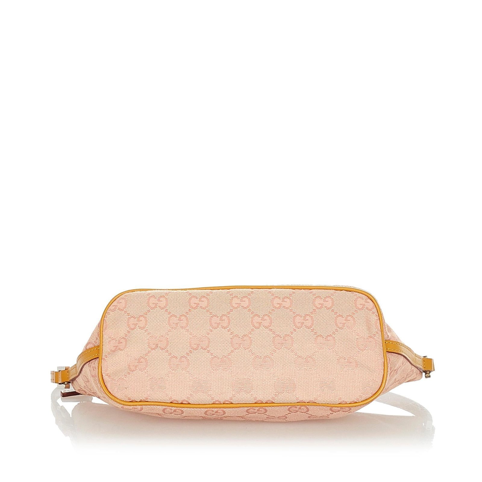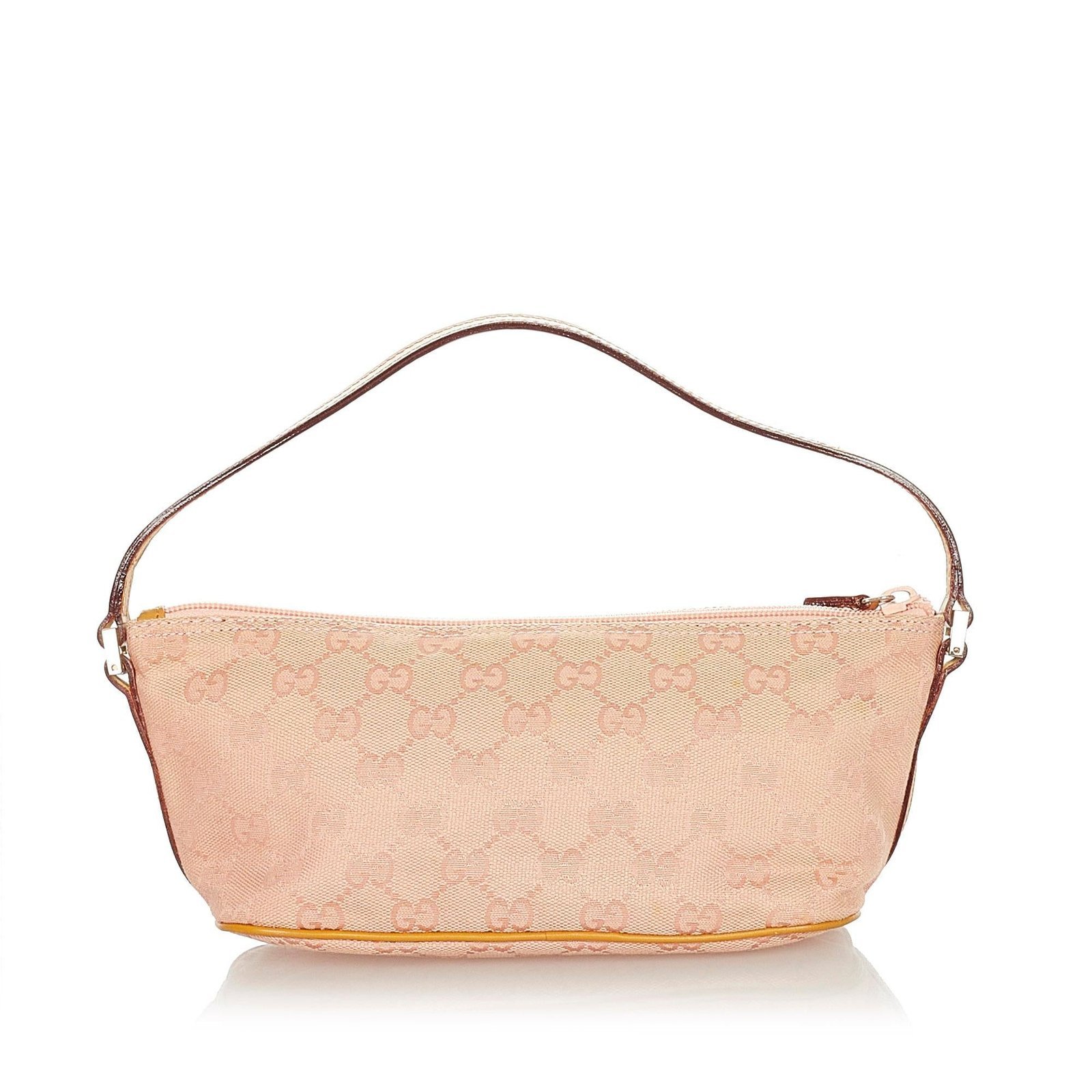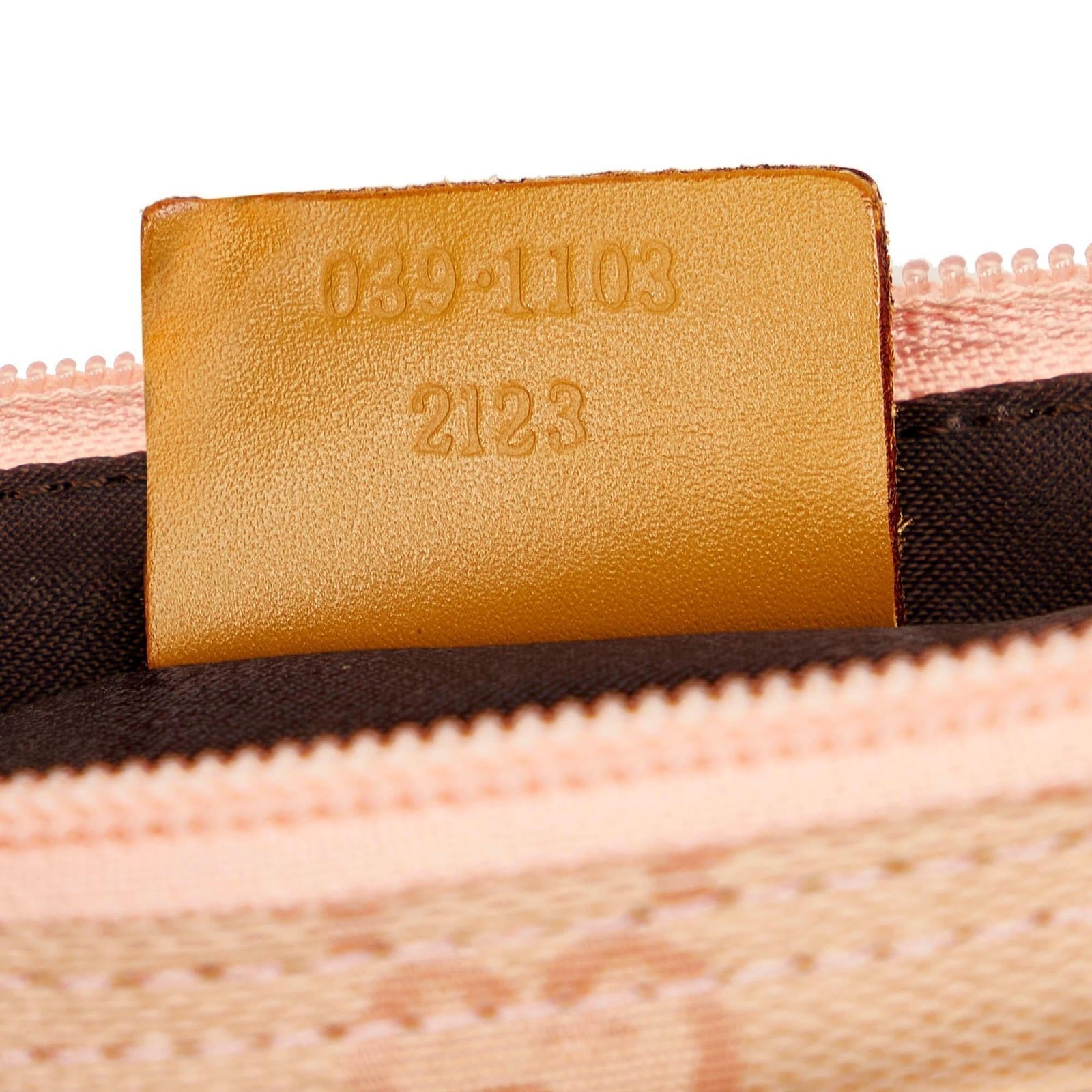 The Gucci GG Canvas Boat is a refined and versatile bag, crafted from GG canvas and smooth leather in a soft pink hue. Its compact yet structured silhouette exudes understated elegance, making it a perfect accessory for both casual outings and sophisticated occasions. The top handle allows for comfortable hand-carry, while the interior is thoughtfully lined to keep your essentials organized and easily accessible.