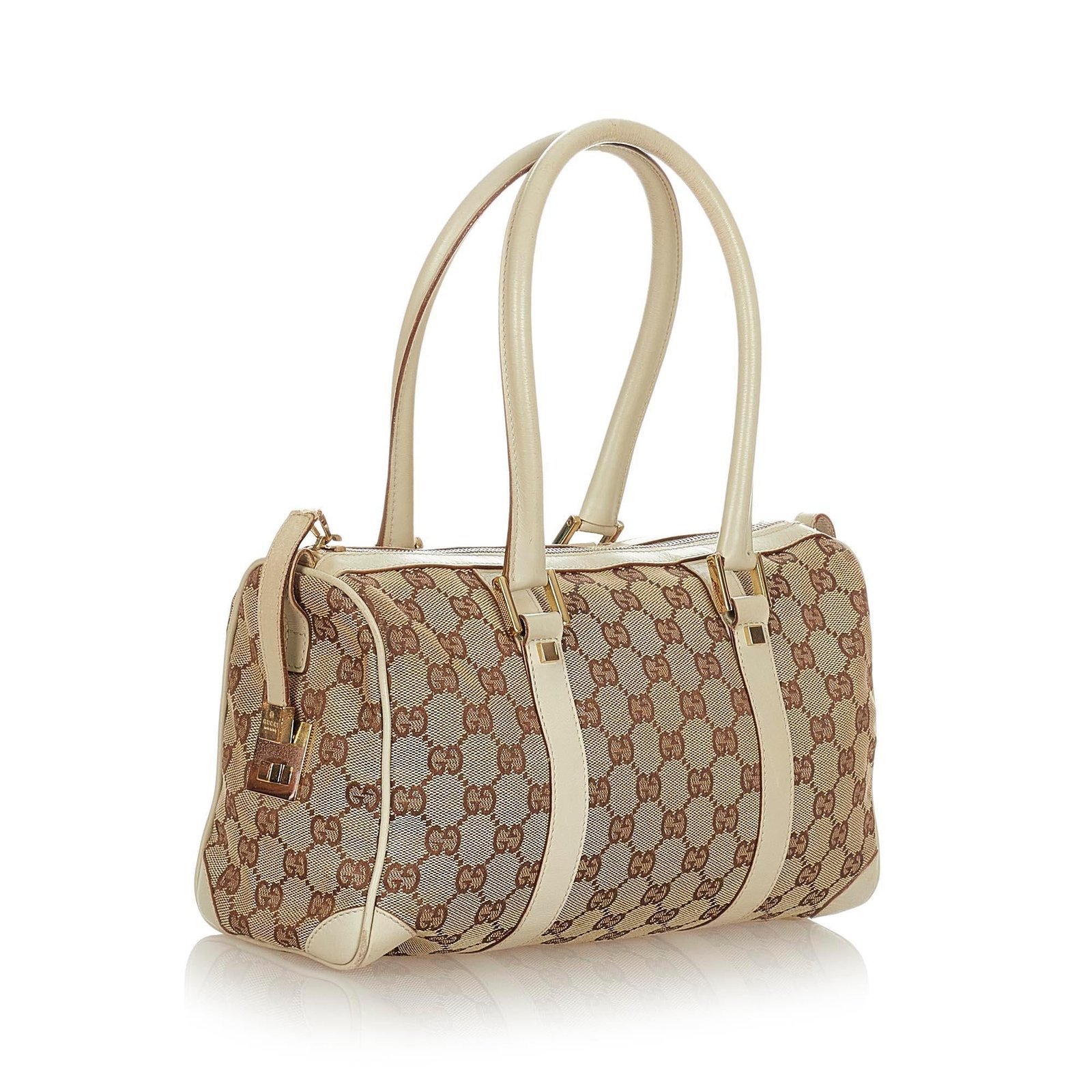 The Gucci GG Canvas Boston Bag is a timeless and sophisticated accessory, crafted from GG canvas, smooth leather, and pony-style calfskin in a harmonious brown, beige, and white palette. Its structured silhouette exudes elegance while providing practical functionality for everyday use. The top handles ensure comfortable hand-carry, and the interior is thoughtfully lined to keep your essentials organized and easily accessible.