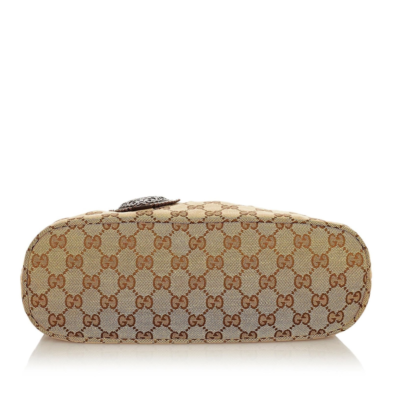 The Gucci GG Canvas Crest Handbag is a sophisticated and versatile accessory, crafted from GG canvas, leather, and calfskin in a refined brown, beige, and black palette. Its structured silhouette exudes timeless elegance while offering practical functionality for everyday use. The top handle allows comfortable hand-carry, and the interior is thoughtfully lined to keep essentials organized. Subtle gold-tone hardware accents complete the classic design.