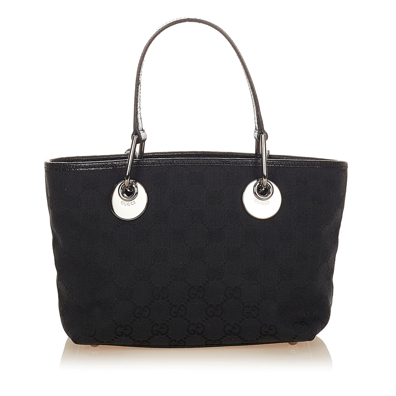 The Gucci GG Canvas Eclipse Shoulder Bag is a sleek and versatile accessory, crafted from GG canvas and premium fabric in a classic black hue. Its structured silhouette combines elegance with practical functionality, featuring flat leather handles for comfortable hand or crook-of-arm carry. The interior is thoughtfully lined with zip and slip pockets for organized storage, while an open-top design allows easy access to essentials. Subtle gold-tone hardware accents complete the refined look.