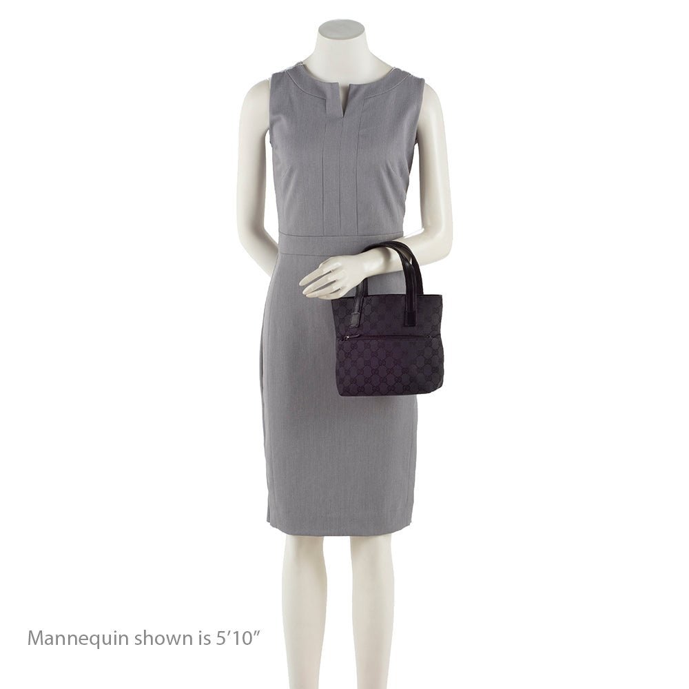 The Gucci GG Canvas Front Pocket Mini Tote is a chic and compact accessory, crafted from GG canvas in a sleek black hue with subtle silver-tone accents. Its structured mini tote silhouette features a front pocket for added practicality, while the top handle allows comfortable hand or crook-of-arm carry. The interior is thoughtfully lined to keep essentials organized, making it perfect for carrying daily necessities in style. Refined metal hardware adds a polished finishing touch.