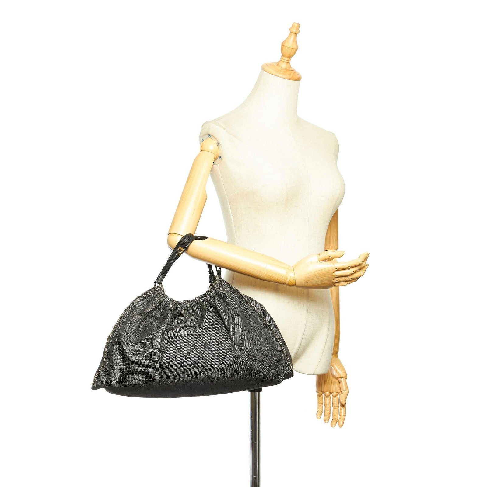The Gucci GG Canvas Handbag is a sophisticated and versatile hobo, crafted from durable black denim and leather with dark ruthenium hardware accents. Its structured yet relaxed silhouette combines style with practicality, featuring a top opening for easy access to essentials. The interior is lined with nylon, offering organized storage for daily necessities. Perfect for everyday use, this designer hobo effortlessly transitions from work to casual outings while showcasing classic Gucci craftsmanship.