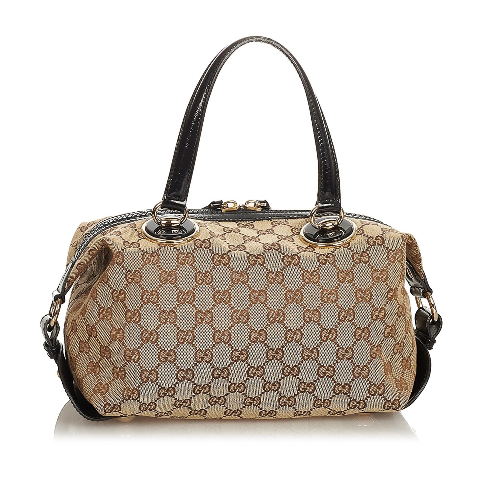 - GG canvas and patent leather construction with signature Gucci craftsmanship